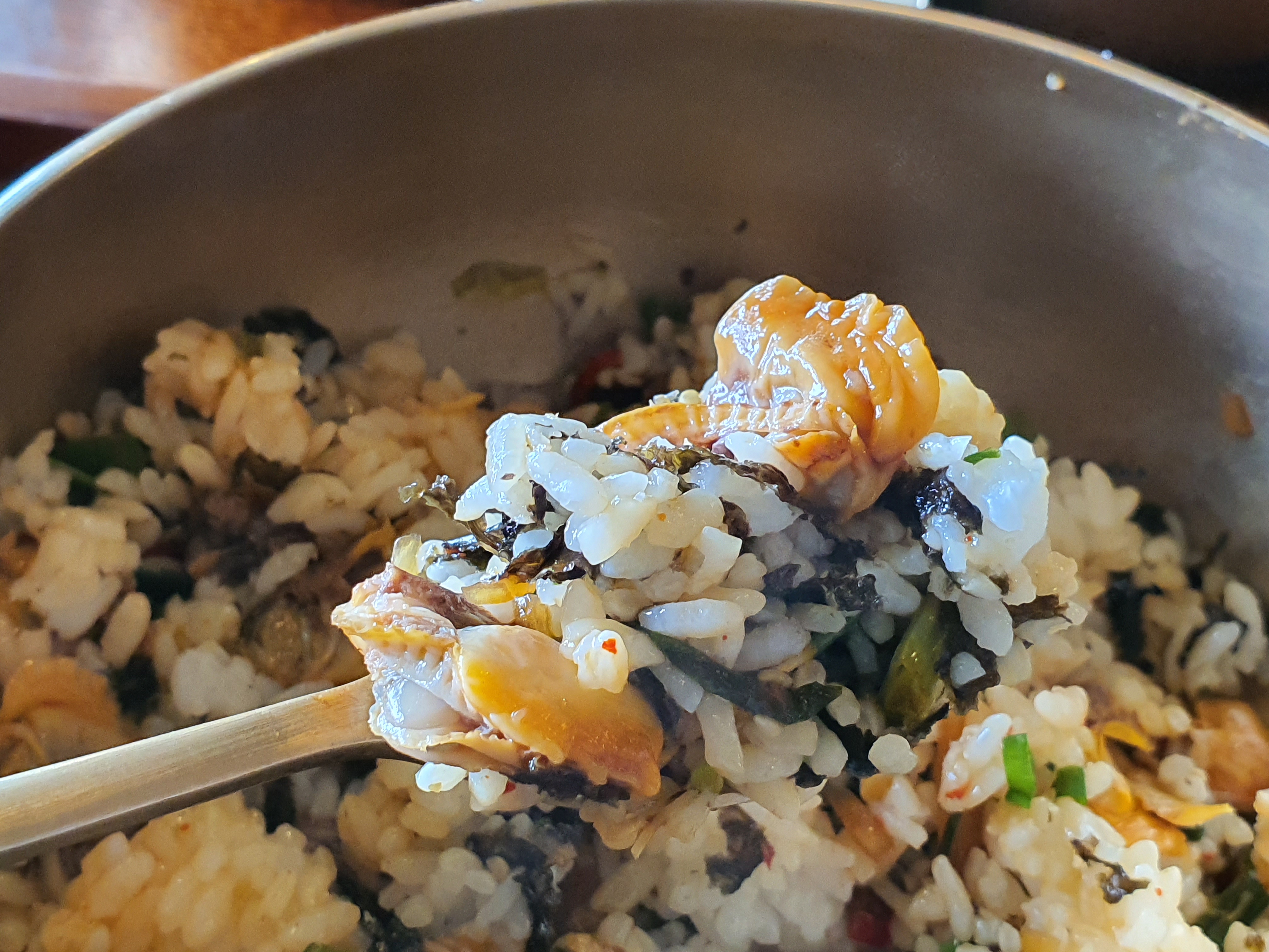 친구는 전복게우밥을 주문하였는데, 전복이