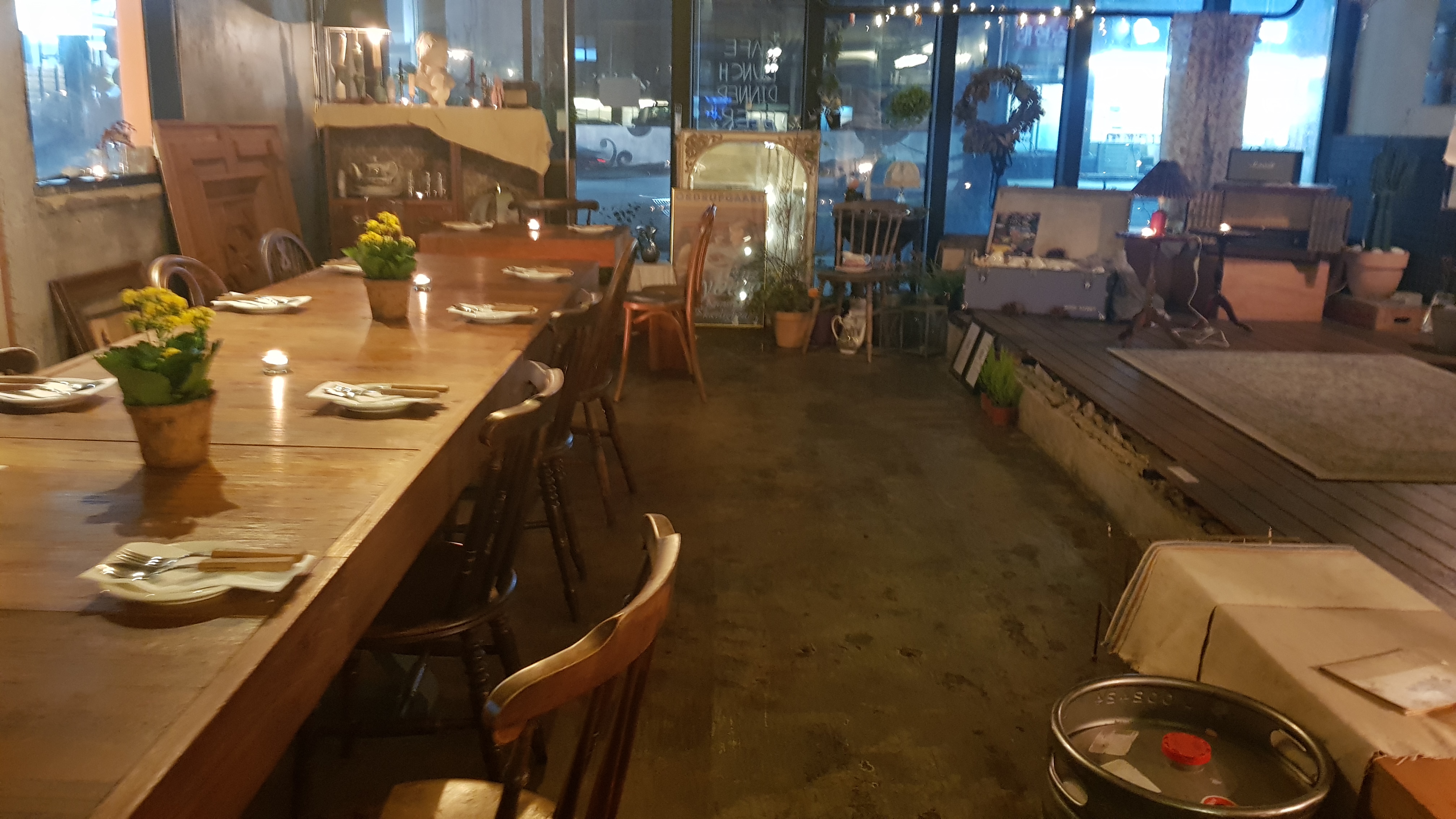 큰 테이블이 있고 작은 테이블 3개정도 있는게 전부이다.