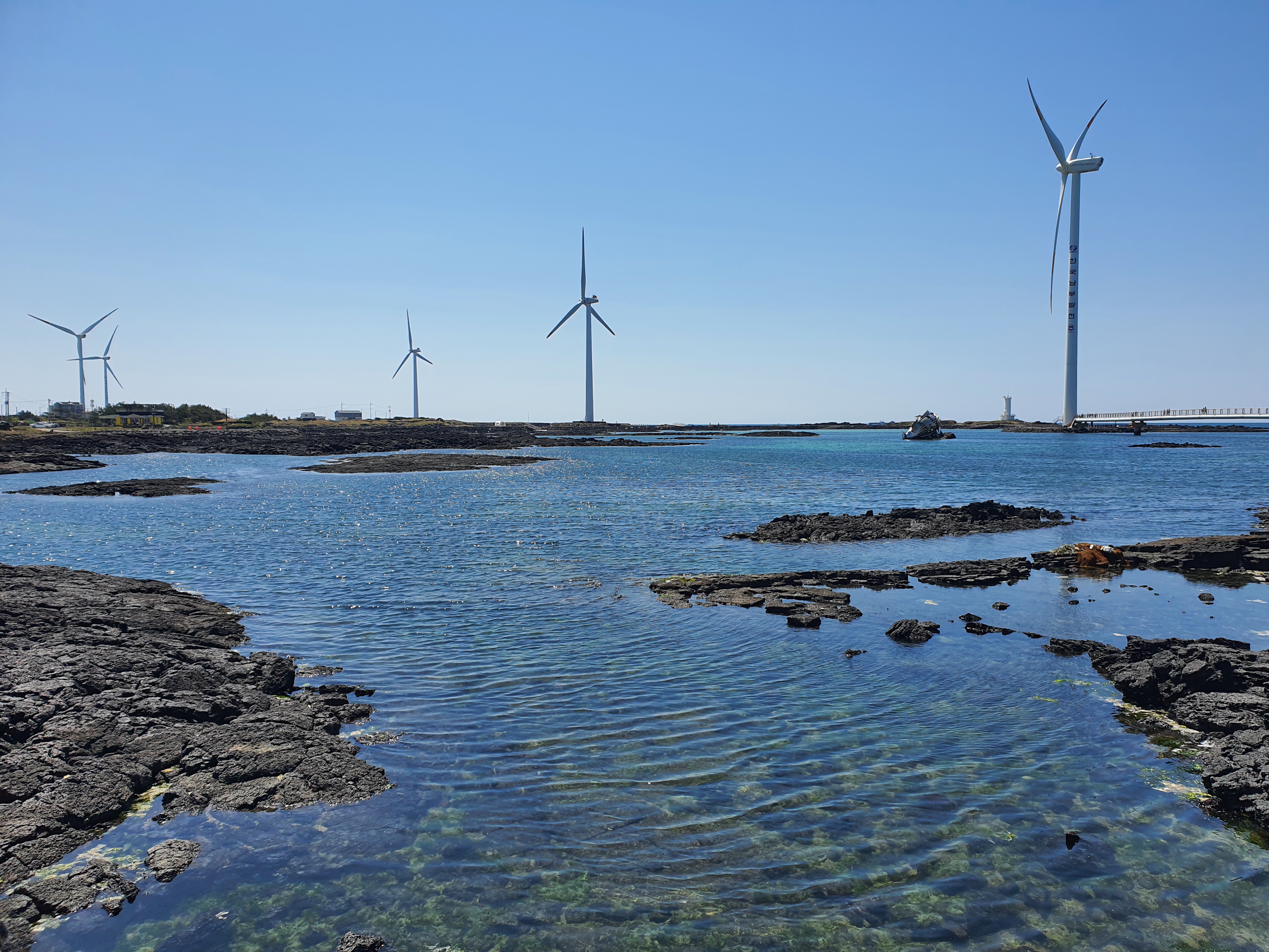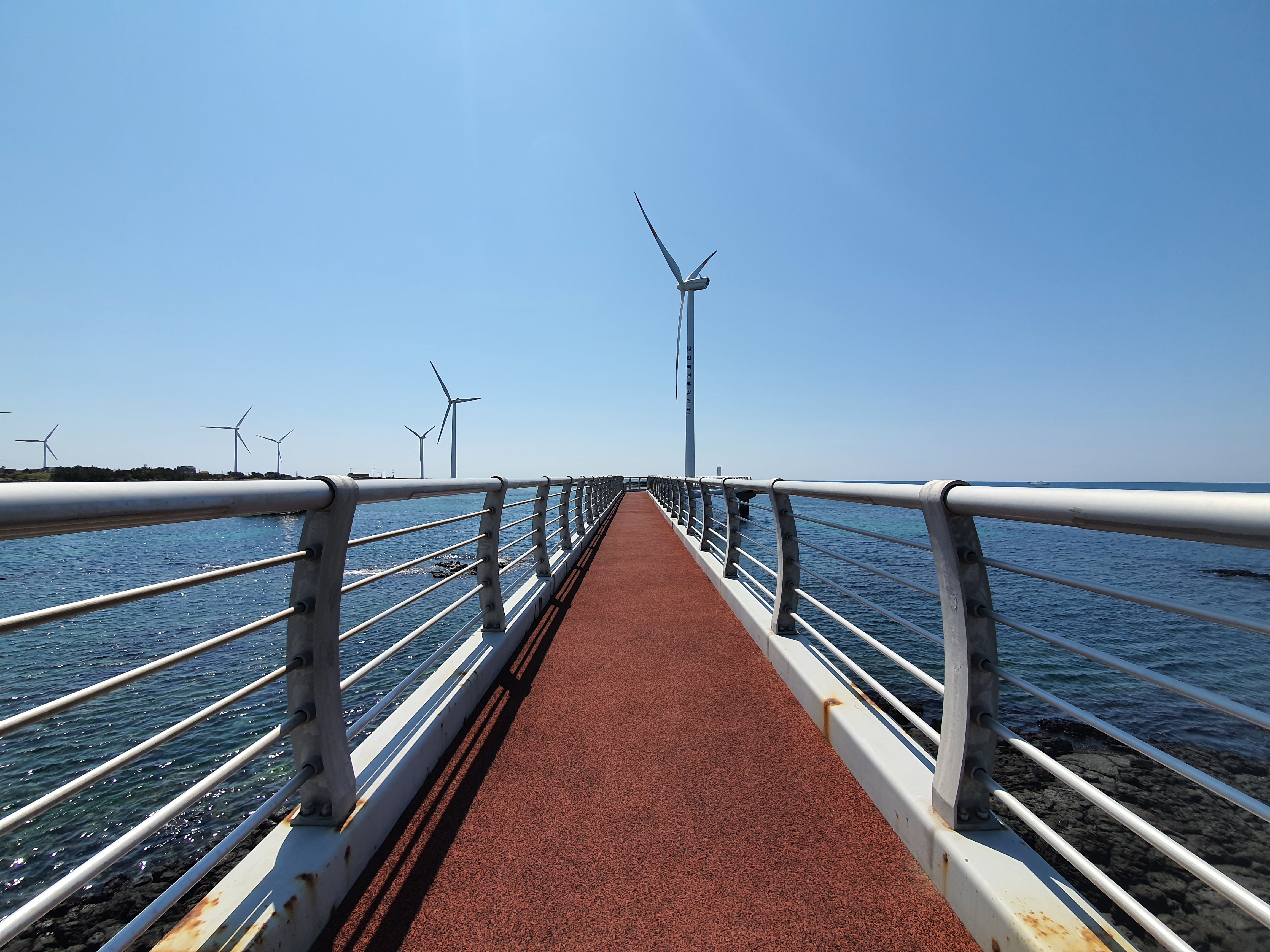 잔잔한 바다하며, 천천히 돌아가는 풍차하며