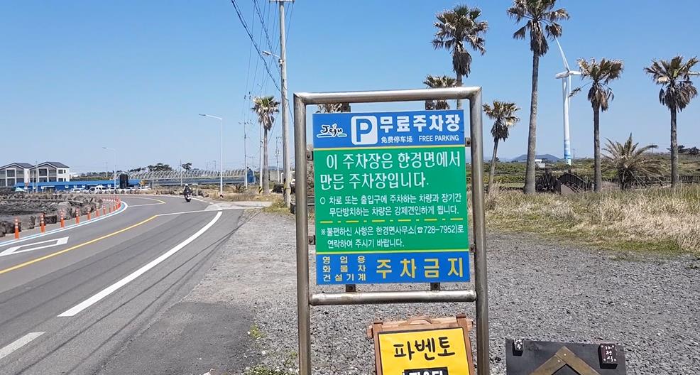 이렇게 한경면에서 만든 무료주차장이있다.