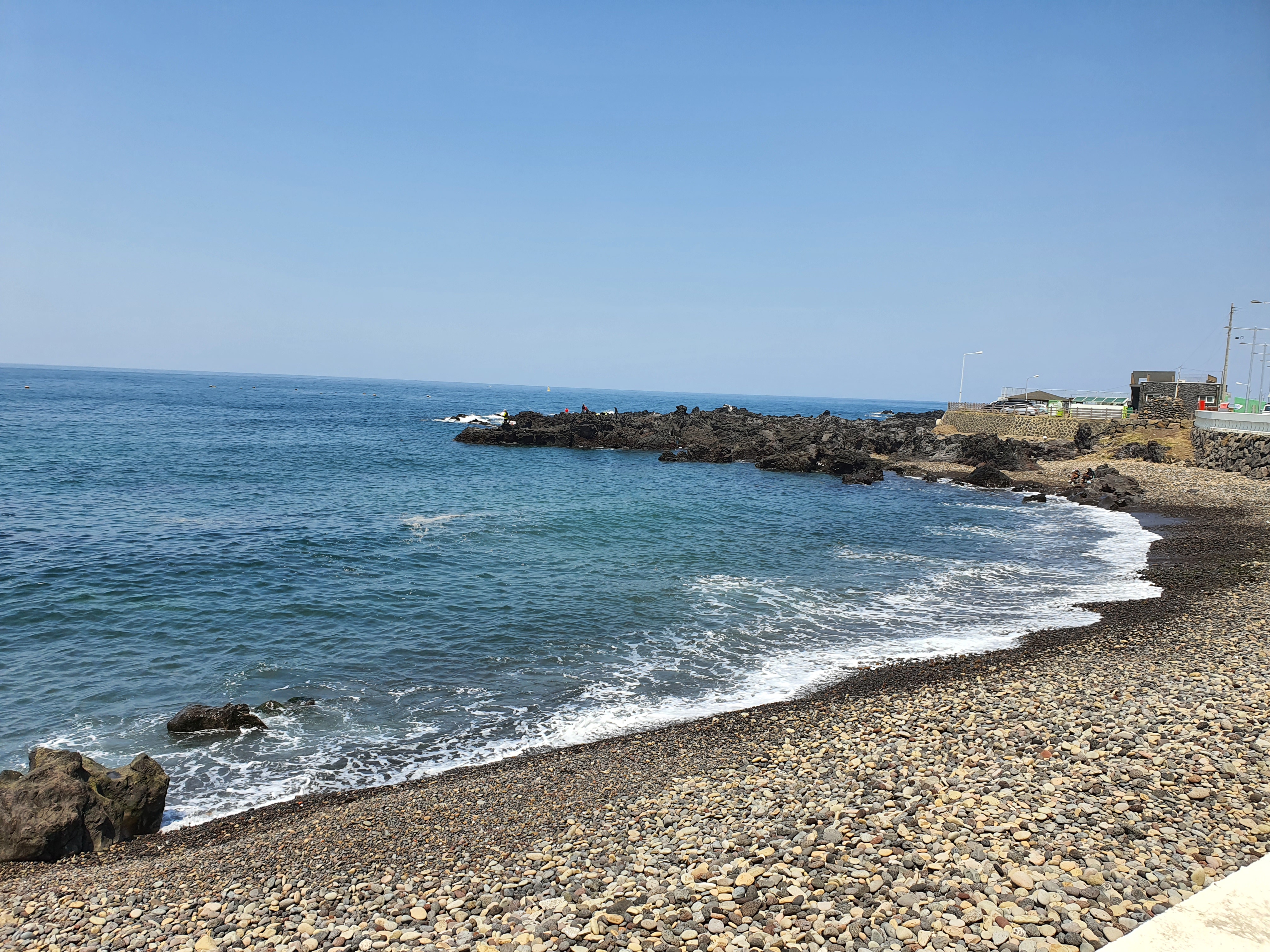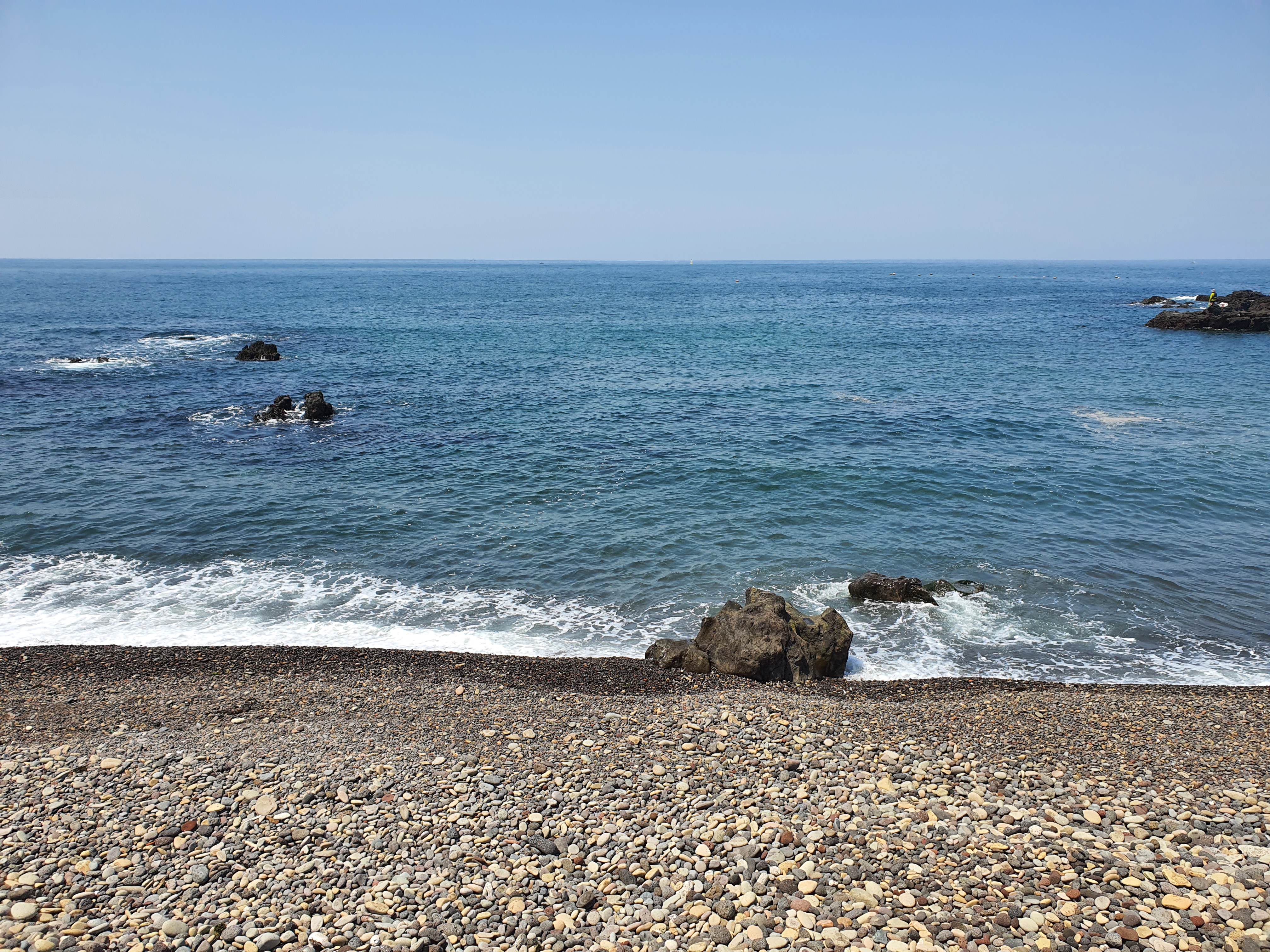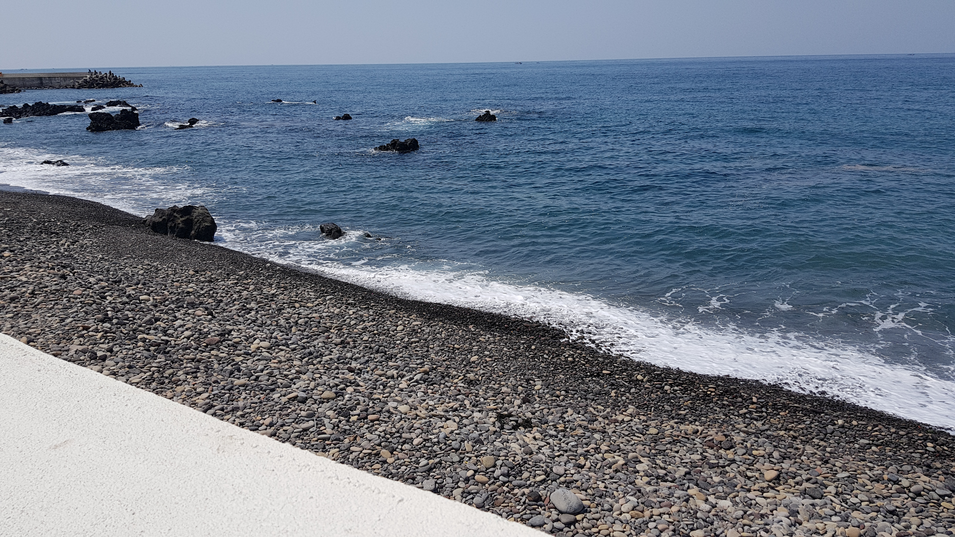 돌들은 파도에 의해 다듬어지거나, 한라산에서 내려오는 과정을 겪었기 때문에 자갈 모양으로 정말 동글동글하다. 그리고 이곳을 더욱 좋아하는 이유는 바로 소리!! 파도에 자갈들이 움직이는데, 그때 들리는 소리가 정말 좋다.