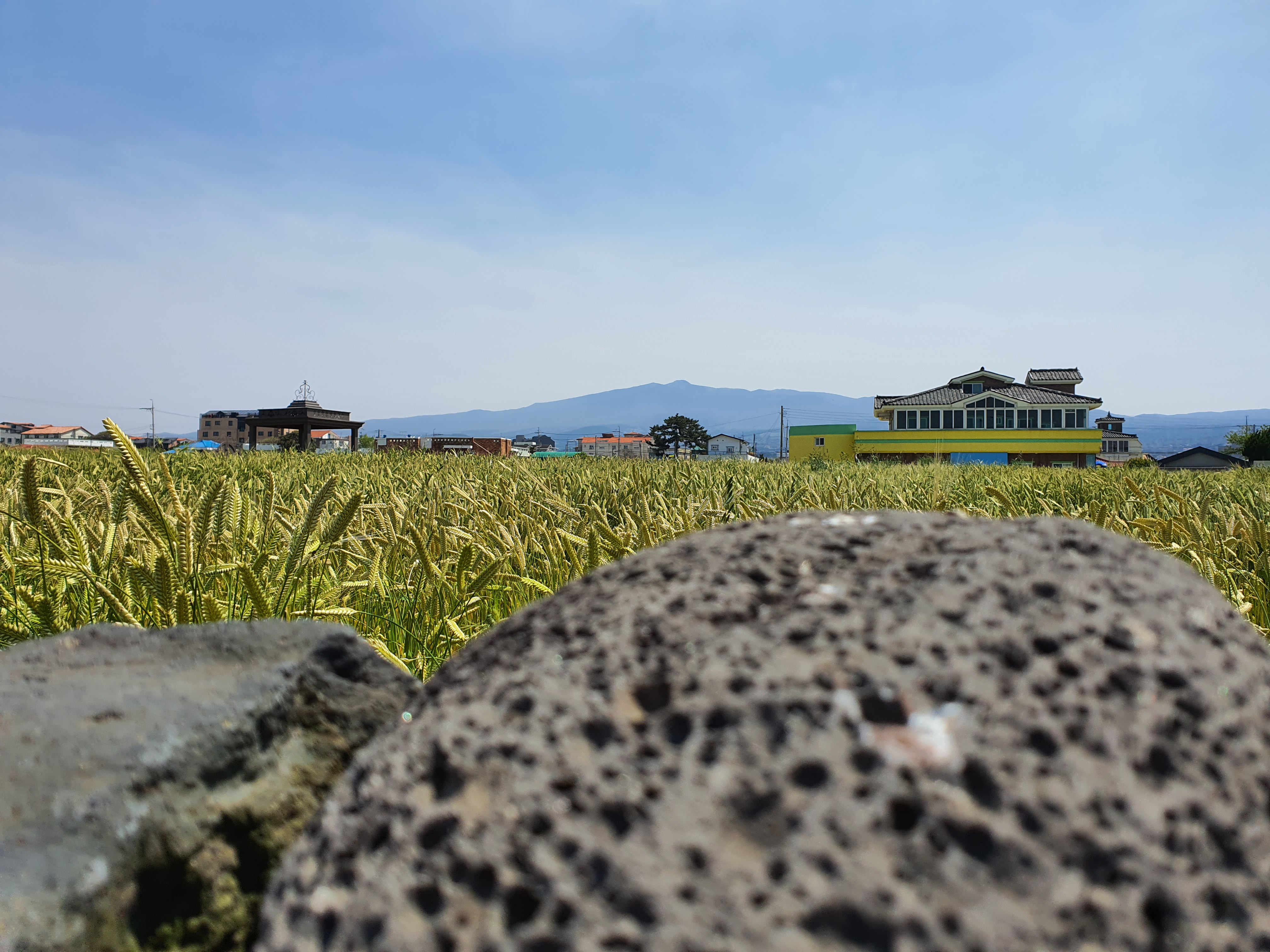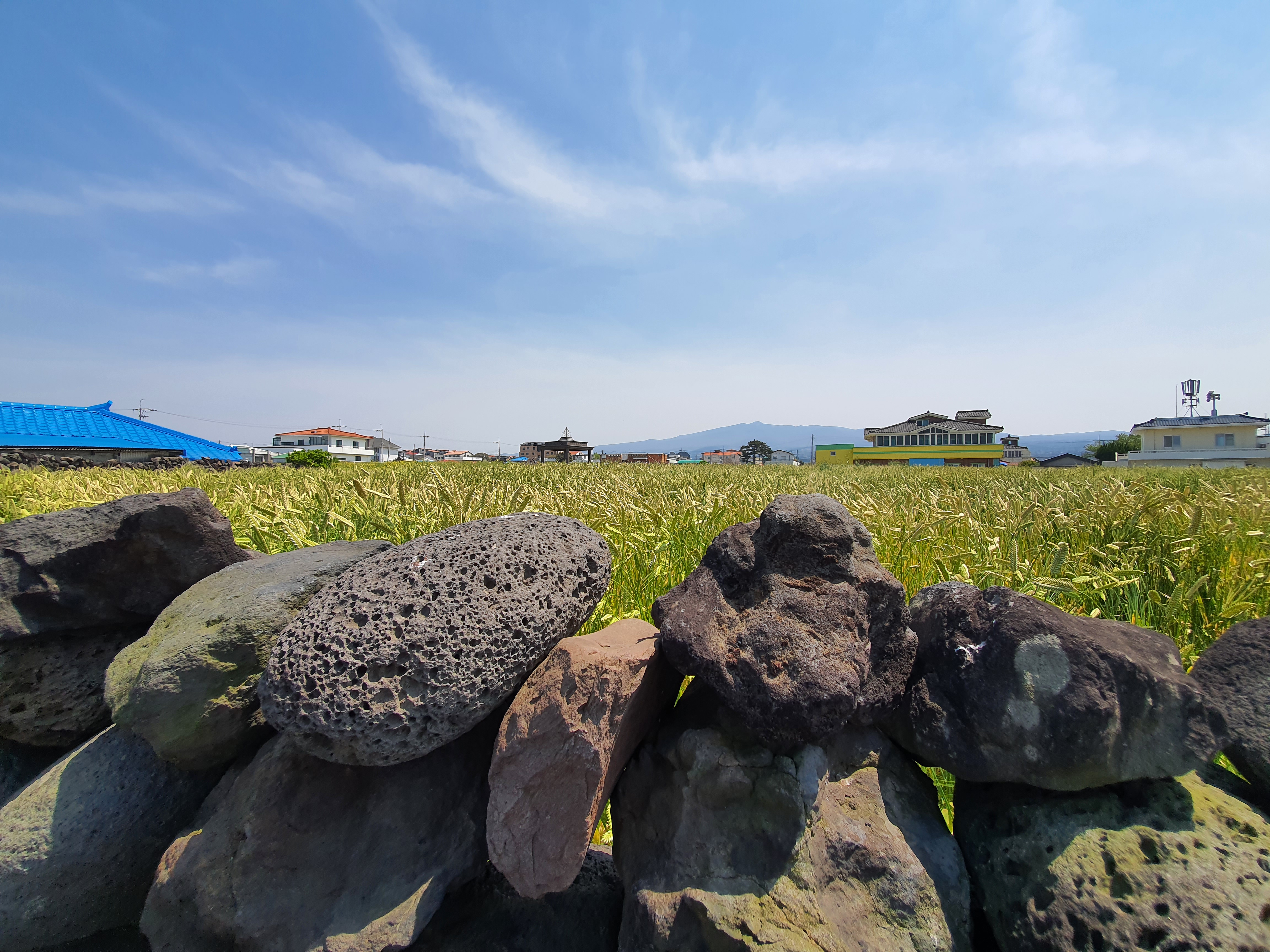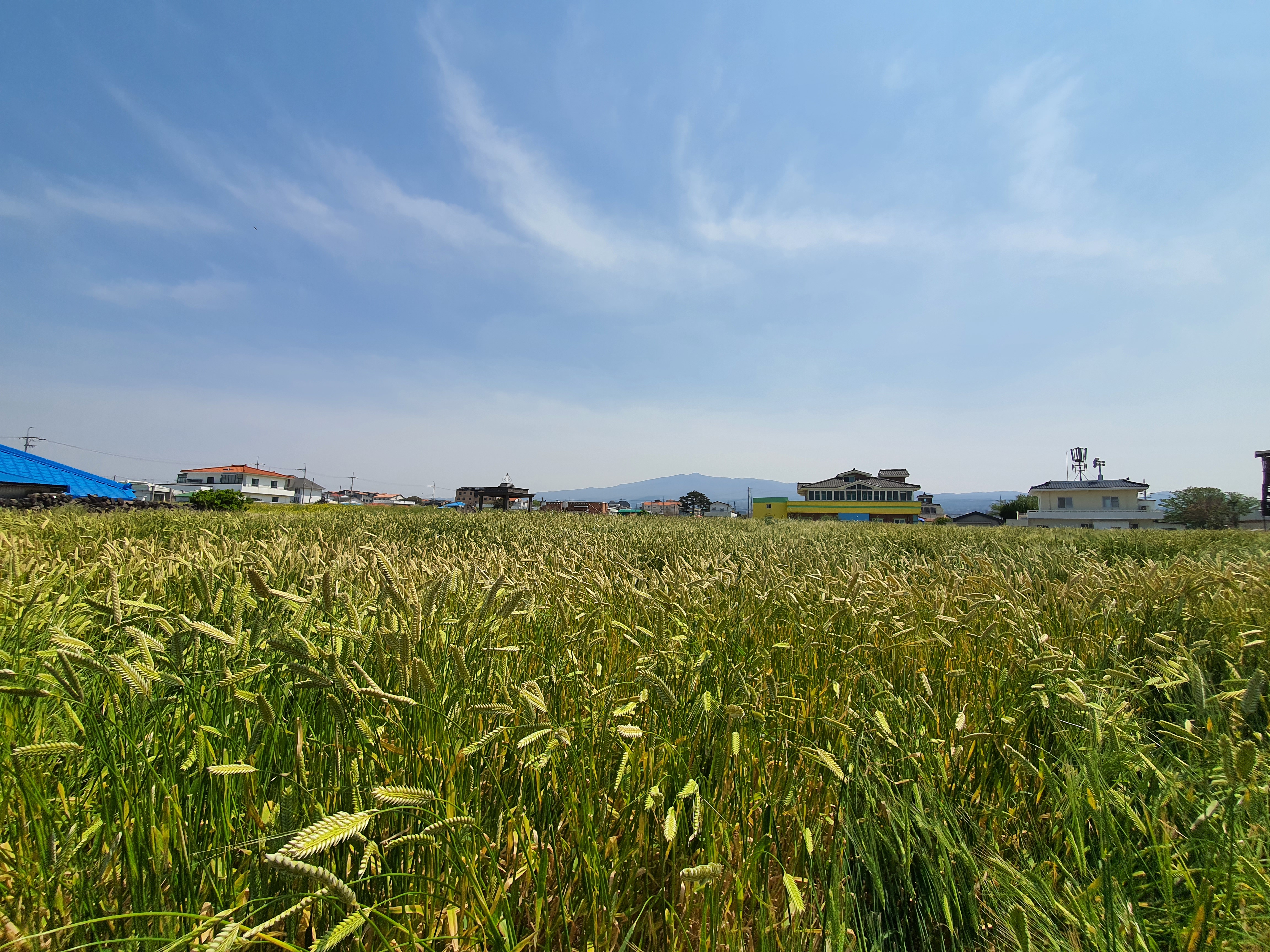 내도로 가기 전 잠시 차를 세우고 바다로 걸어 가던 중 또 멋진 곳을 발견했다. 청보리를 가파도에서만 많이 볼줄 알았는데, 이렇게 시내에서 가까이 찾아 볼 수 있었다. 멀리 한라산까지 보이고 진짜 실제로 보면 풍경이 너무나 예쁘다.
