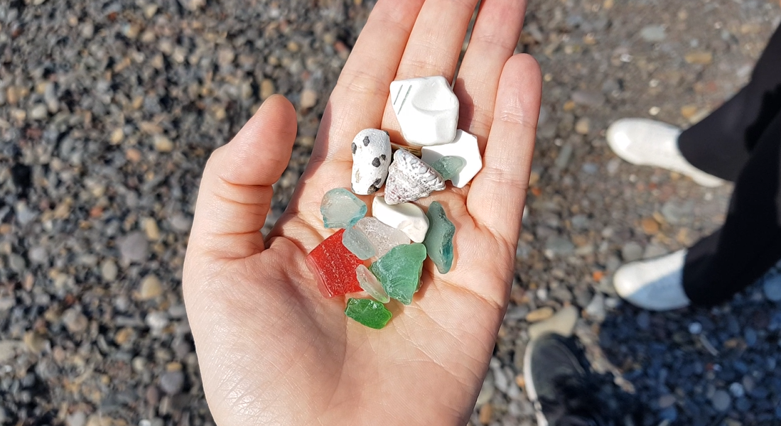 그리고 해변 에는 유리조각, 플라스틱이 꽤 많은데, 위 사진 처럼 파도에 돌과 함께 쓸려 자갈 모양으로 뭉툭하다. 여러개를 줍다보니 생각보다 예쁘다. 그래도 이건 쓰레기이니 집에갈 때 가지고 가야지. 인기 좋은 관광지도 좋지만 제주에 살고 있거나 한적한 장소가 필요하다면 알려줄 수 있는 제주 여행 추천 장소이다.