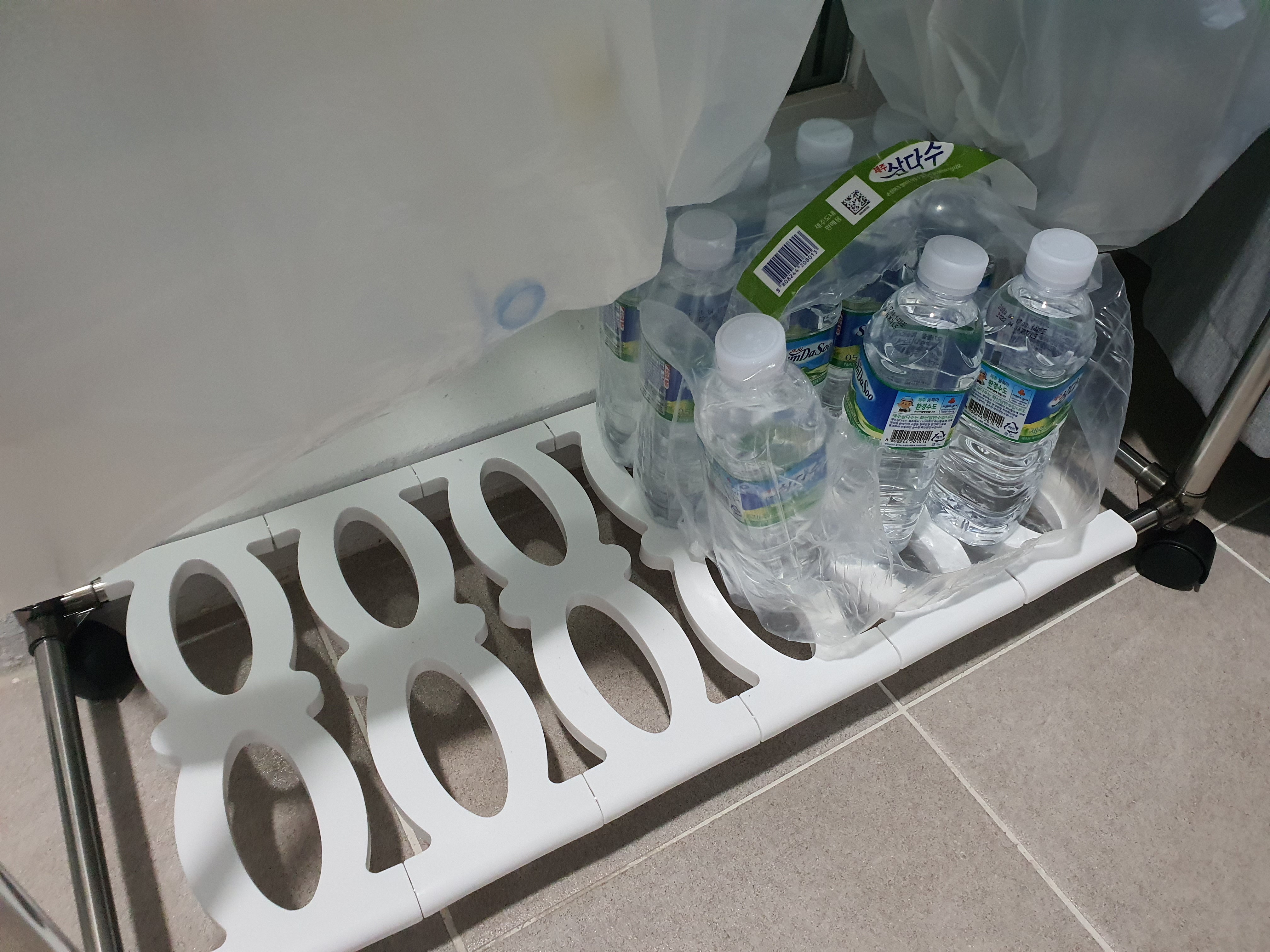 밑에 받침은 엄청 튼튼 하지는 않다. 부셔질까봐 조마조마. 하지만 물 조금은 올려도 된다.