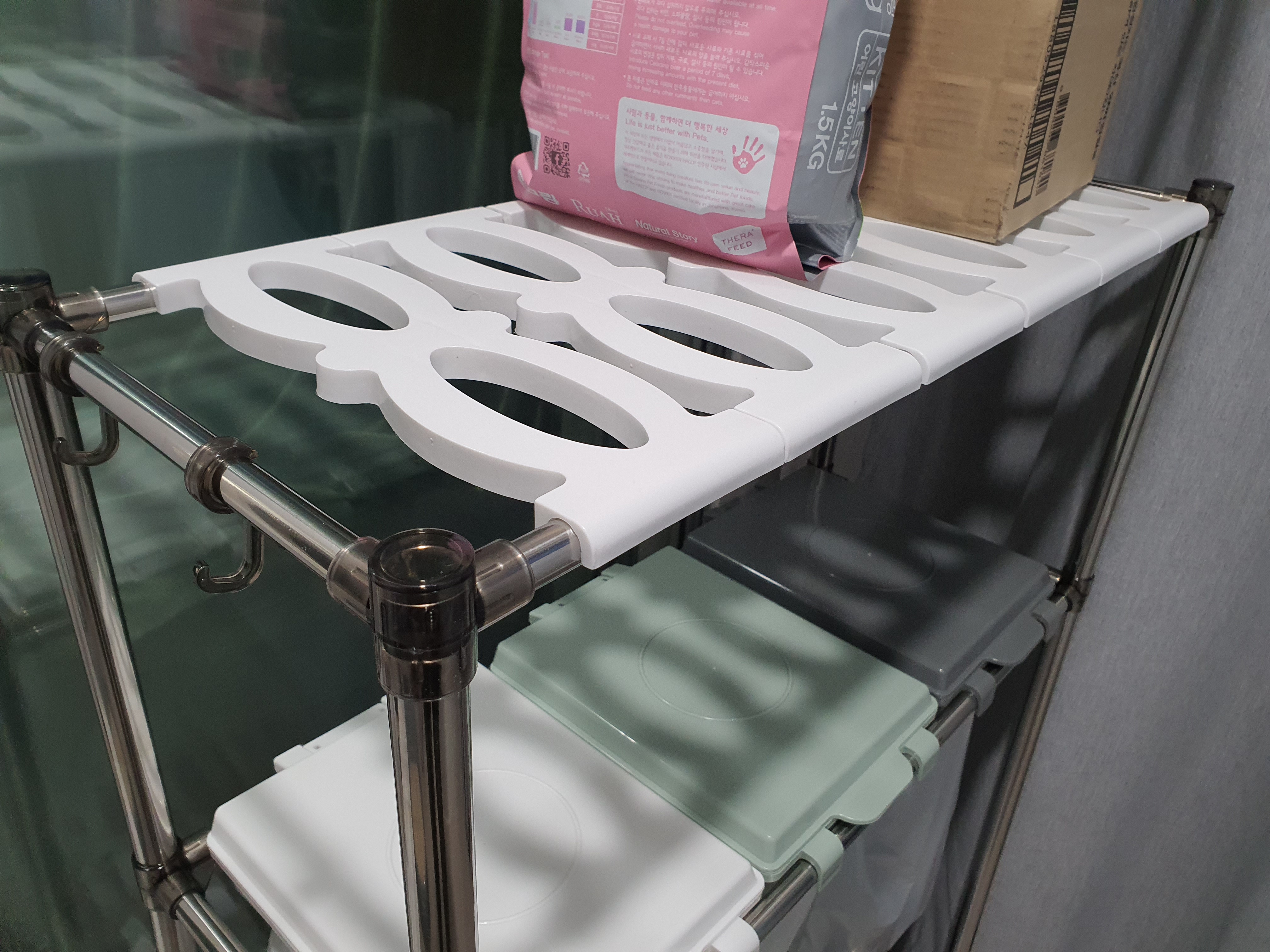 이렇게 밑에 쓰레기통이 있고 위에 선반이 있어서 진짜 물건 놓기도 좋고 개꿀이이다ㅠ