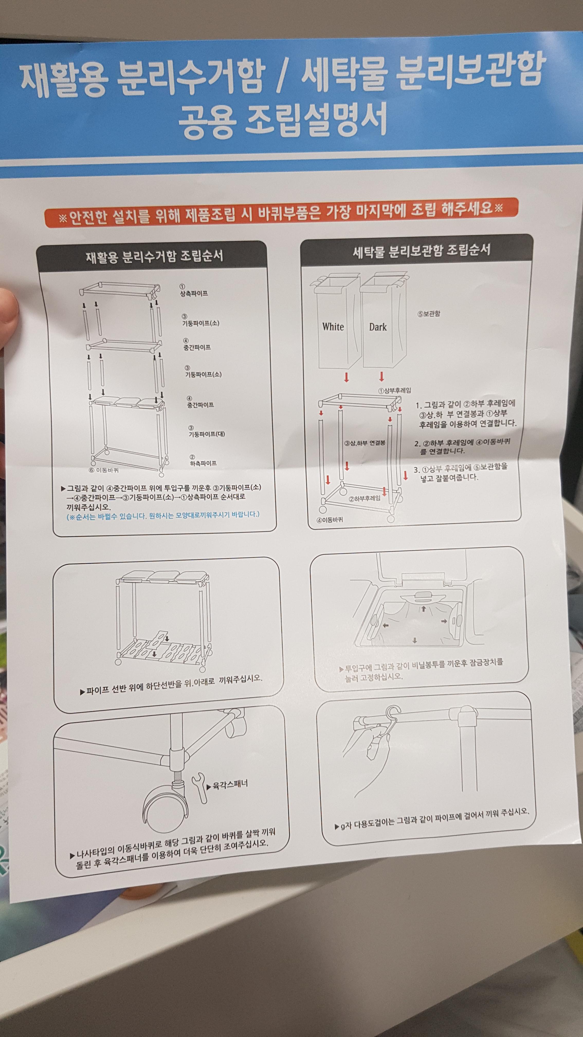 나는 2단짜리를 구매 하였는데 쓰레기 분리수거함 조립방법은 매우간단하다. 드릴도 필요없고. 육각스패너 하나가 함께 오는데 그걸로 조여주면 끝!