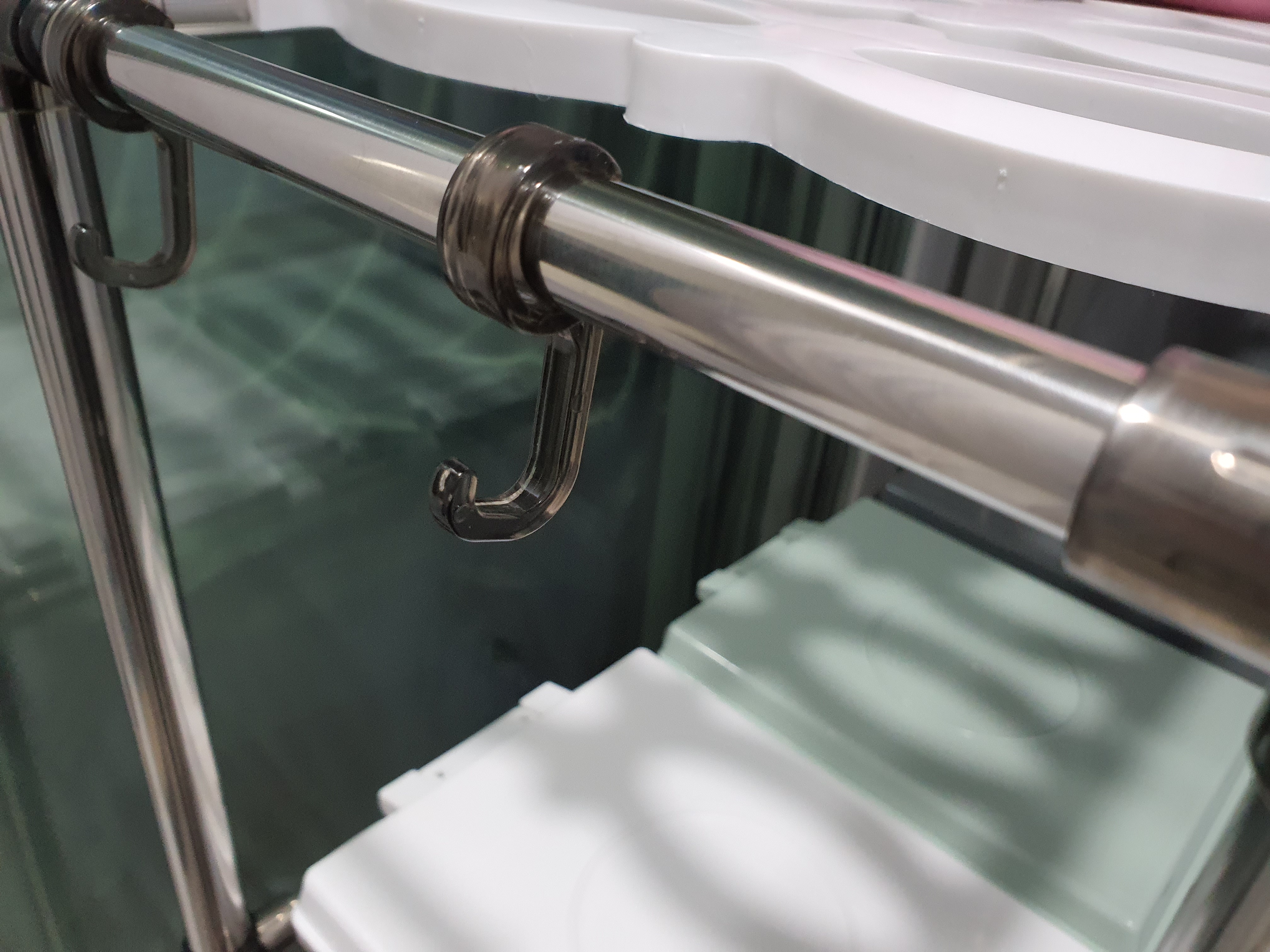 그리고 고리가 3개정도 들어있는데 원하는 위치에 달면 유용하게 잘쓰게된다. 나는 고양이 똥삽을 걸어놓았다.