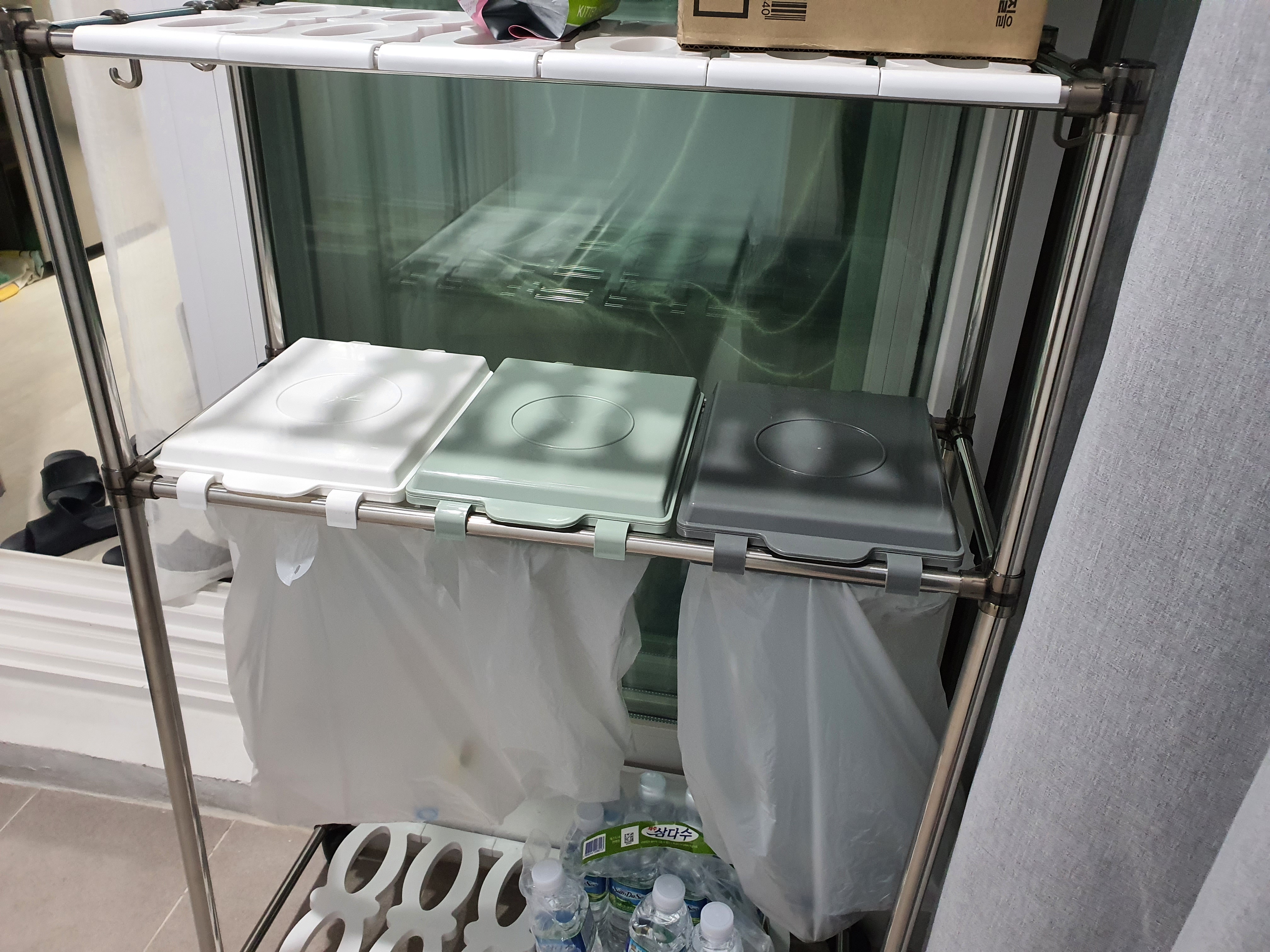 허리를 굽히지않고 뚜껑만 열면 바로 쓰레기 골인ㅠㅠ. 왜 쓰레기 분리수거함을 이제야 샀을까ㅠㅠ 존좋..