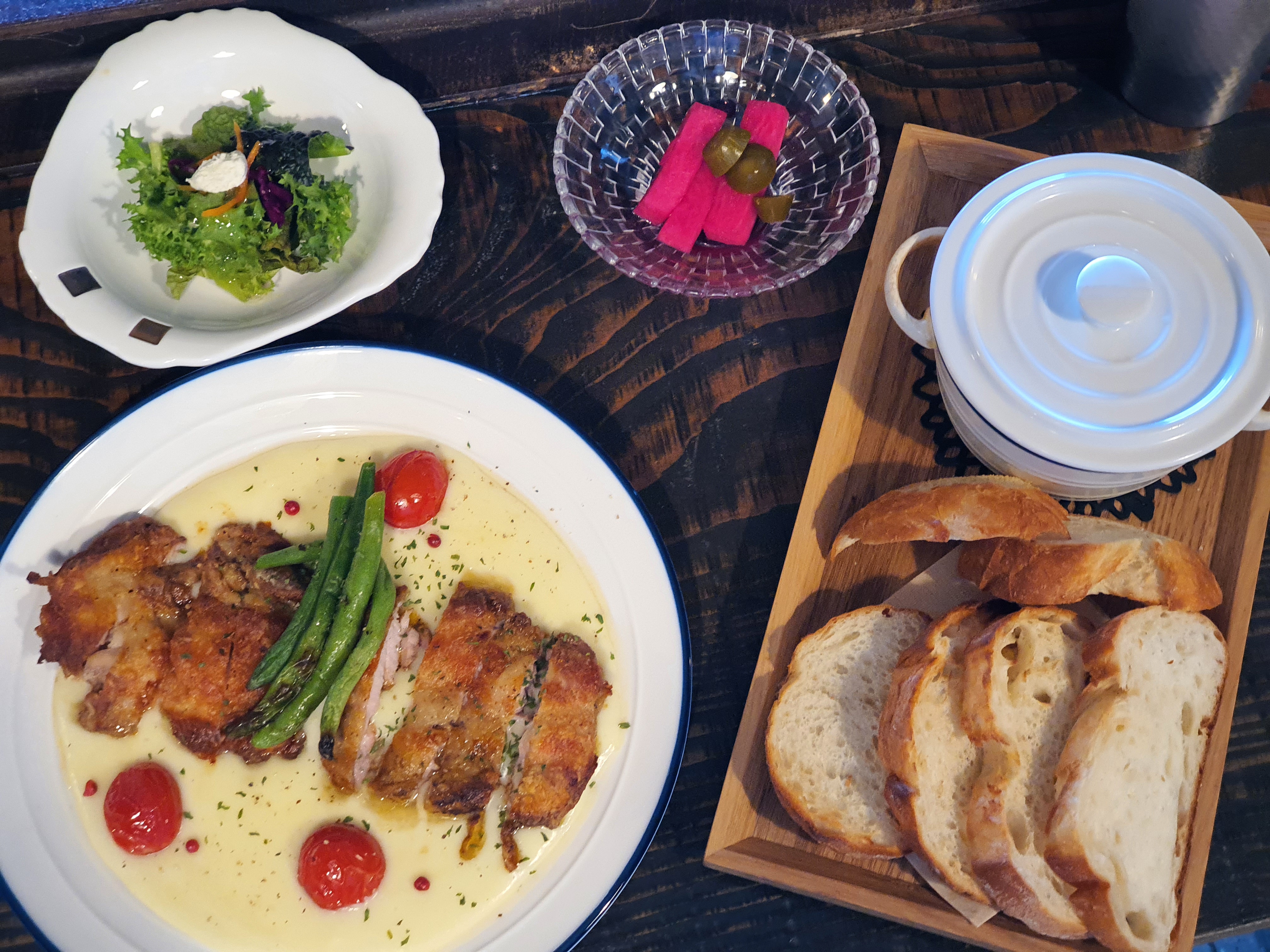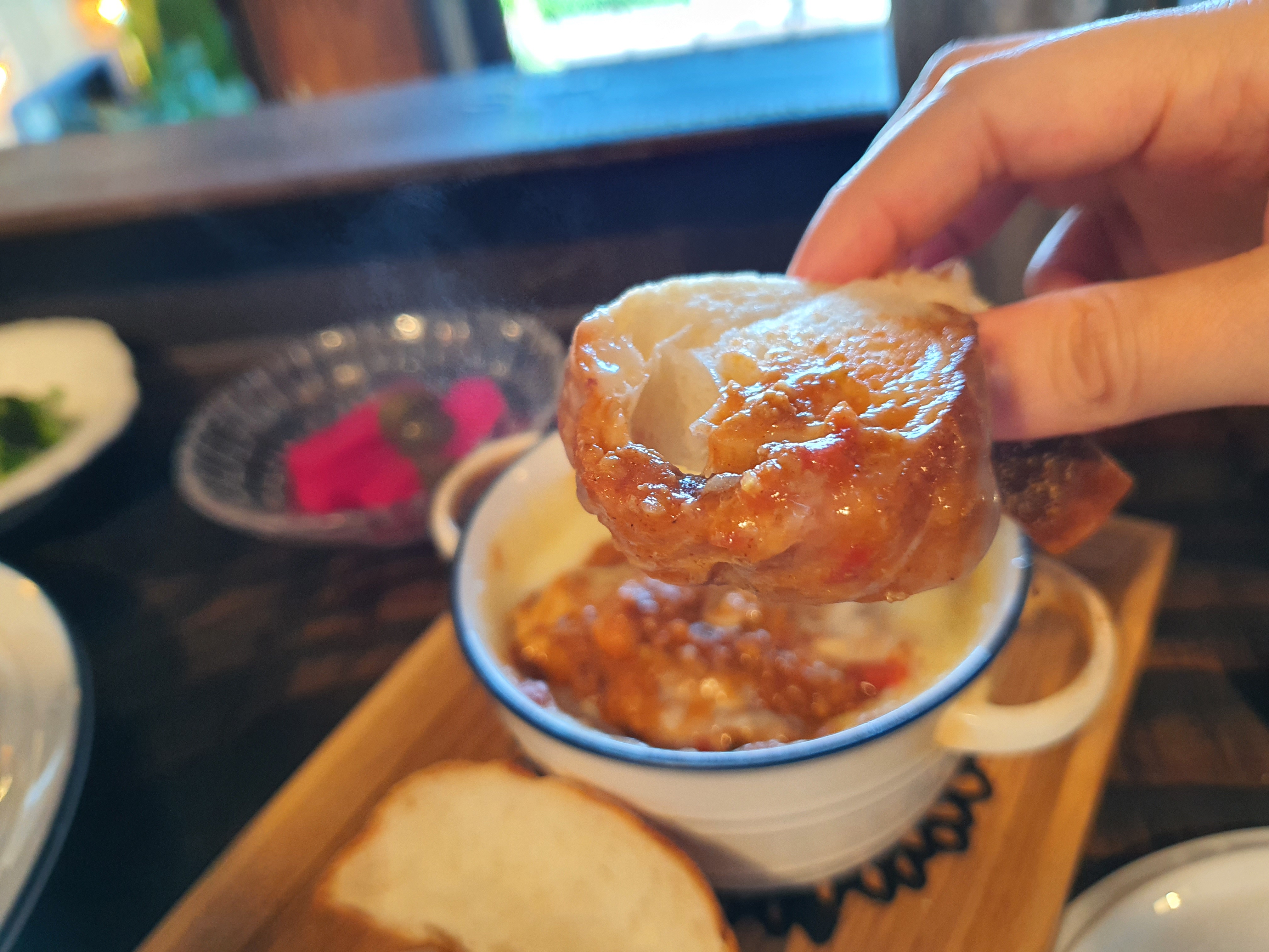 그라탕은 약간의 향신료 맛이 있는데, 민감한 사람은 별로 맛있게 느껴지지 않을 수도 있다. 하지만 나와 친구 입맛에는 딱 좋았다. 치즈가 올라가서 더욱 고소하고 살짝 매콤 달달한? 맛이였다. 역시 그라탕은 빵과 찍어 먹어야 제맛