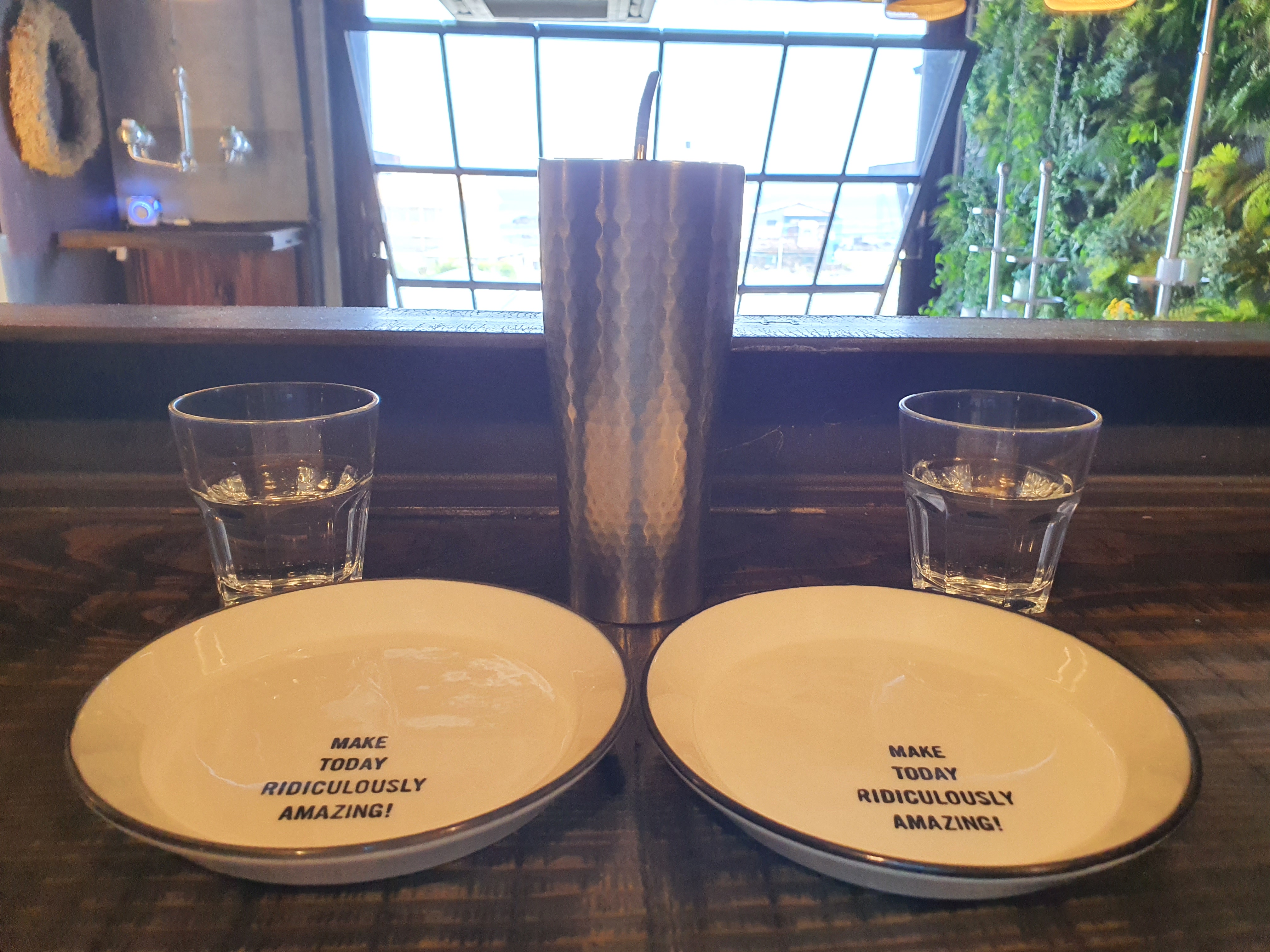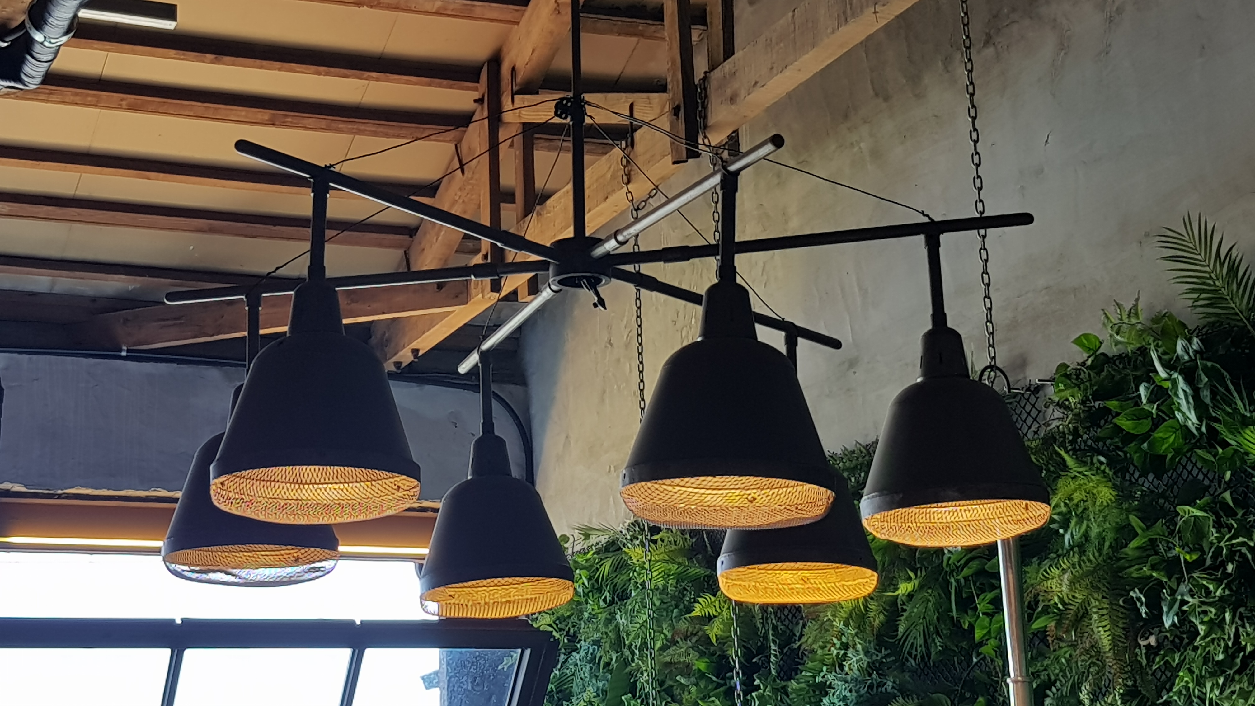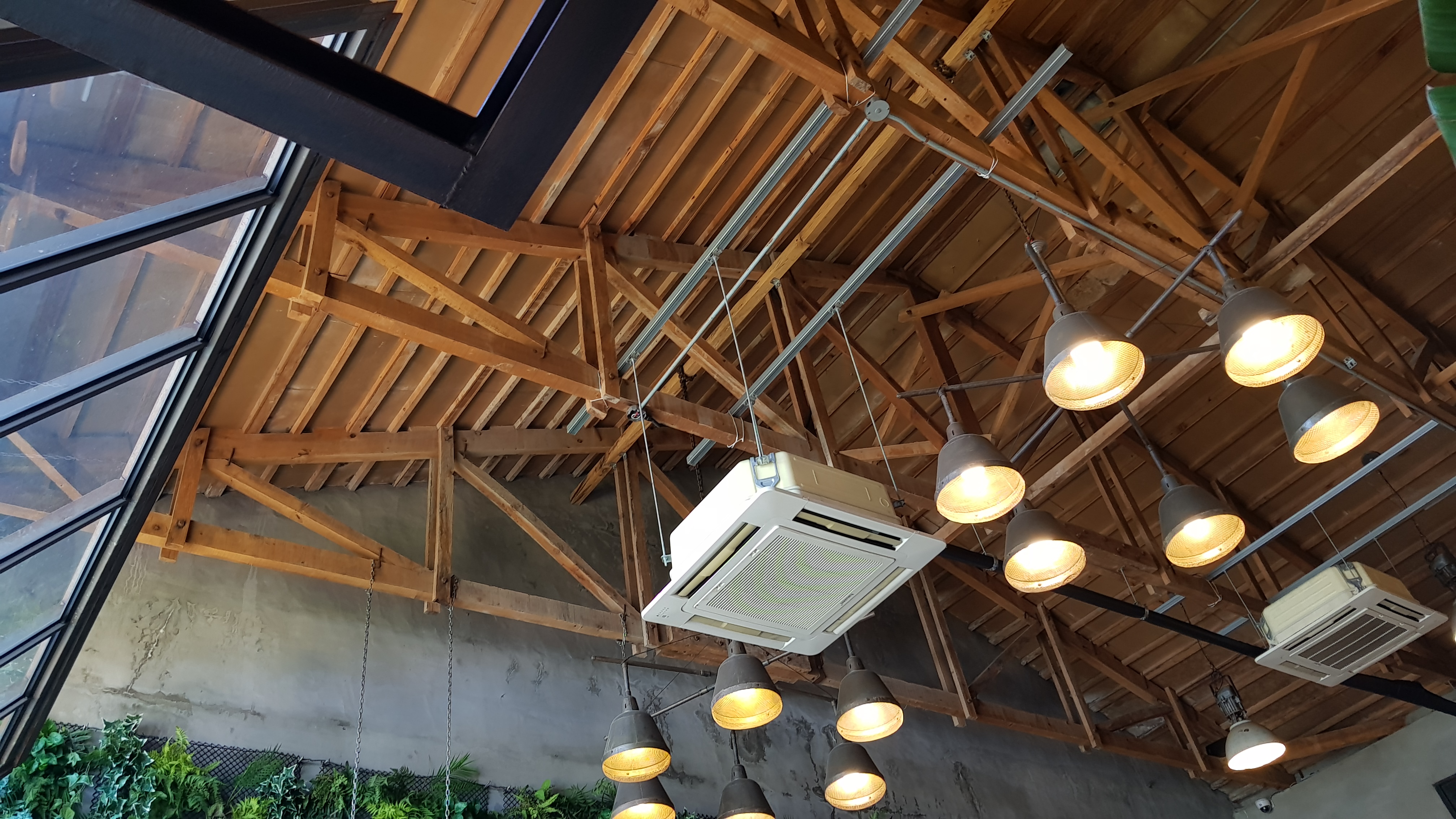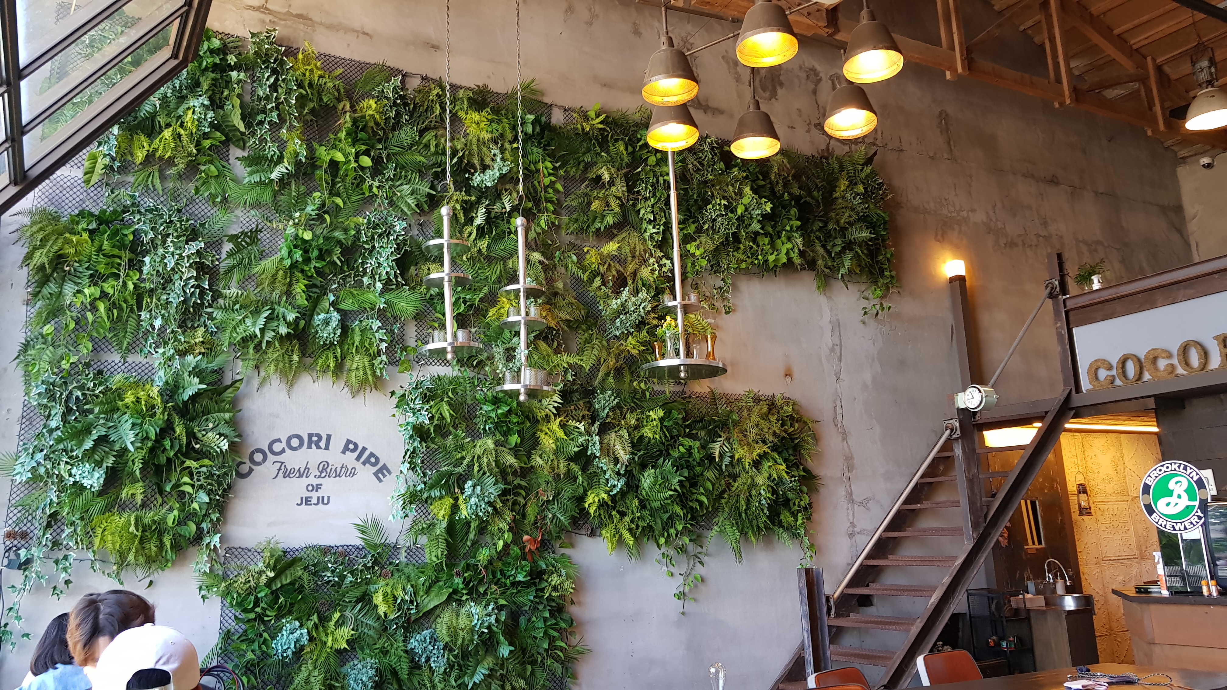 내부의 전체적인 느낌은 푸릇푸릇이랄까? 벽은 초록잎으로 꾸며져있고, 큰 조명과 2층도 있으며, 천장이 높아서 꽤 넓어보인다.