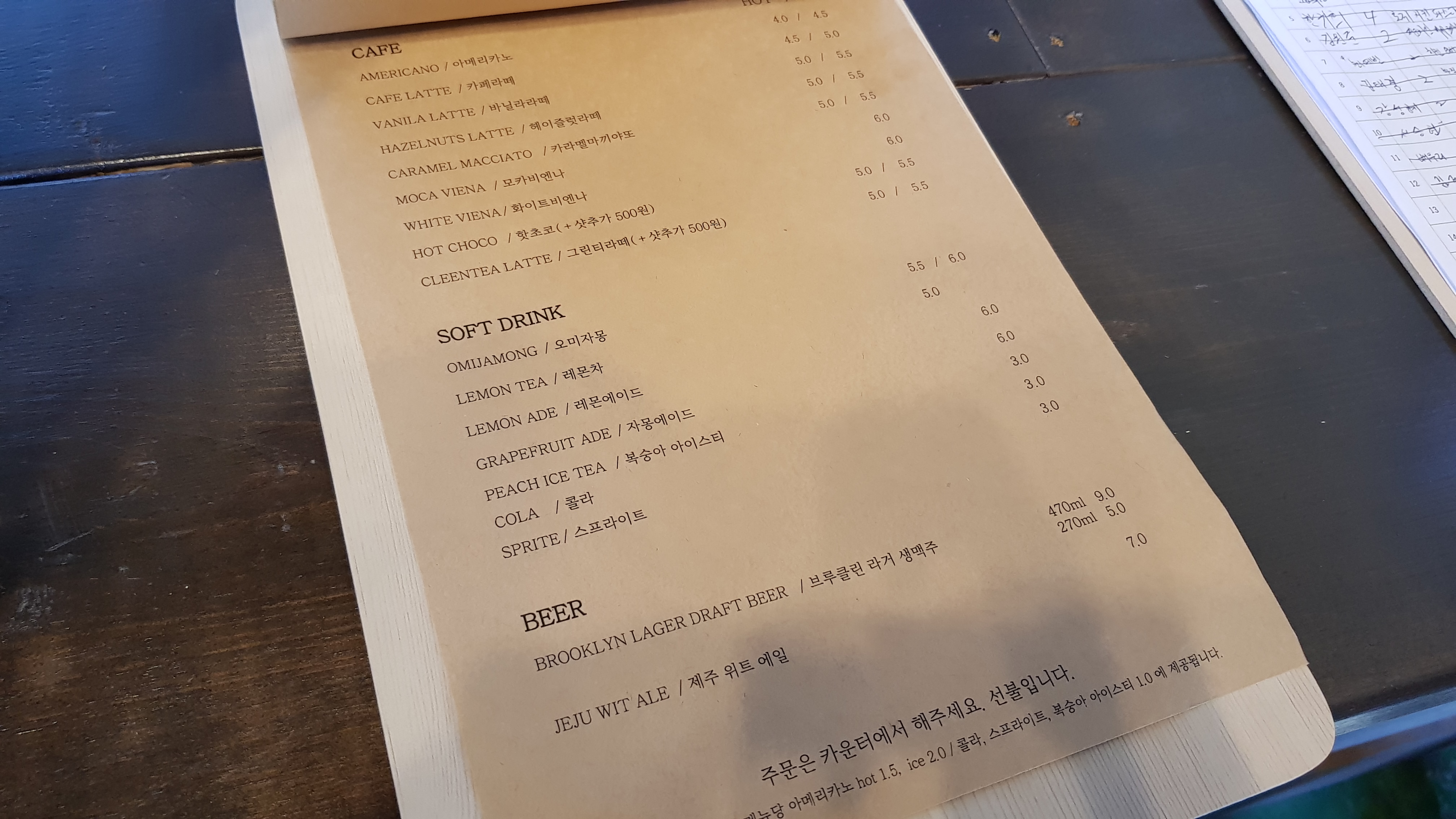 맥주와 커피도 마실 수 있음. 목이 마르긴 했지만 낮이고 차를 가지고 와서 맥주는 마시지 않았다.