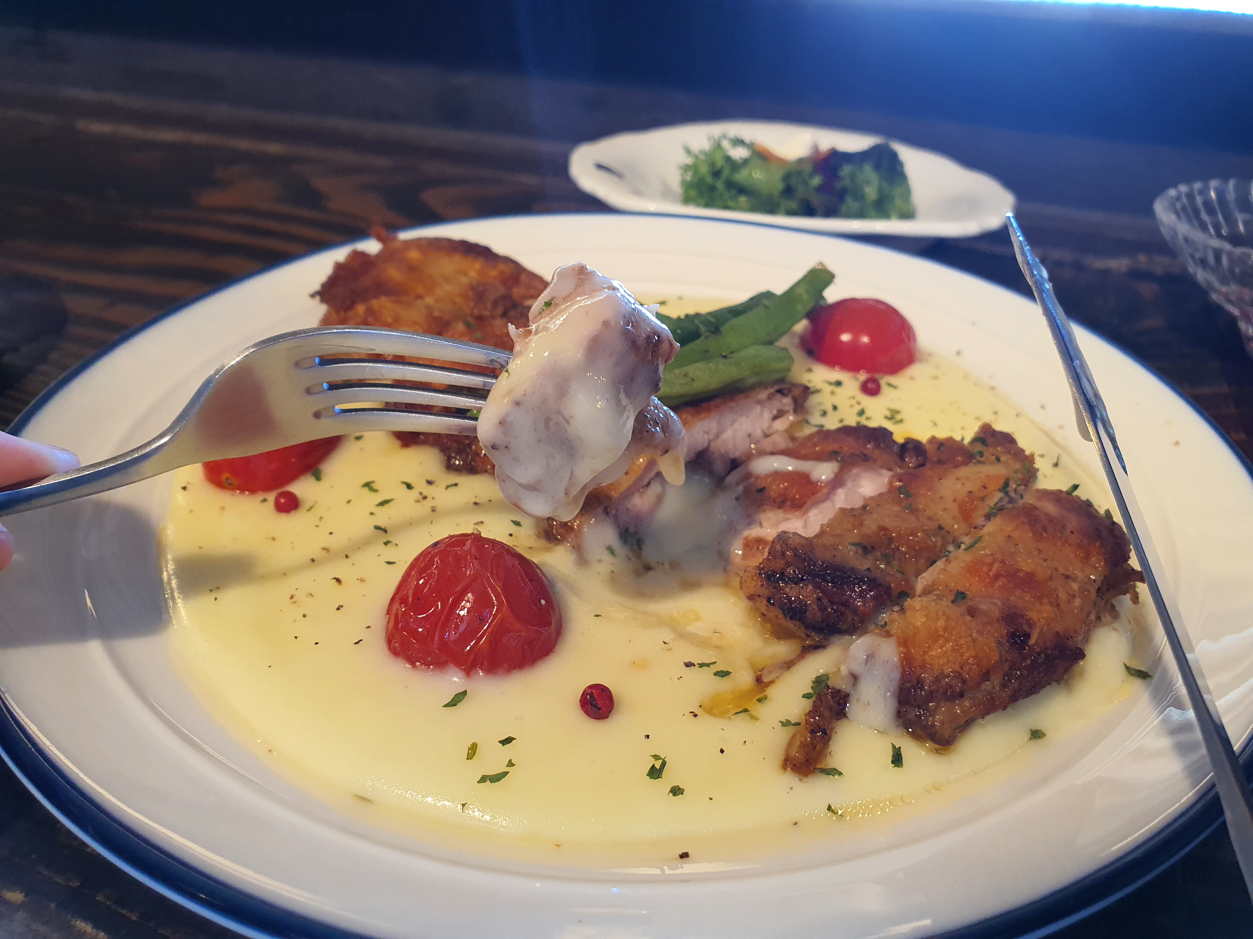 오븐에 구운 치킨을 이렇게 매쉬 포테이토와 함께 찍어먹으니 정말 제대로 된 레스토랑에서 분위기 좋게 맛있는 음식을 먹는 느낌이였다.