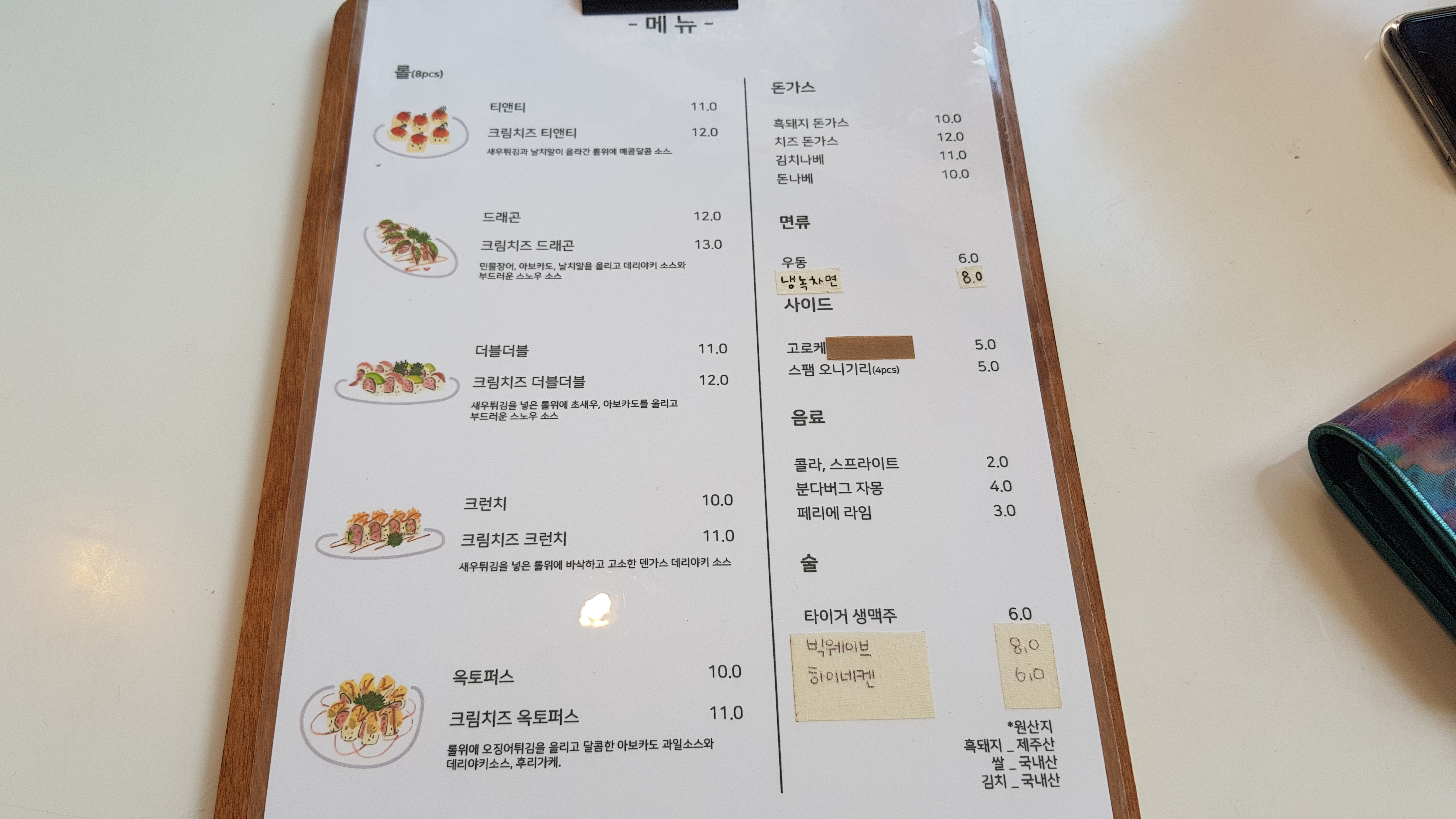 그리고 들어오자마자 보이는 타이거 생맥주가 있다. 주문을 하면서 어찌나 마시고 싶은지 고민을 좀 했는데 낮이고 다른친구들은 마시지 않겠다하여 맥주는 패스ㅠㅠ
