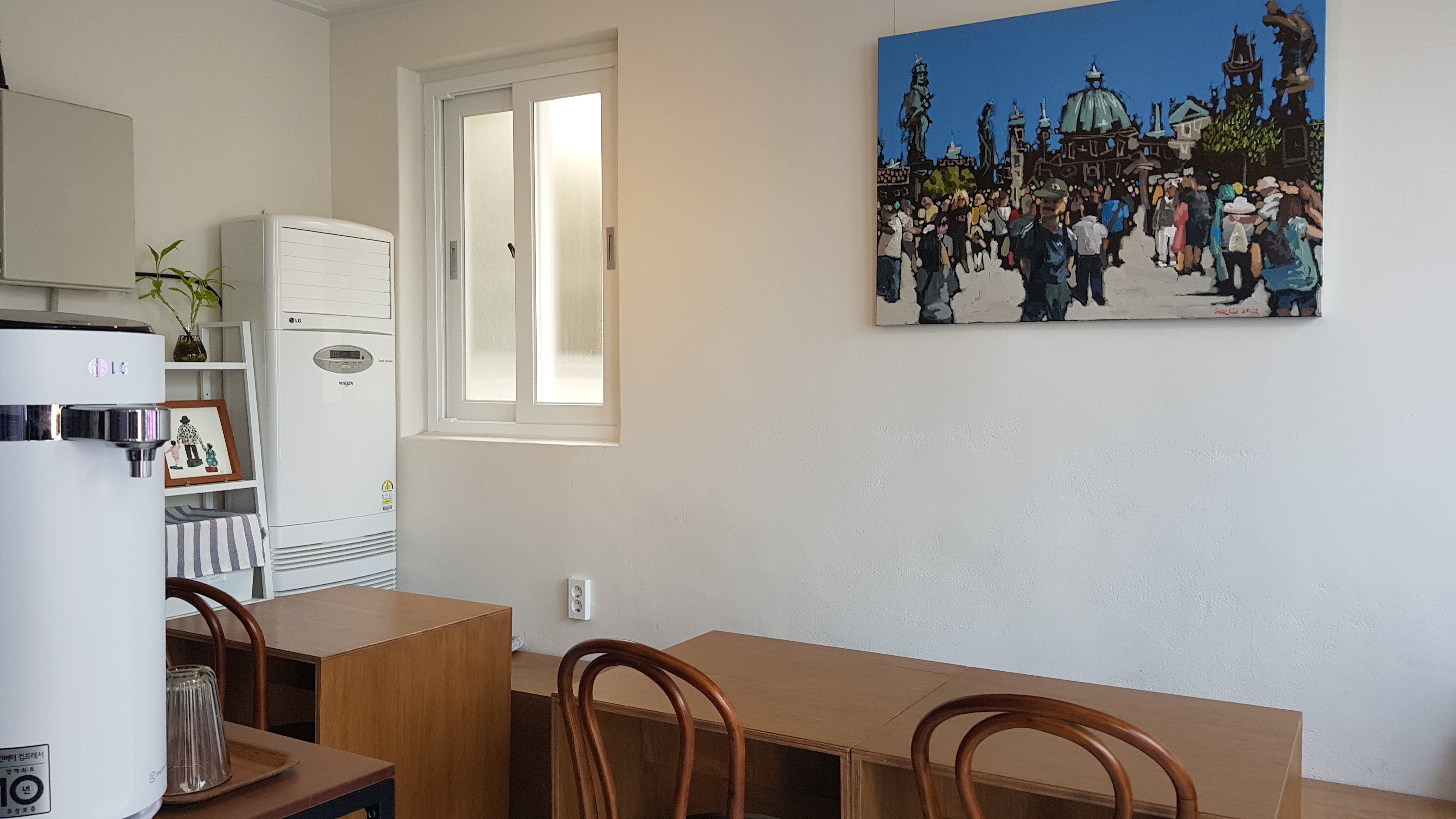 내부는 테이블이 4개정도만 있는 굉장히 작은 공간이다. 인테리어는 화이트와 우드로 맞추었고 아기자기하고 아늑한 공간이 된것같다.