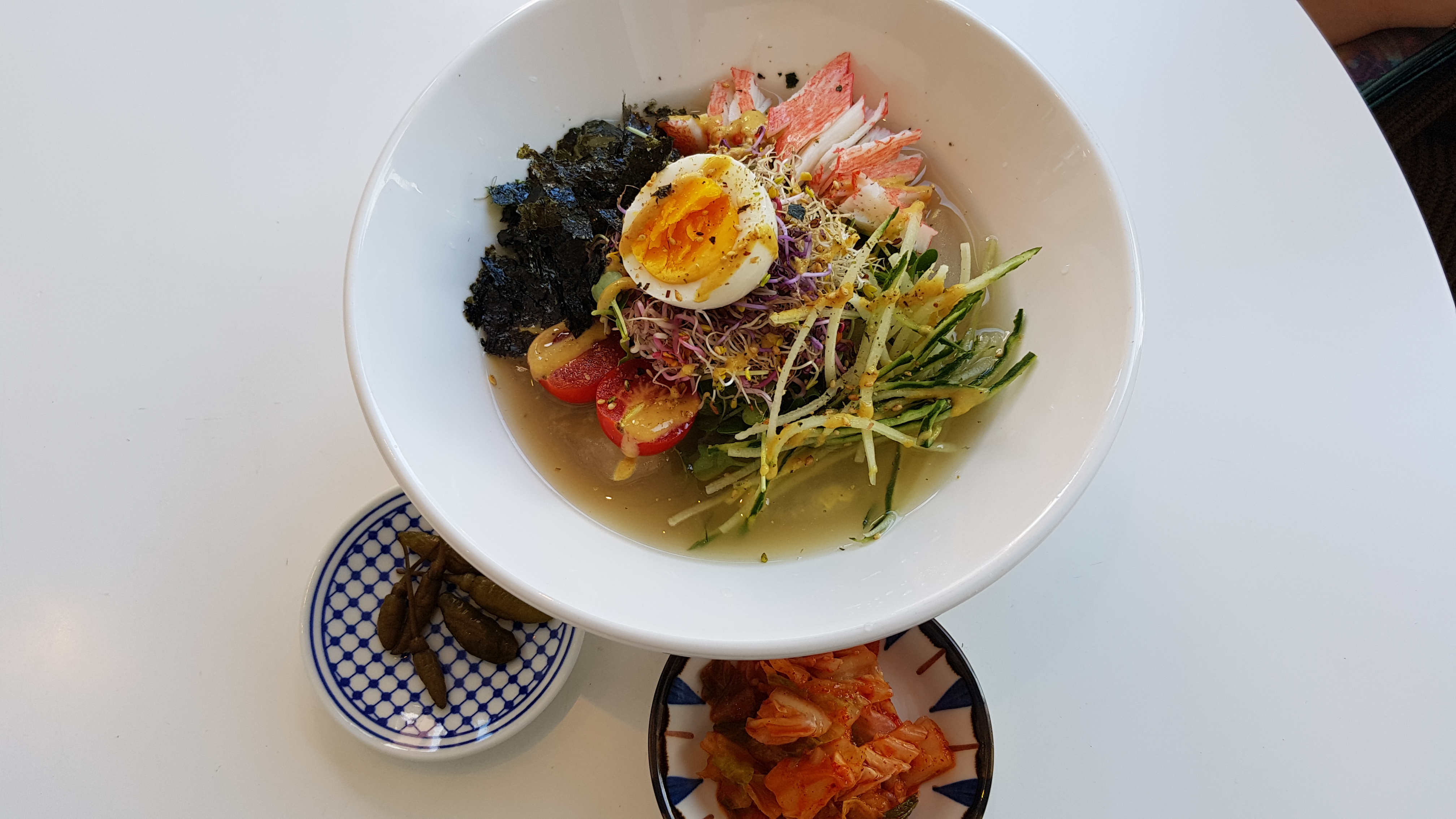 친구가 주문한 냉녹차면은 예전에 없었던 메뉴인데 여름을 겨냥해서 만든것같다. 약간 국물 맛이 둥지냉면 맛과 비슷했다. 면은 녹차가 들어가서 소화가 잘되고 건강에 좋을듯.