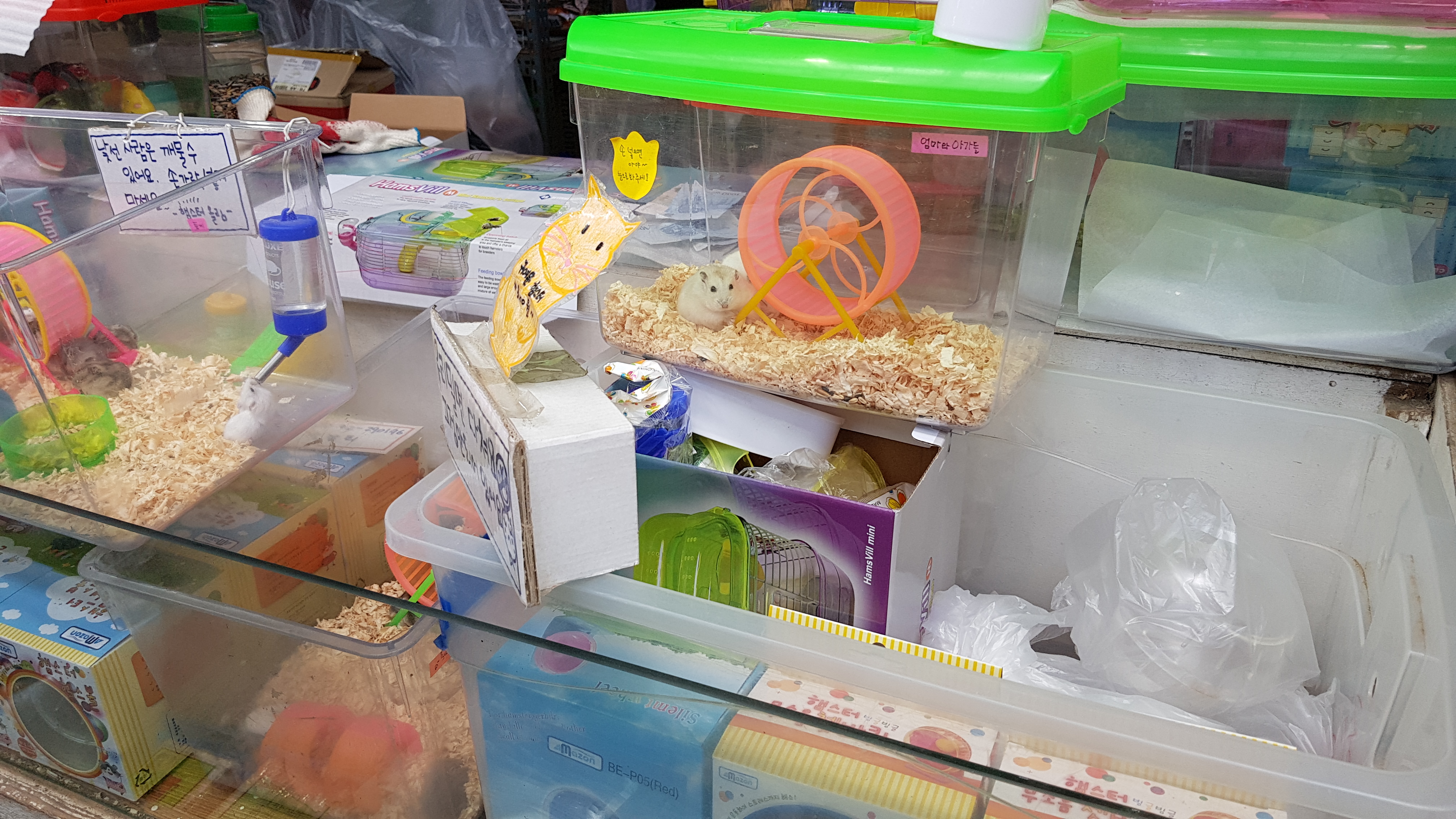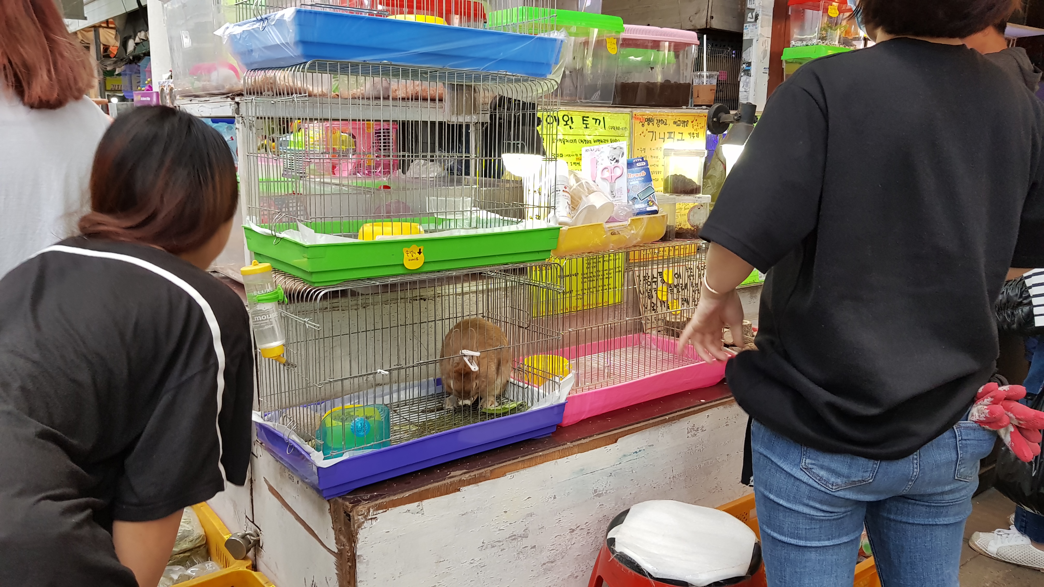 토끼, 햄스터, 기니피그, 거북이 등 다양한 애완동물이 있는데, 정말 이곳은 항상 인기가 좋은 곳이다. 나도 제주 민속오일장에 오면 꼭 한번 들려보는 장소이다.