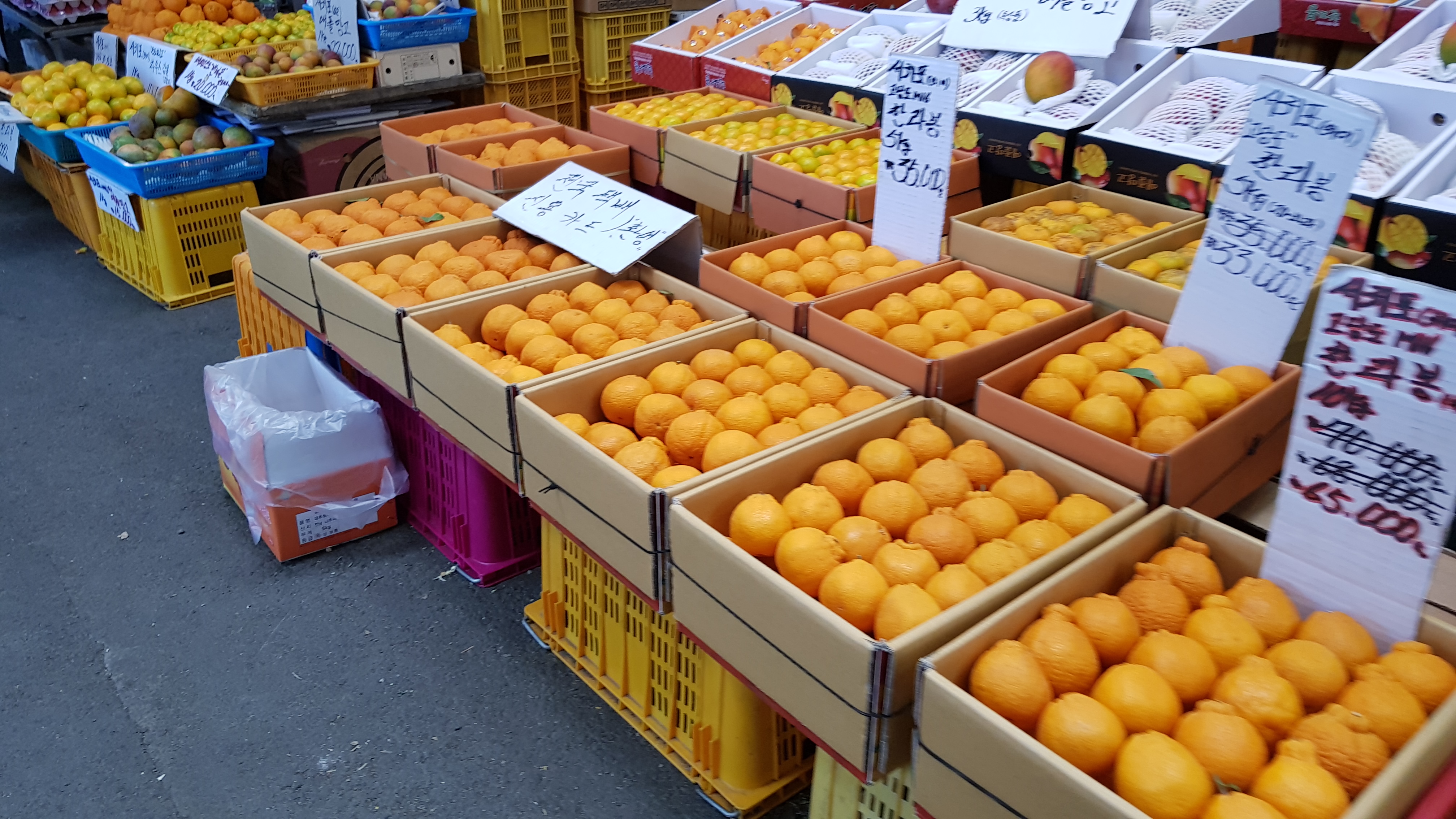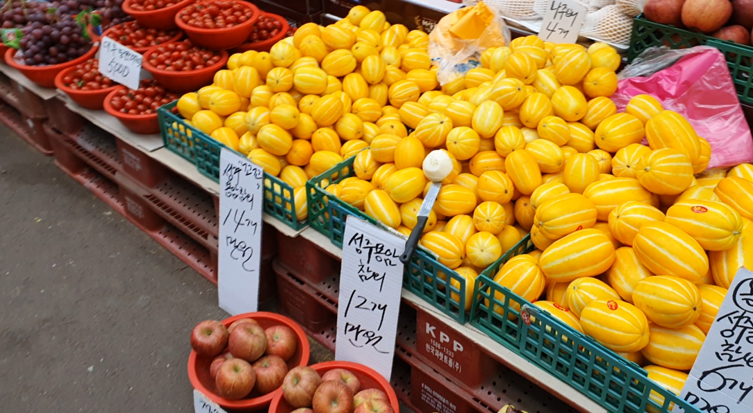 마트에서 채소와 과일을 사도 좋지만 이렇게 바구니씩 파는 제주 민속오일장에서 구매를 해도 좋다. 말만 잘하면 천원깍아주던가 덤으로 하나씩 더 주기도함.ㅎㅎ