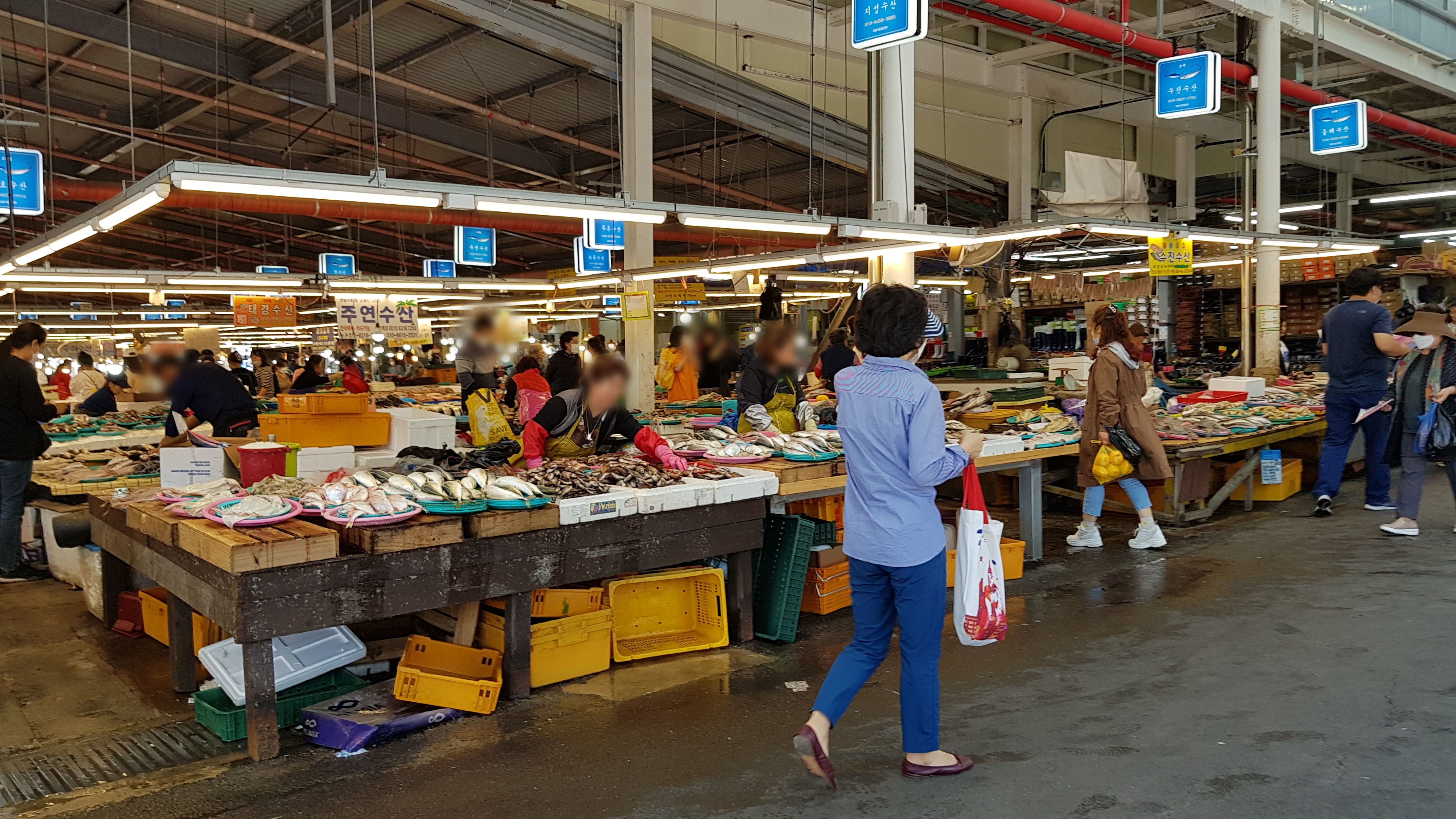 제주산 고등어, 갈치, 자리돔이 싱싱하게 진열되어 있다. 도민들도 많이 오는 곳이지만, 여행객들도 이것저것 구경할 게 많아서 꼭 추천하고 싶은 여행지이기도 하다.