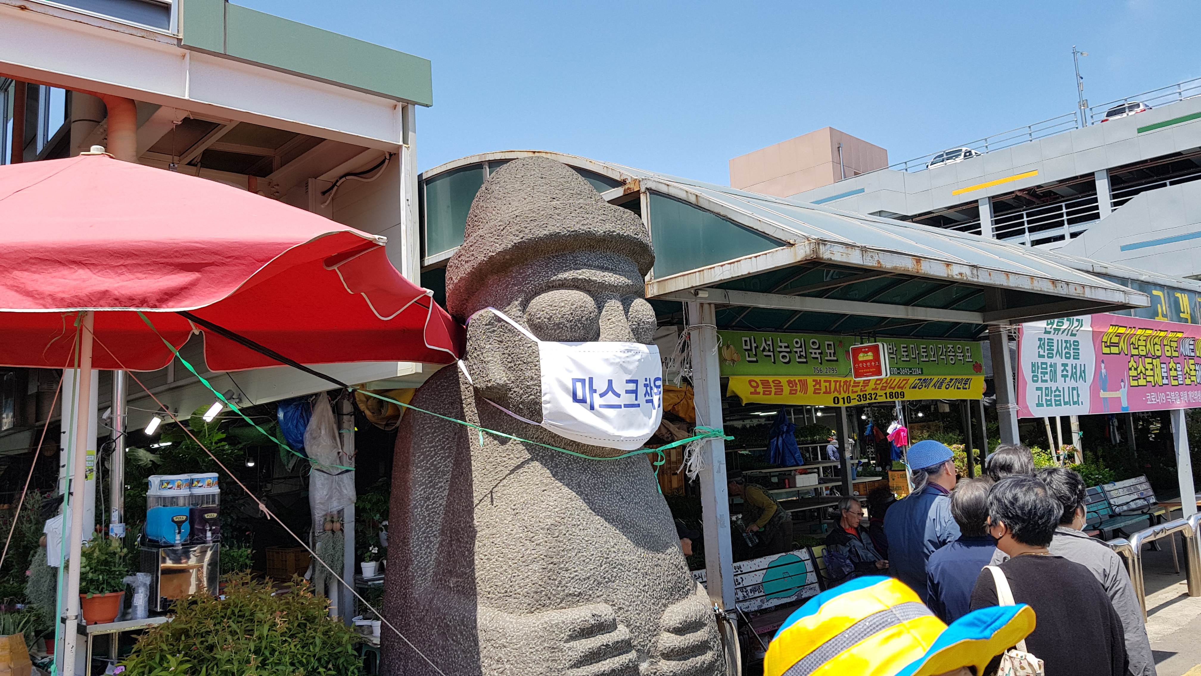 입구부터 들어갈려는 찰나!! 돌하르방이 마스크를 착용하고 있다. 굉장히 많은 사람들이 오고가는 곳이기 때문에 지금 마스크는 완전 필수인 것 같다. 모두를 위해 꼭 마스크 착용하고 구경하길.