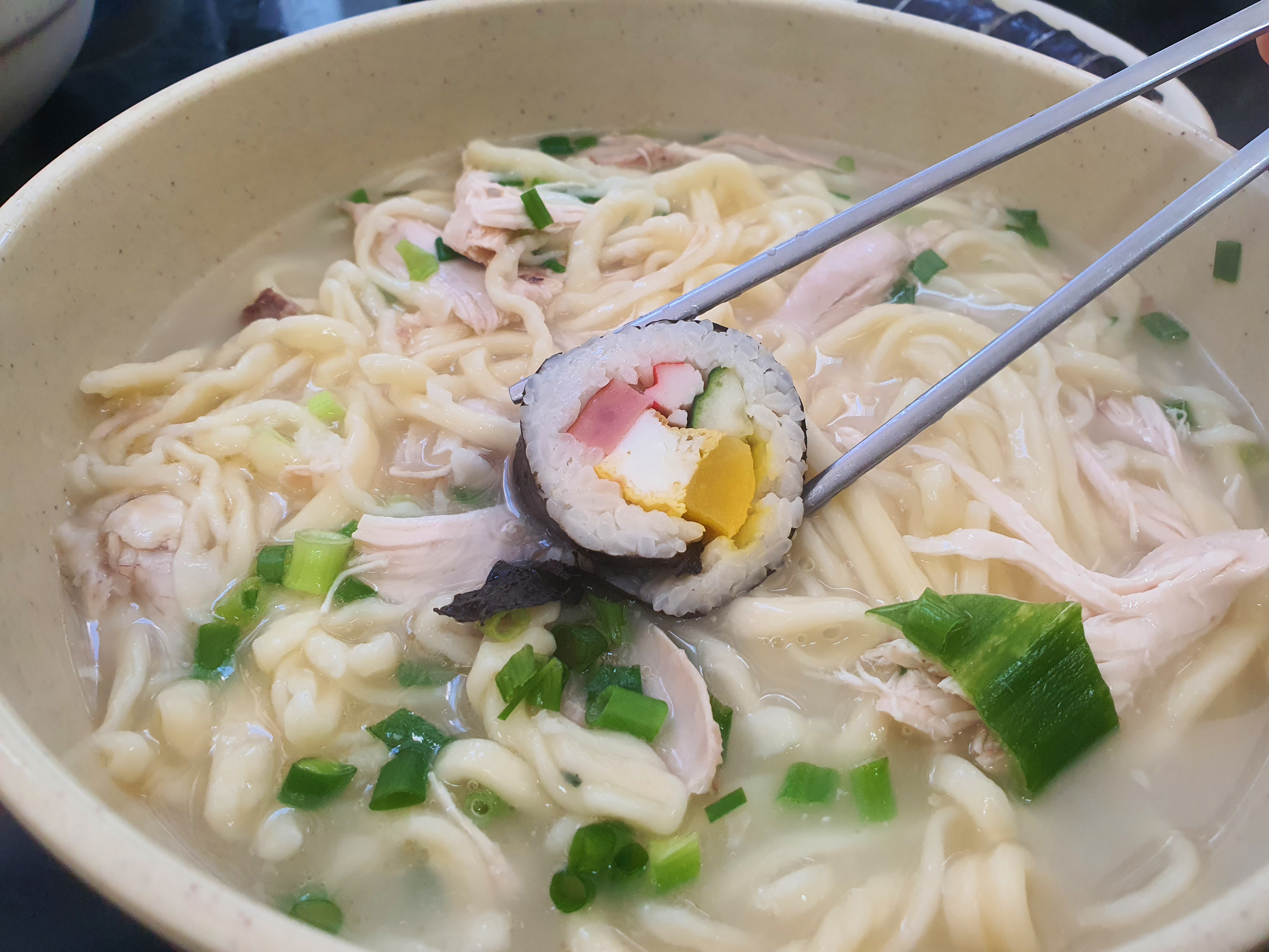닭칼국수만 시키면 아쉬우니깐 김밥도