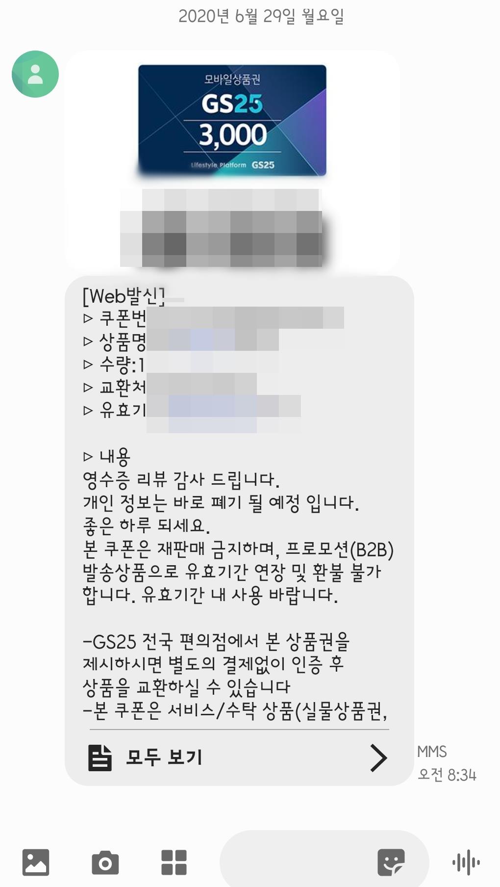 정말로 3천원 지에스 쿠폰이 날라왔다 ㅋㅋ