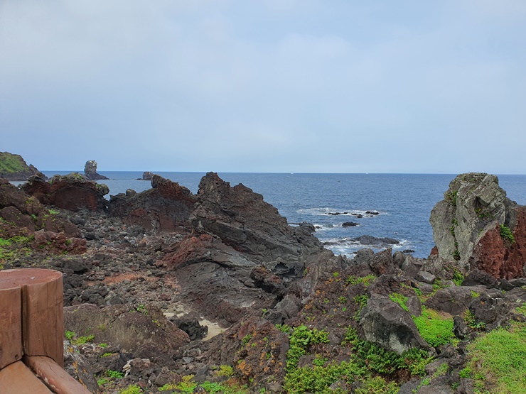 이곳은 다른 해안과는 달리 붉은 화산재 송이가 덮여 있고