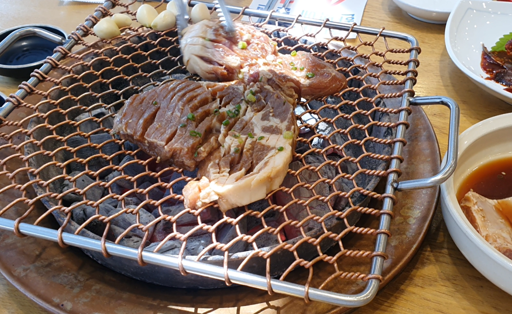 숯불에 구워서 고기 맛은 참 좋다.