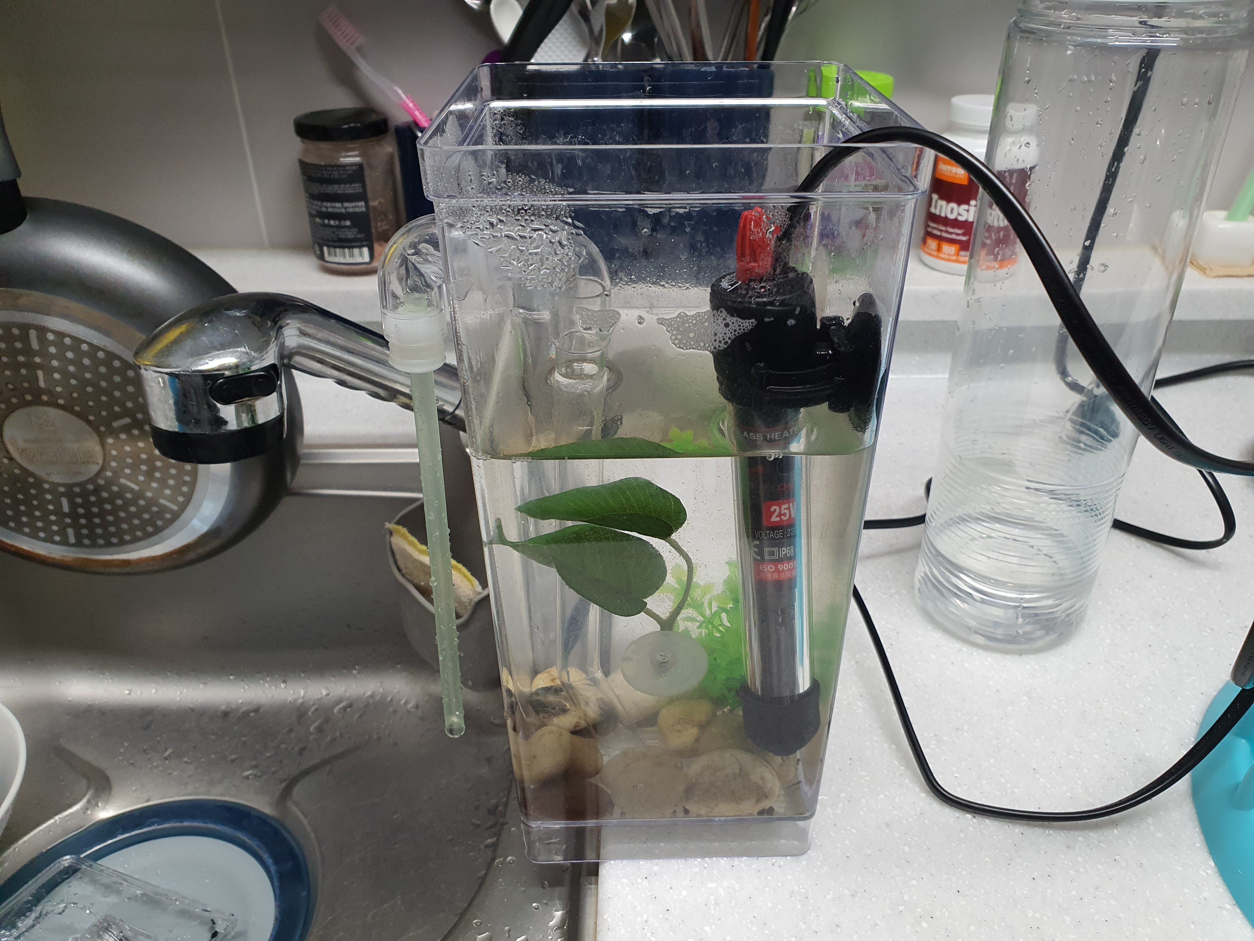 항상 둥근 어항을 사용해서 미얀한 감이 있었는데, 최근에 이렇게 베타 전용 어항으로 바꿀 수 있어 참 다행이다.