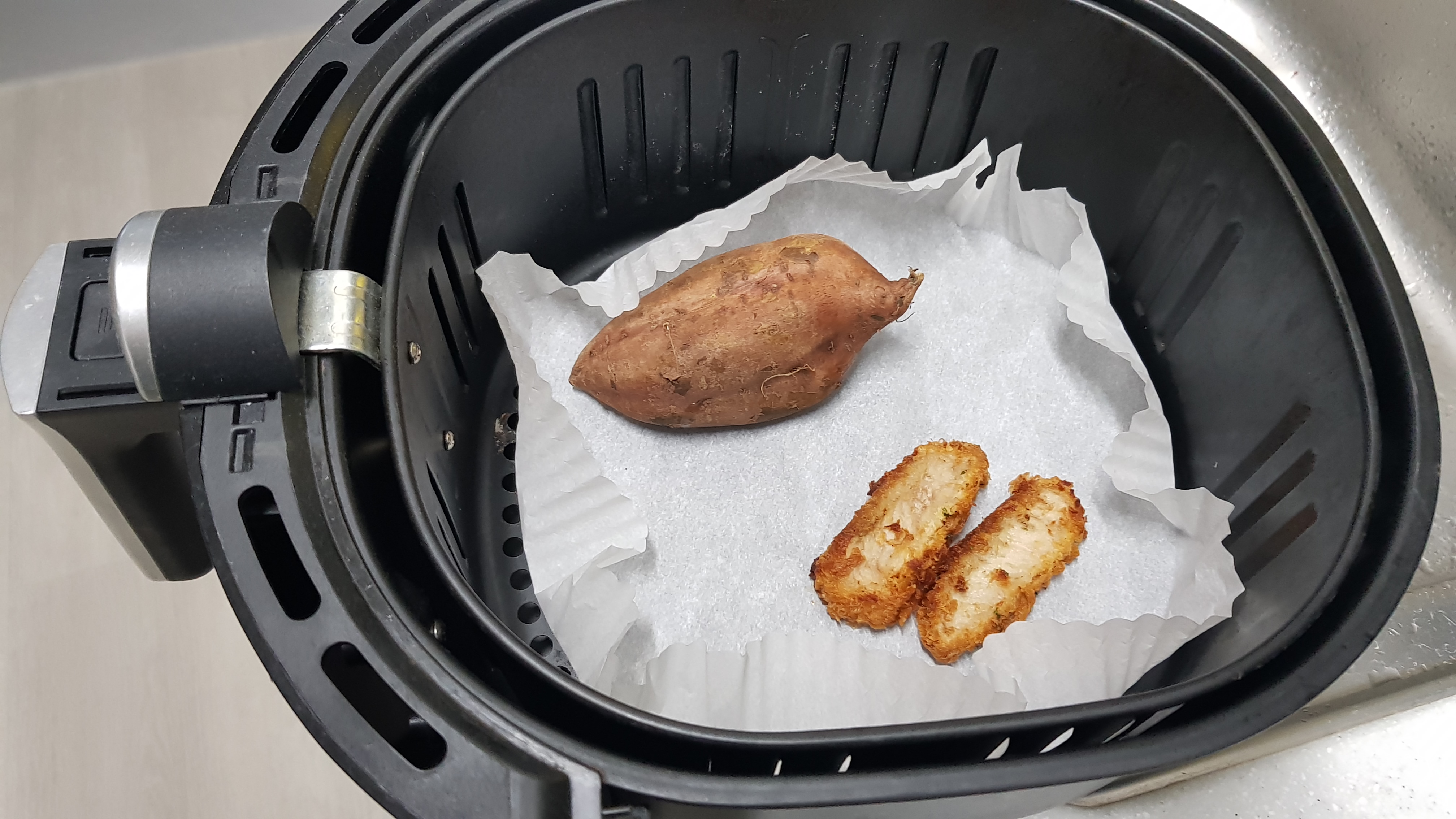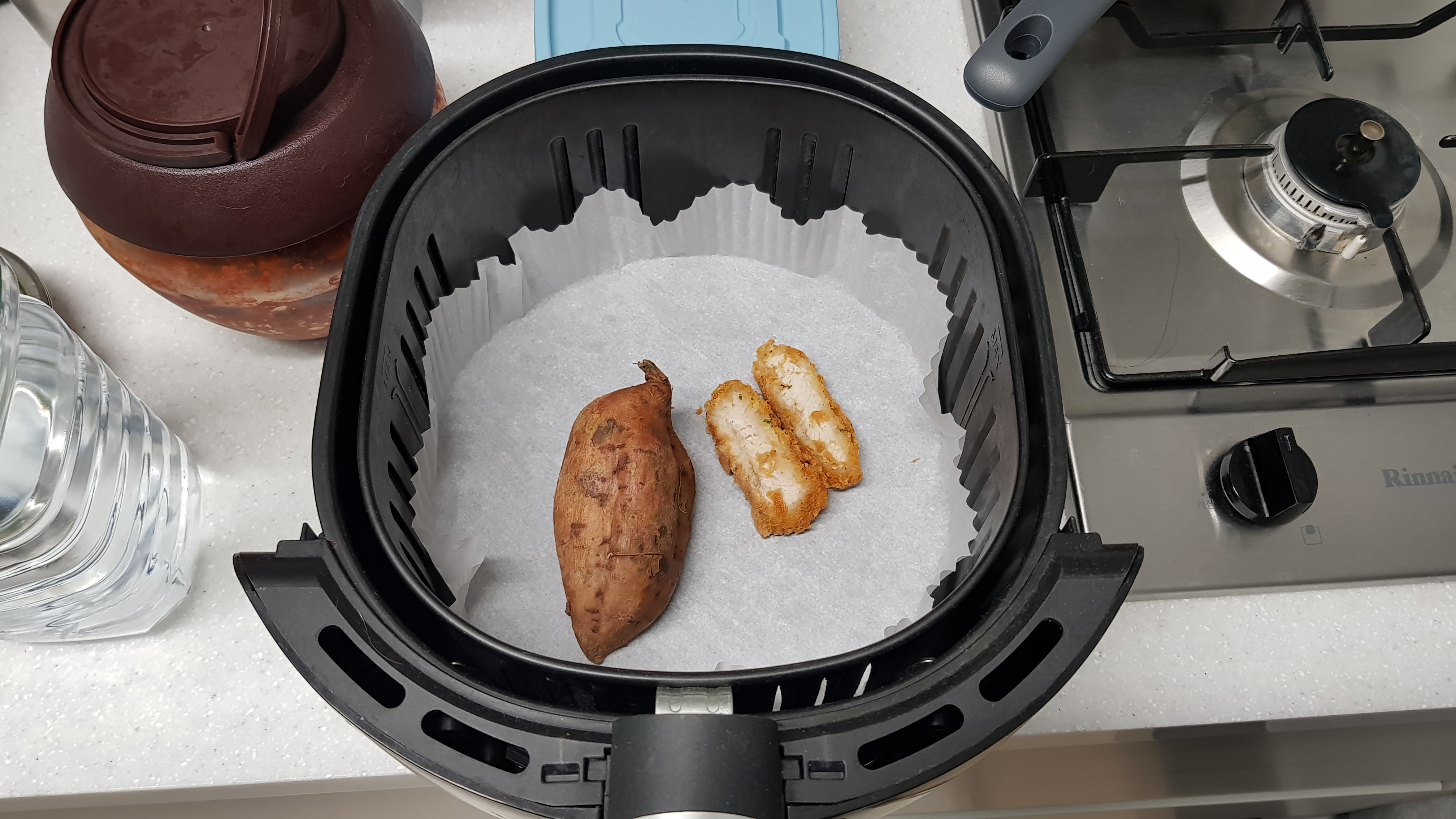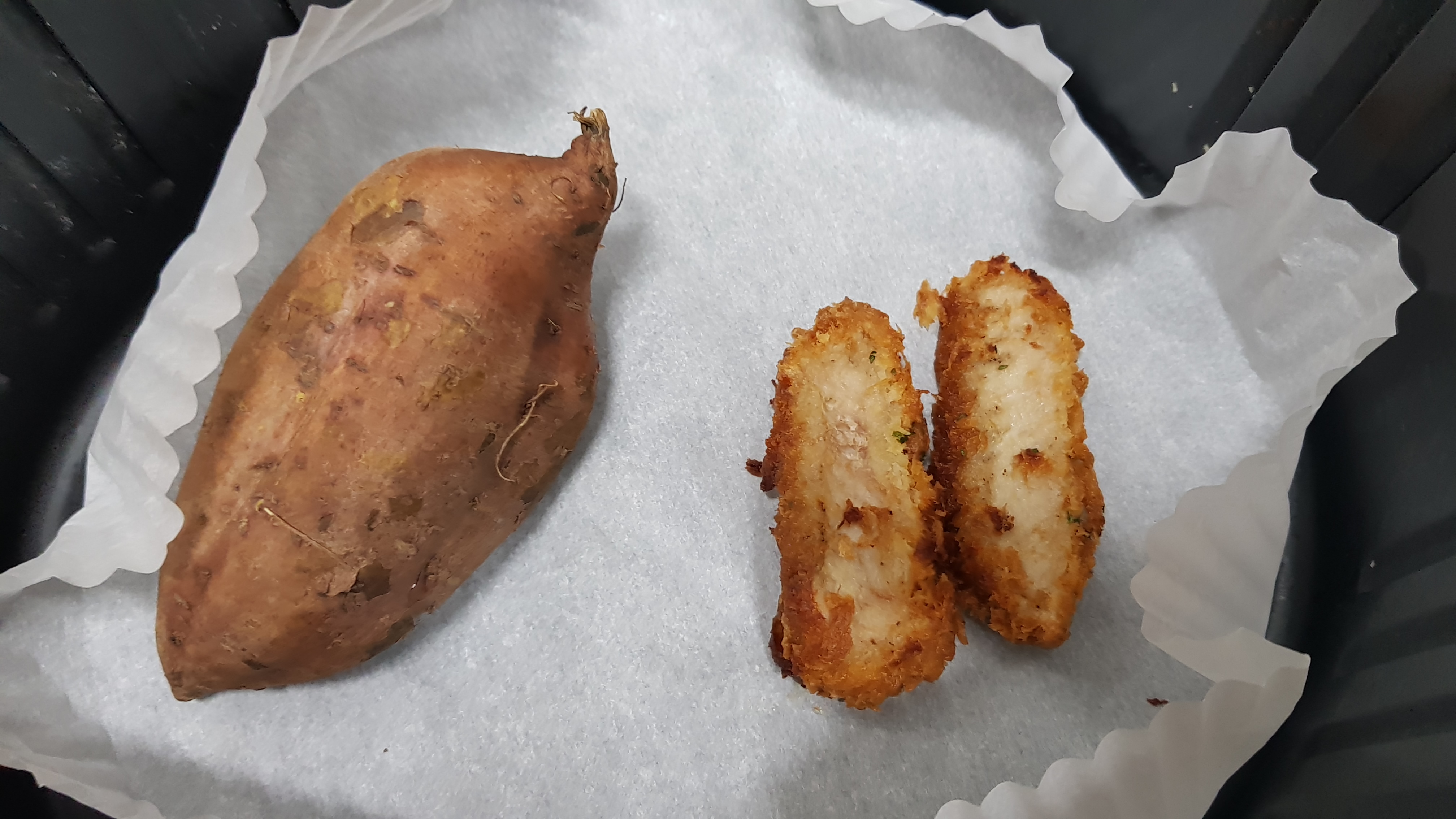 돈까스와 고구마를 에어프라이어에 다시 소생시켜본다.