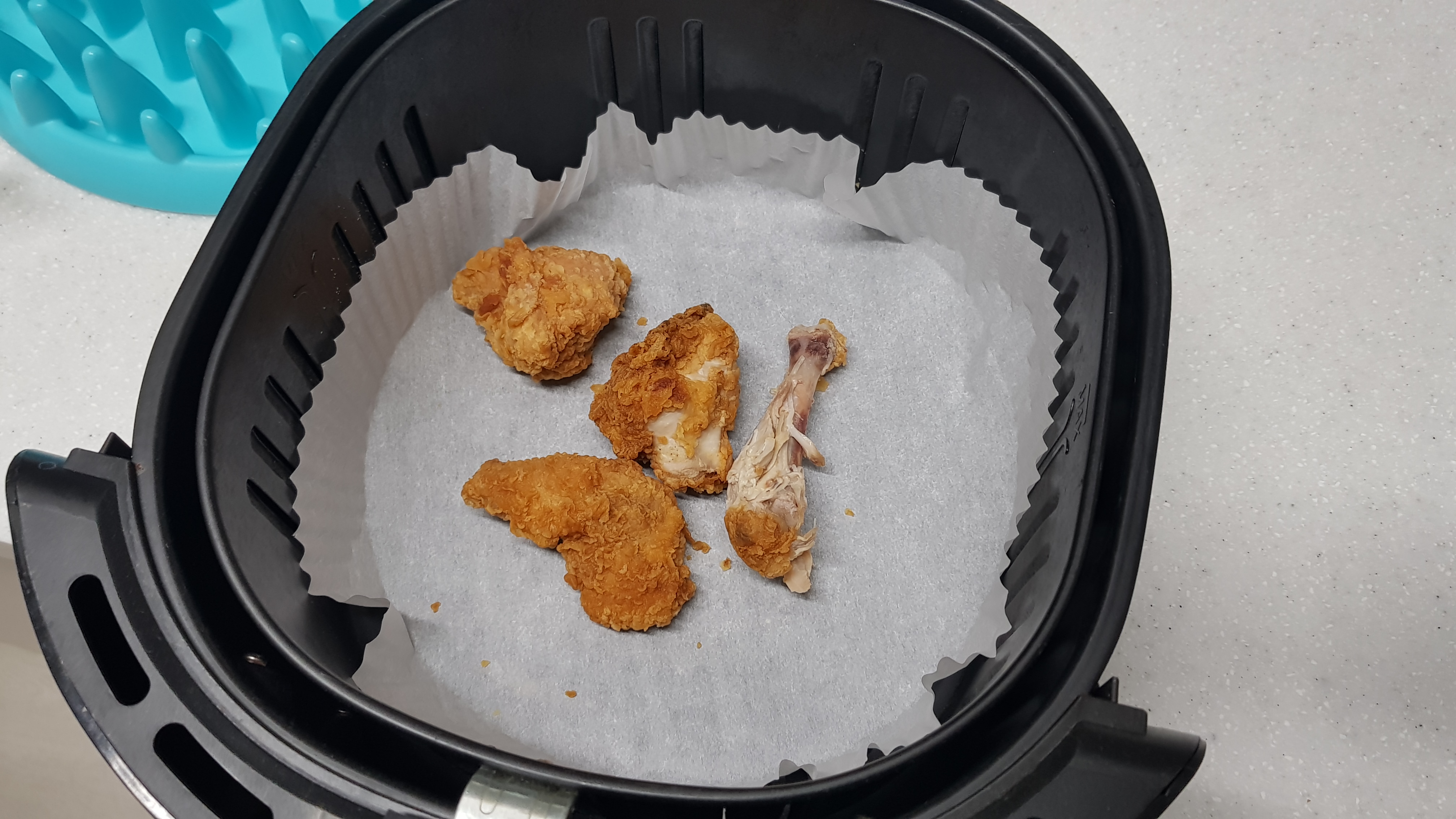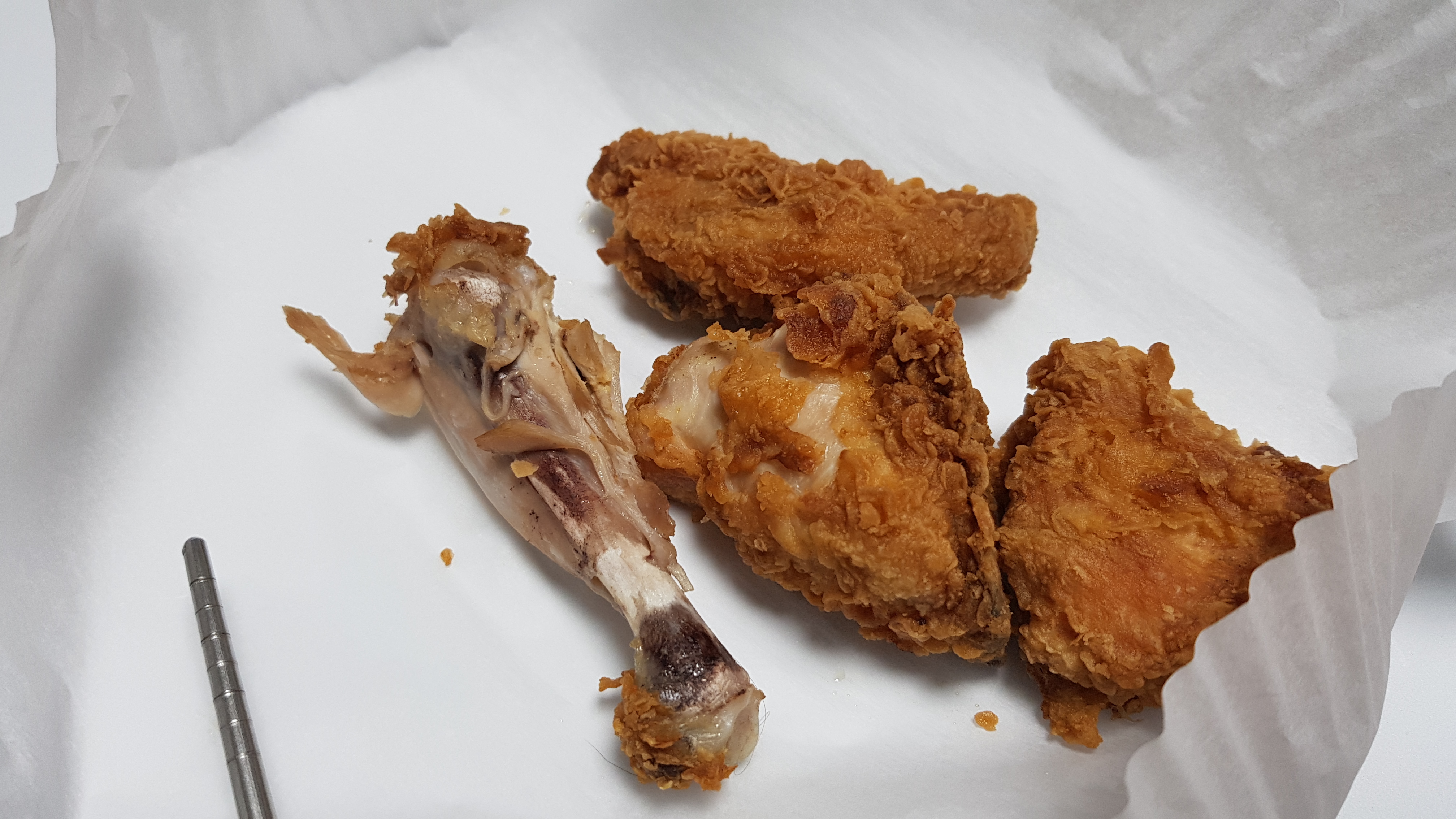 너무 현실적으로 먹다남은 치킨조각들