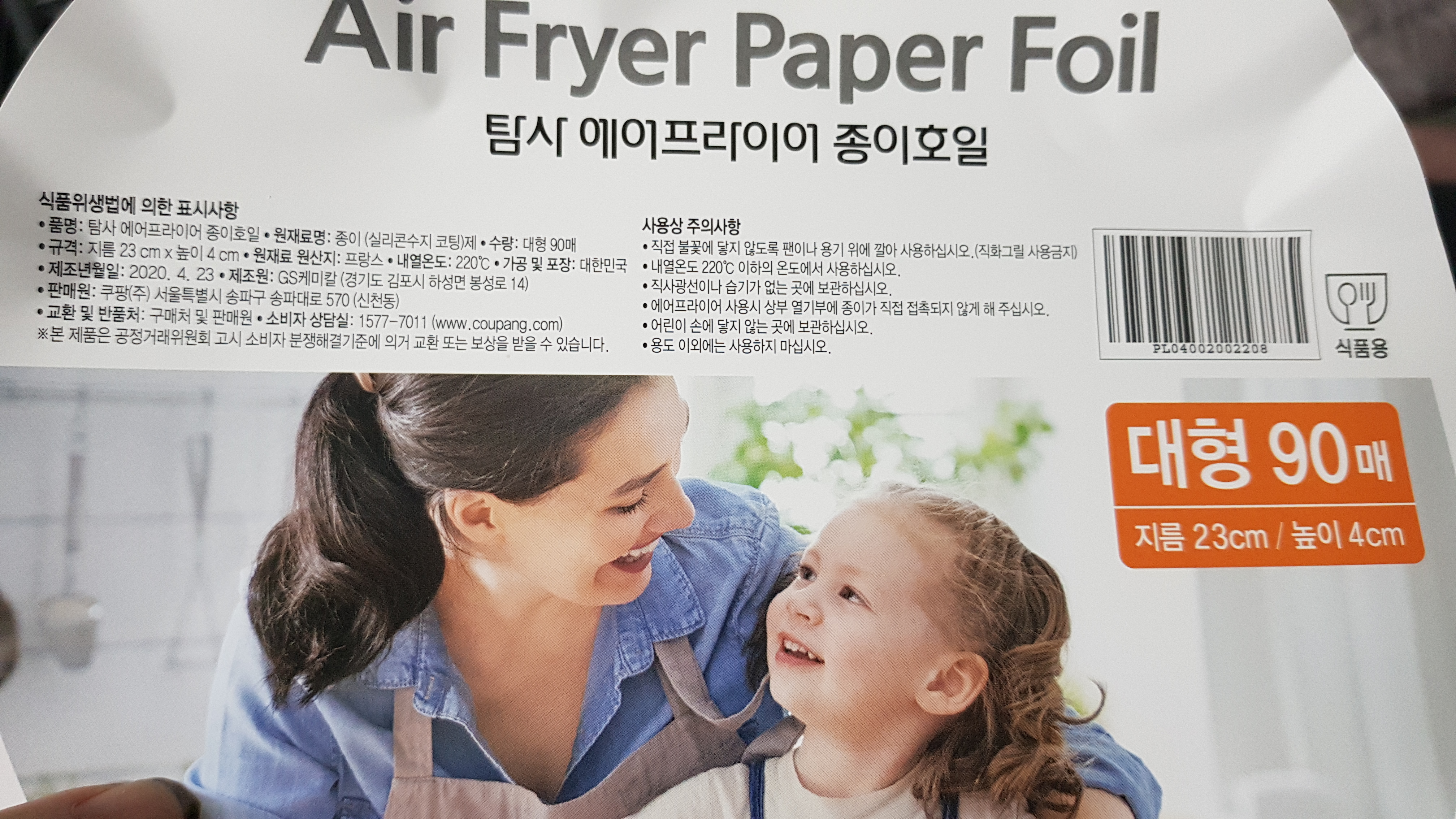 탐사 에어프라이어 종이호일 이렇게 쓰여있다.