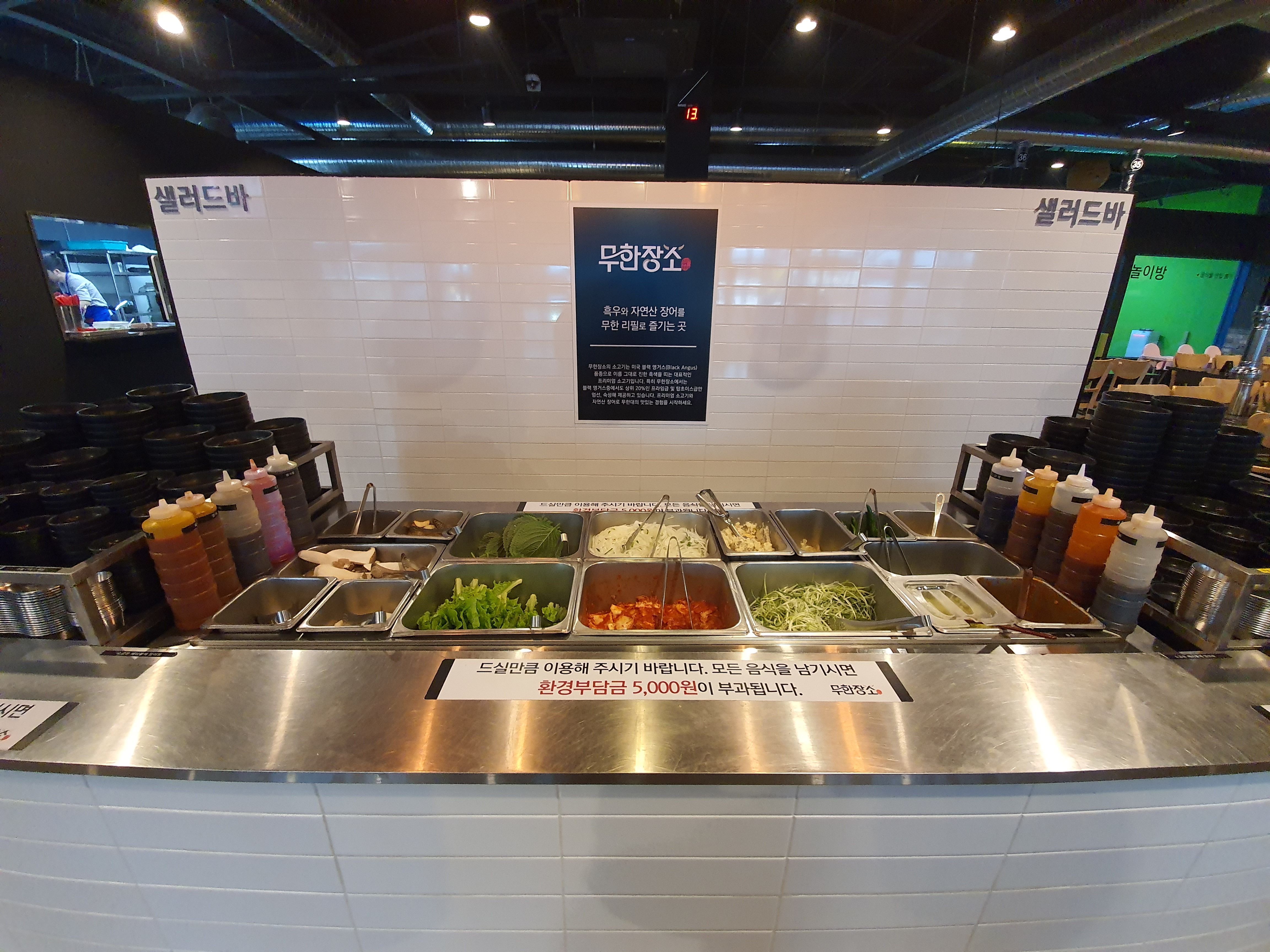 야채와 반찬 샐러드바를 이용할 수 있는데
