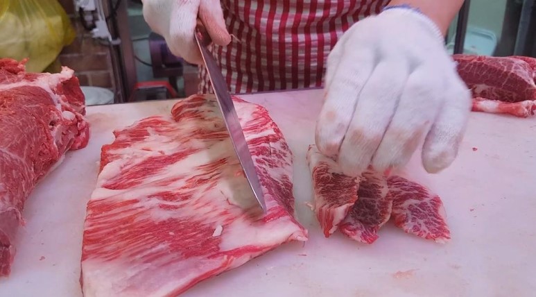 원래는 간을 먹을 수 있으면 간도 주는데 나와 친구는 취향이 아니라서, 정육사장님이 차돌을 조금 더 주셨다.