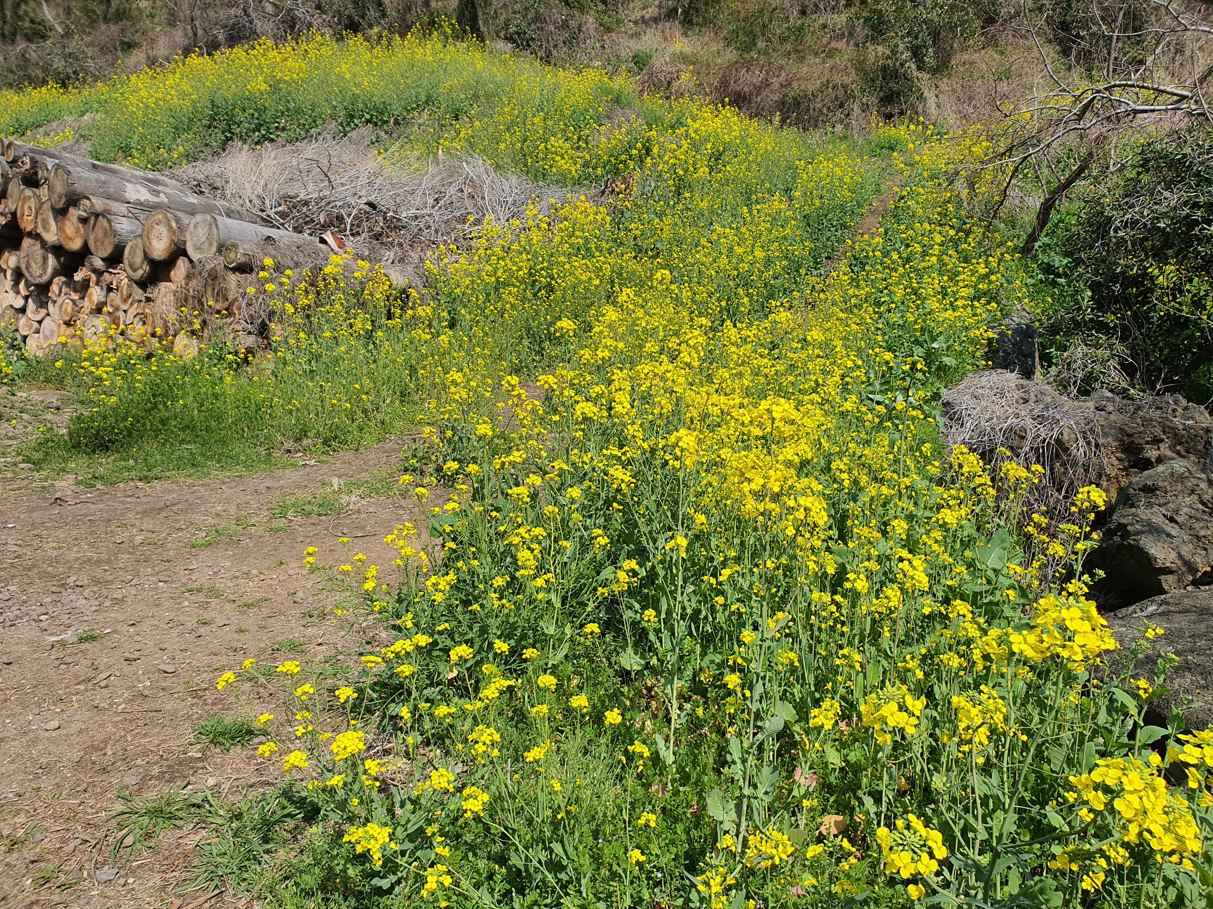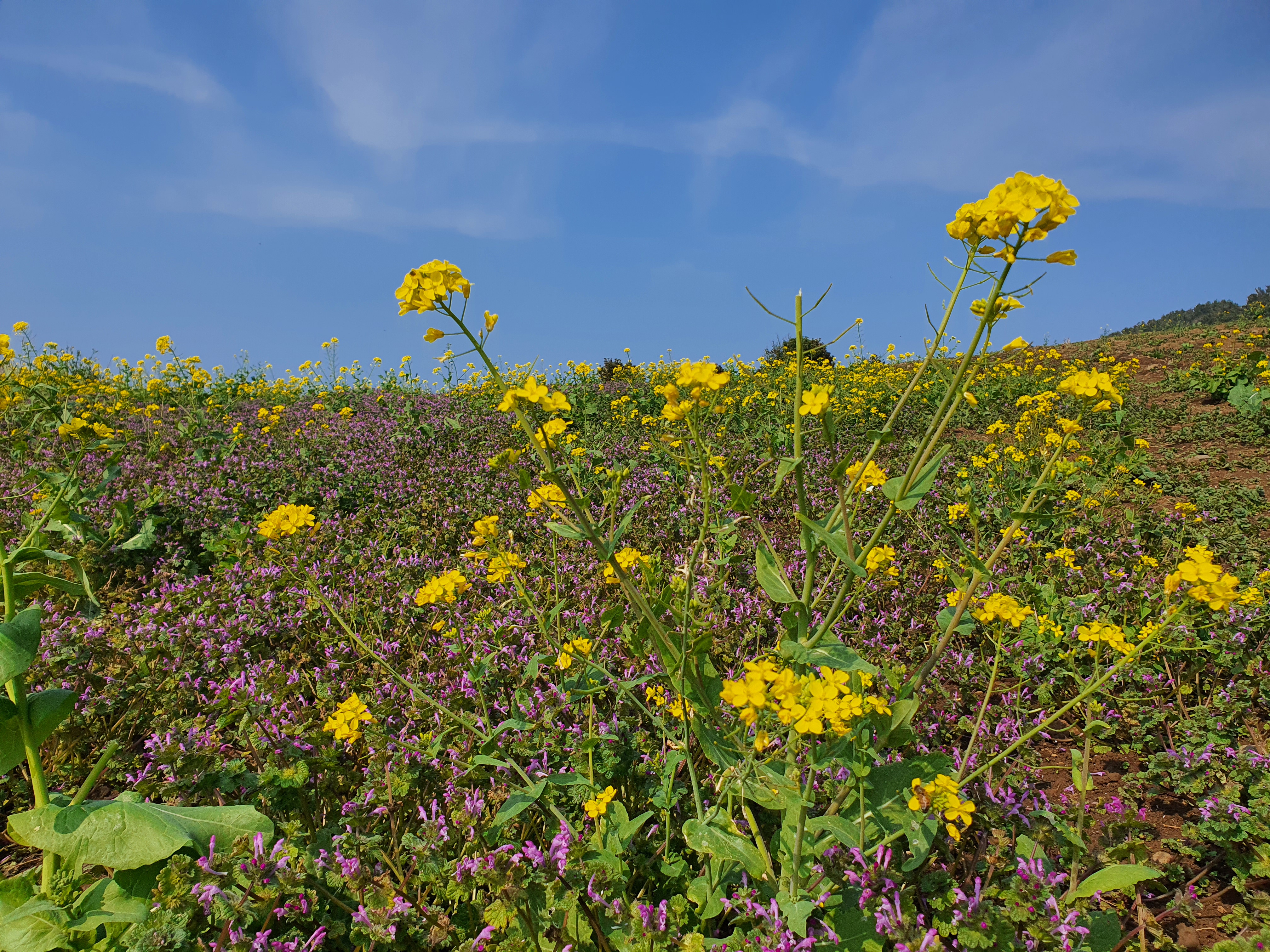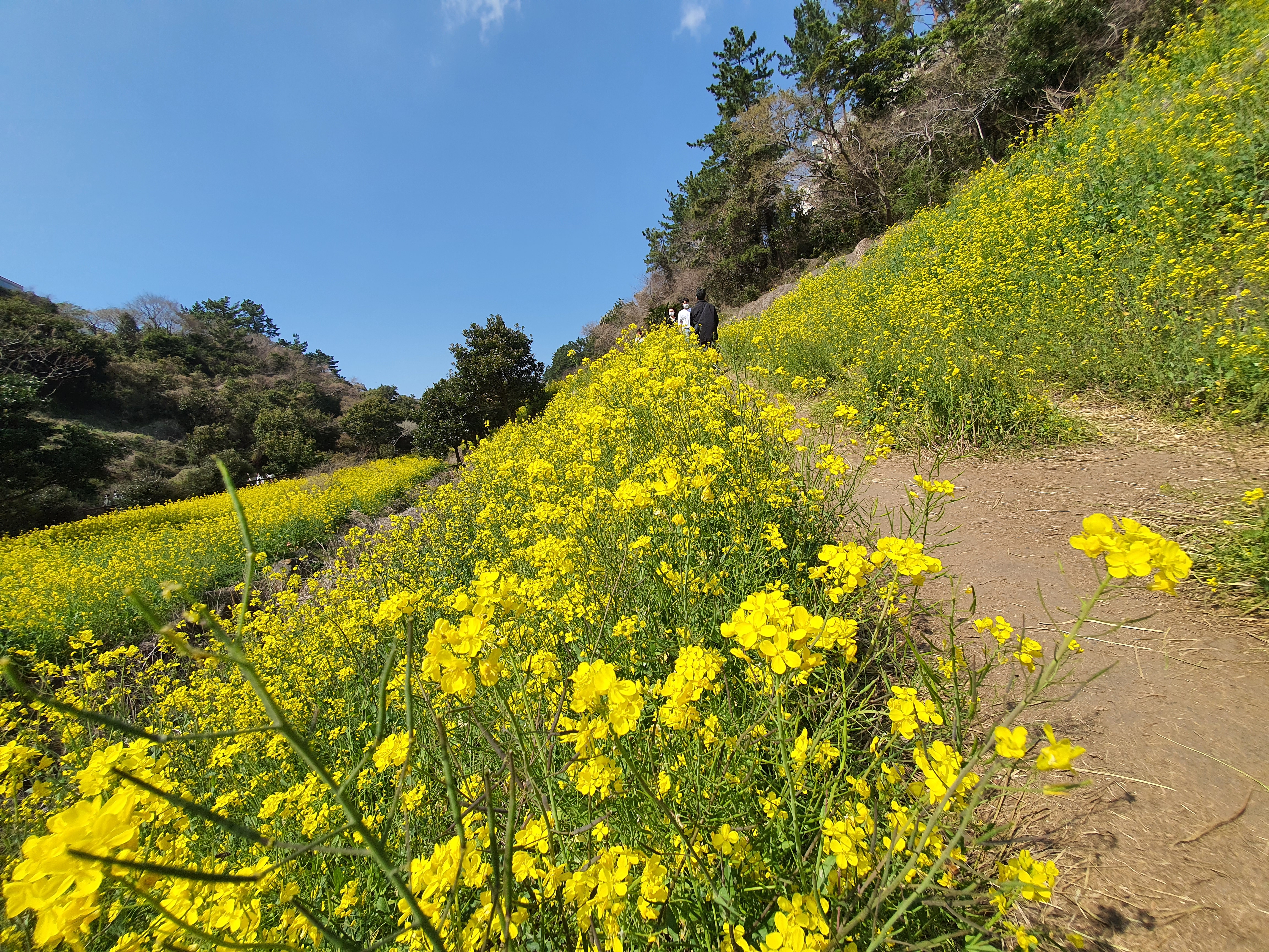 작년에는 사람들의 방문을 제한하기 위하여 유채밭을 모두 갈아 엎어버렸는데, 올해는 유채꽃을 구경할 수 있을 것 같다.