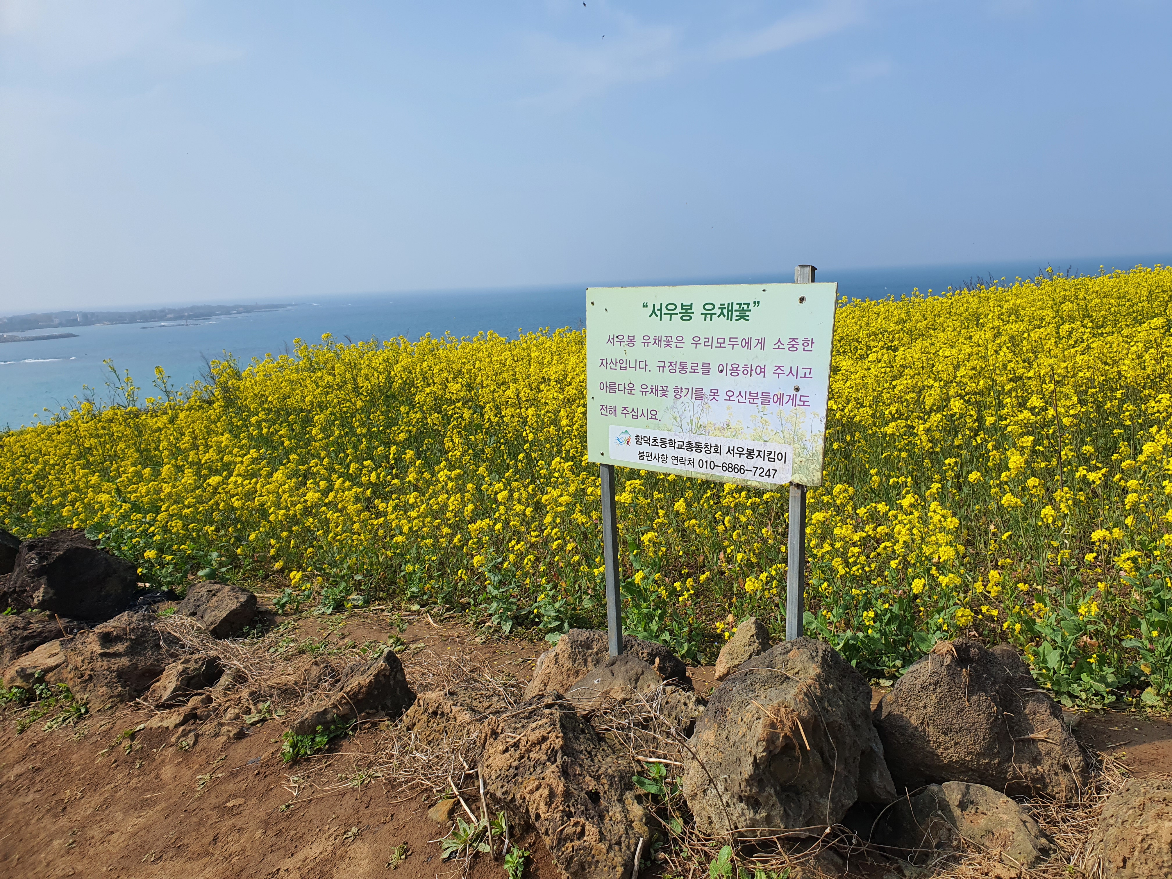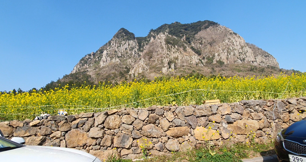 서귀포가 가장 먼저 유채가 피어난다면 그 다음은 성산일출봉 근처라고 할 수 있다.