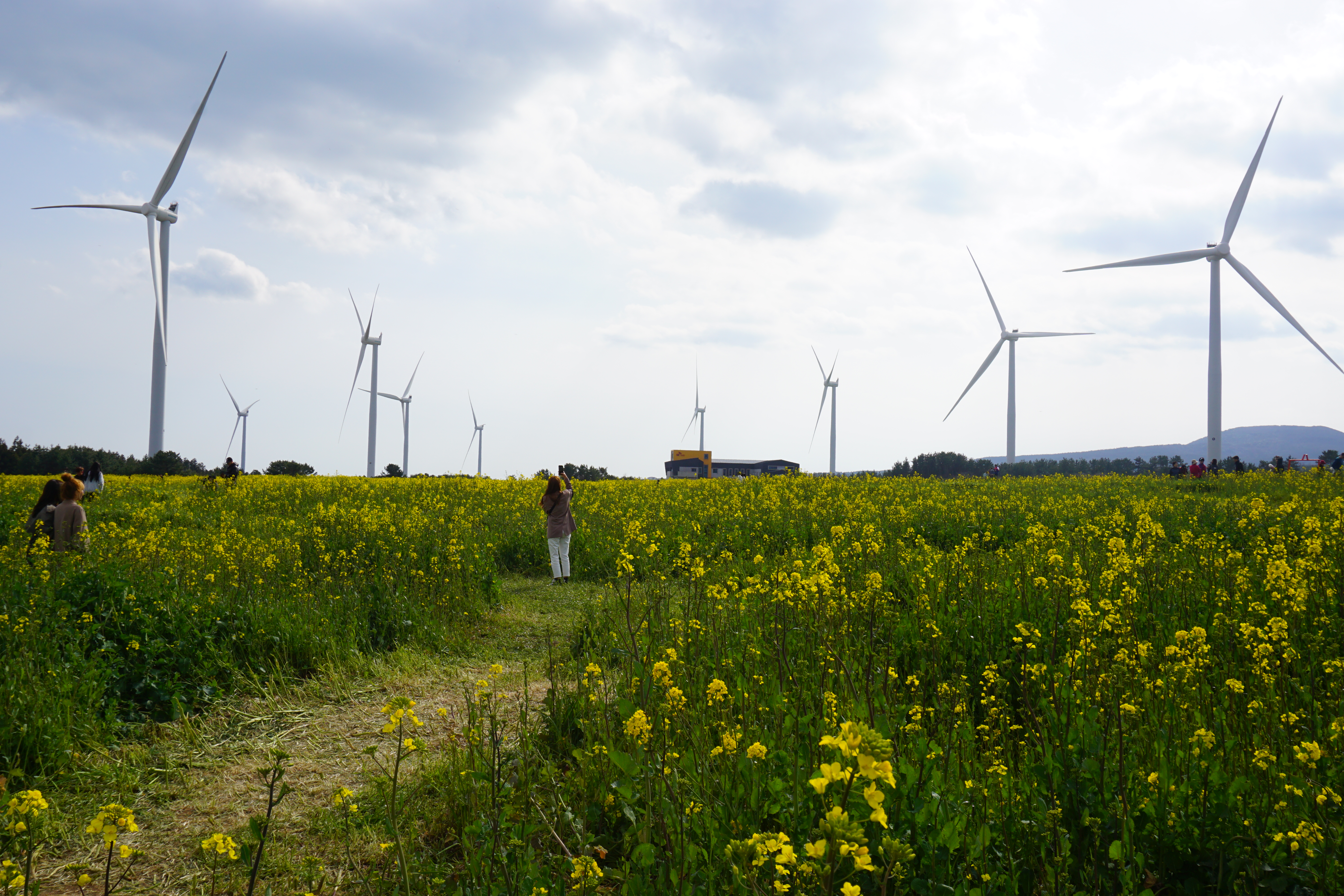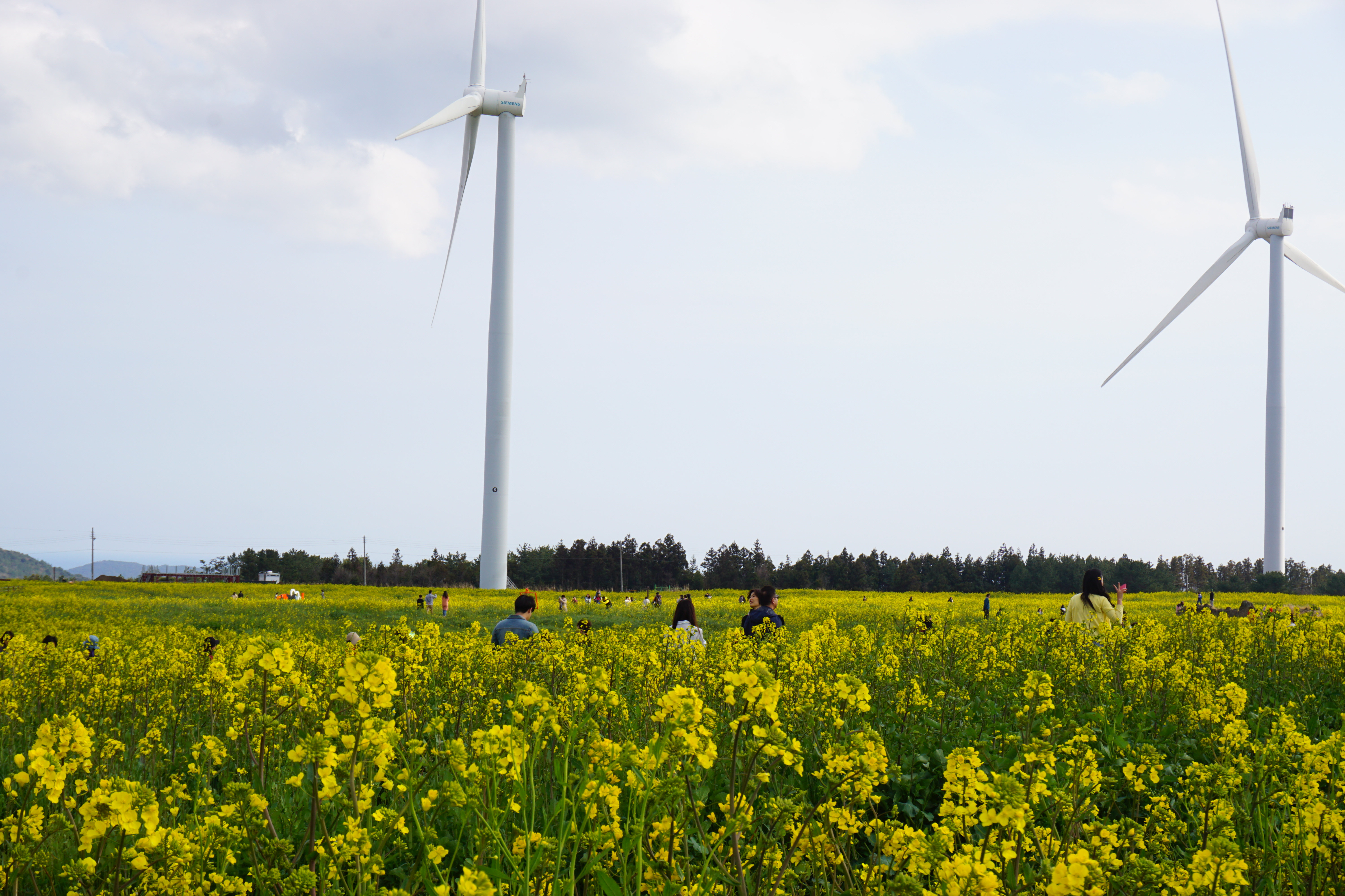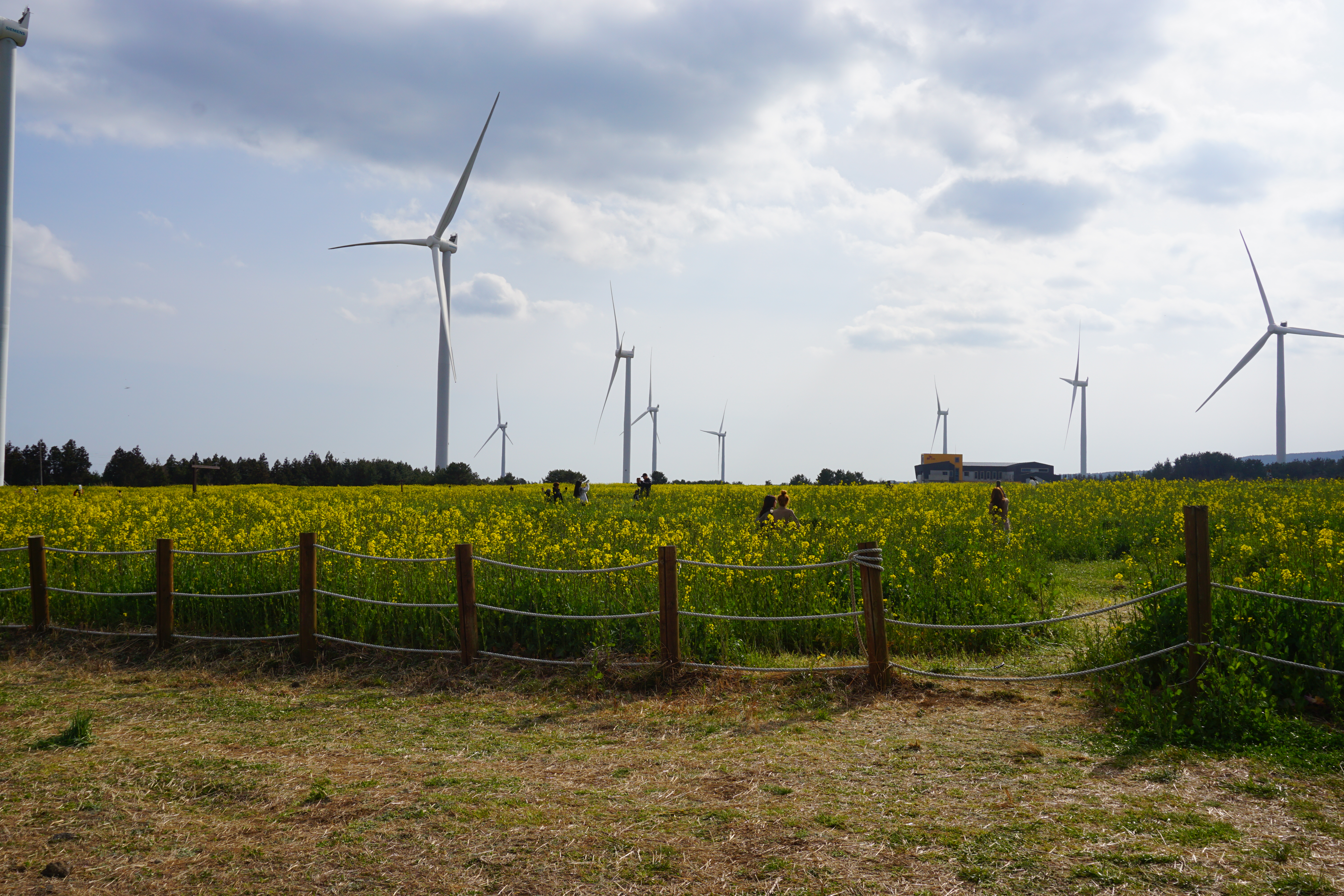 가시리 유채밭에는 풍력발전기가 있어 건강에는 별로 좋지 않지만 유채꽃과 어우러져 장관을 이룬다.