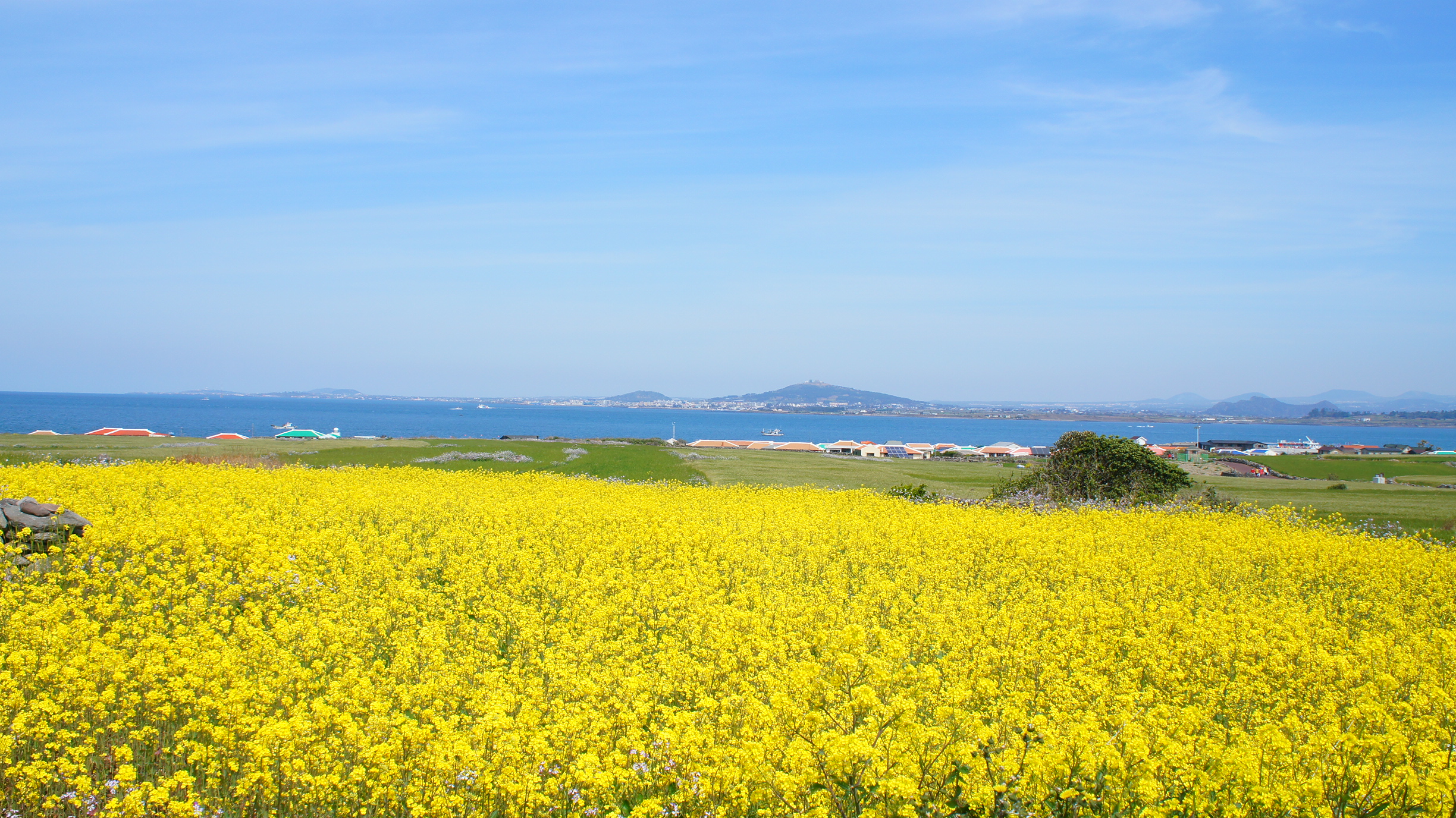 작은 섬에도 이렇게 싱그럽고 노란 유채꽃이 한가득 피어난다.
