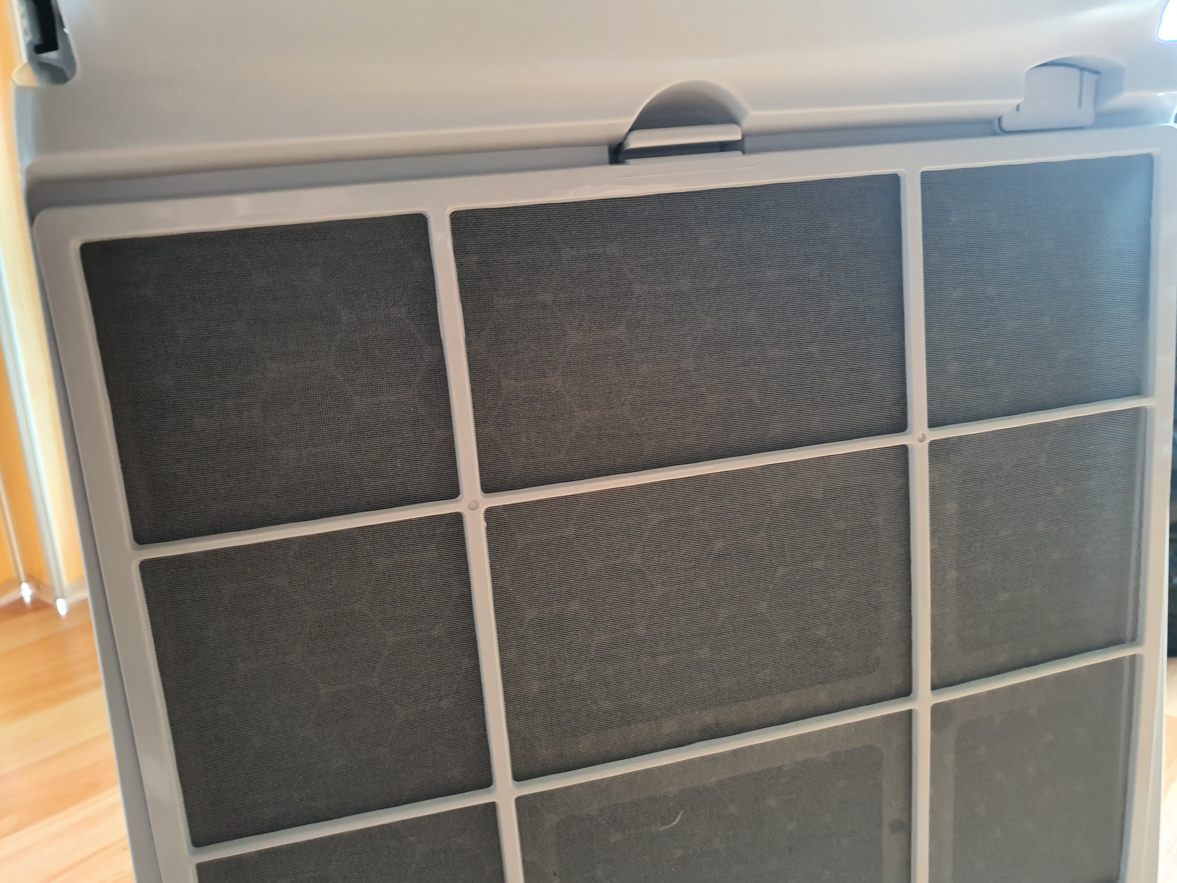 공기청정기의 뒤쪽 부분을 보면 필터를 갈 수 있는 부분이 있다. 삼성 공기청정기 블르스카이의 필터는 5중으로 되어있다고한다.