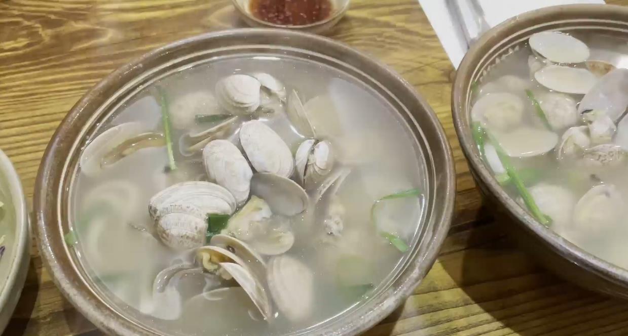 엄청나게 큰 그릇에 바지락이 가든 들어간 바지락 칼국수는 국물이 진하면서도 매우 담백했다.