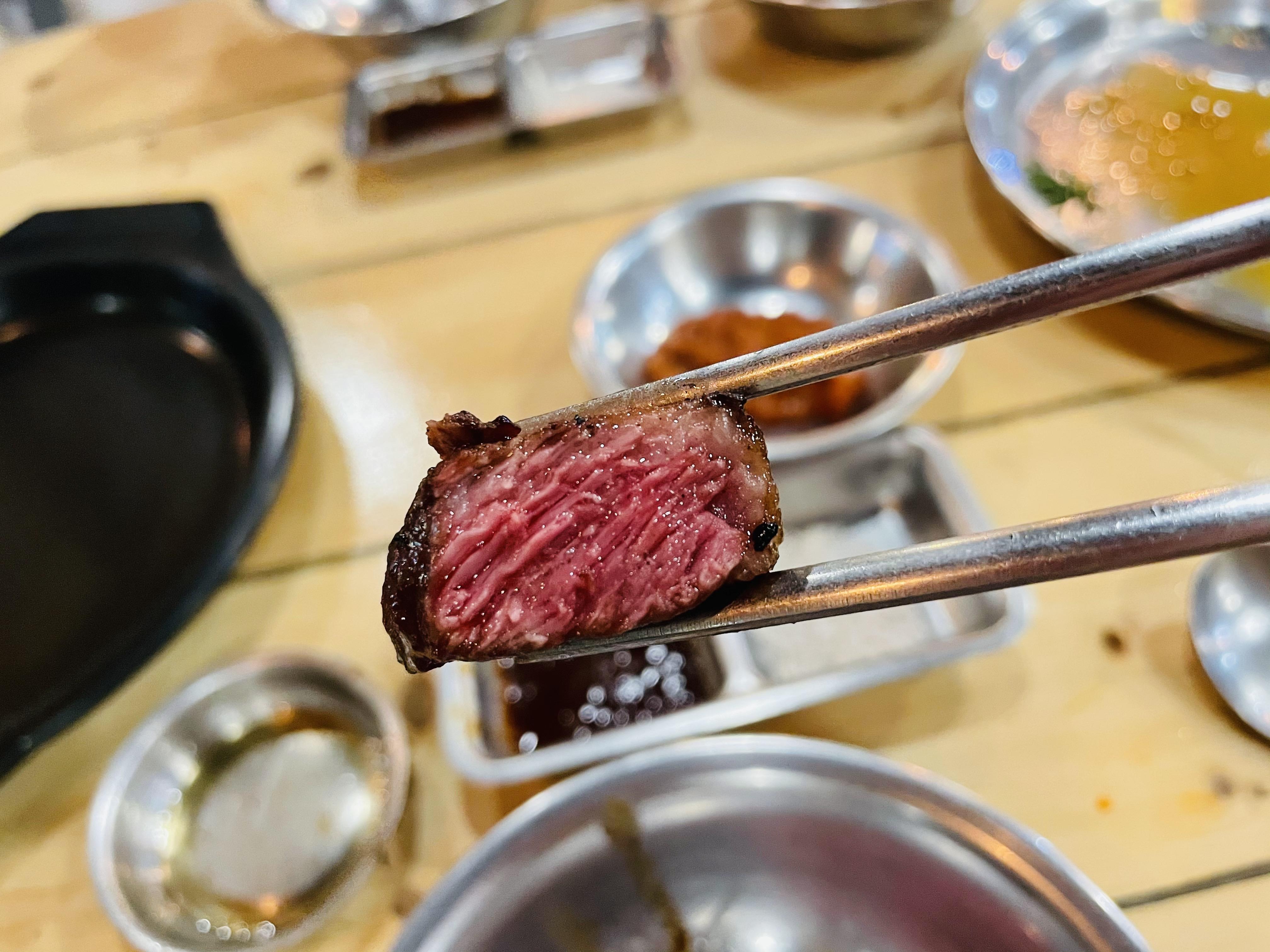소고기의 마블링이 잘 퍼져 있어서 정말 부드럽고 고소하게 먹을 수 있었다.
