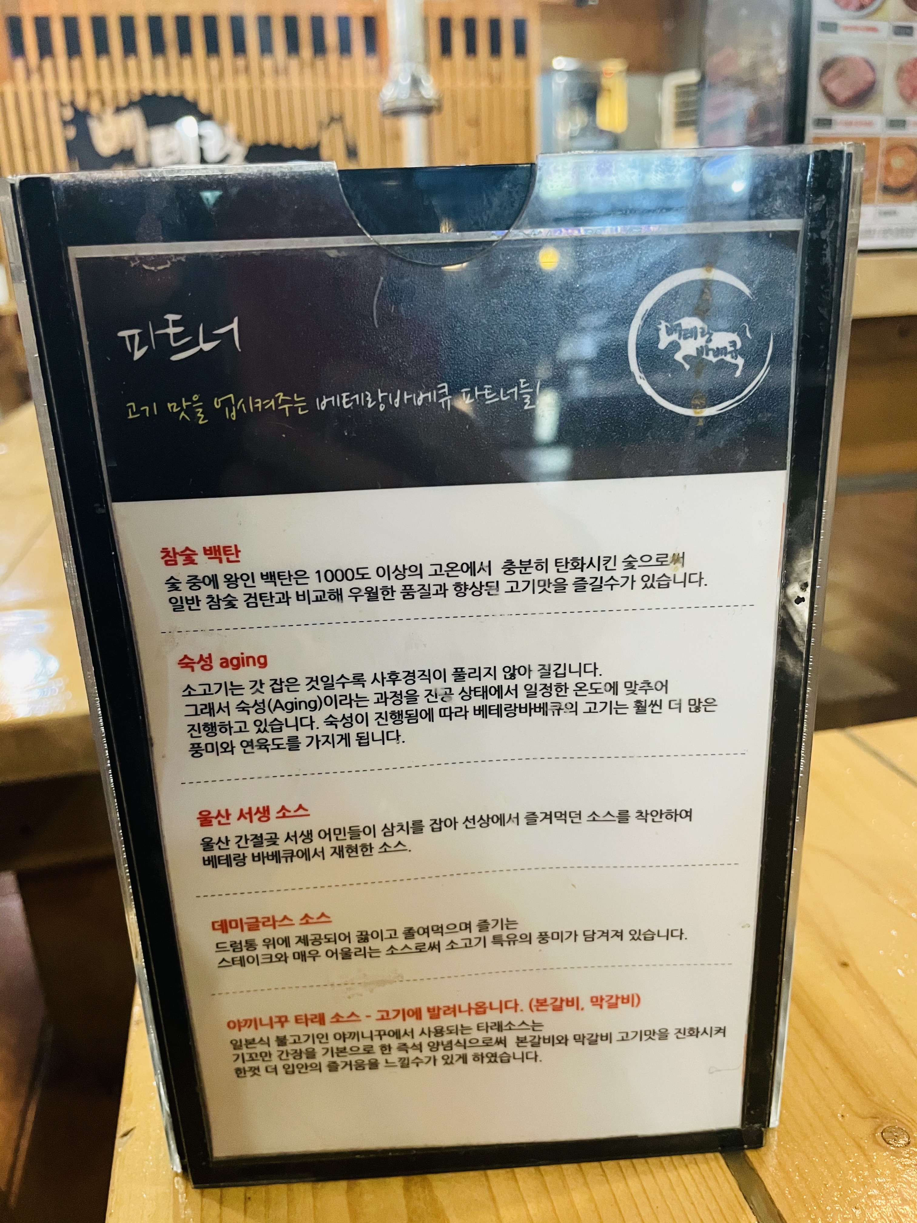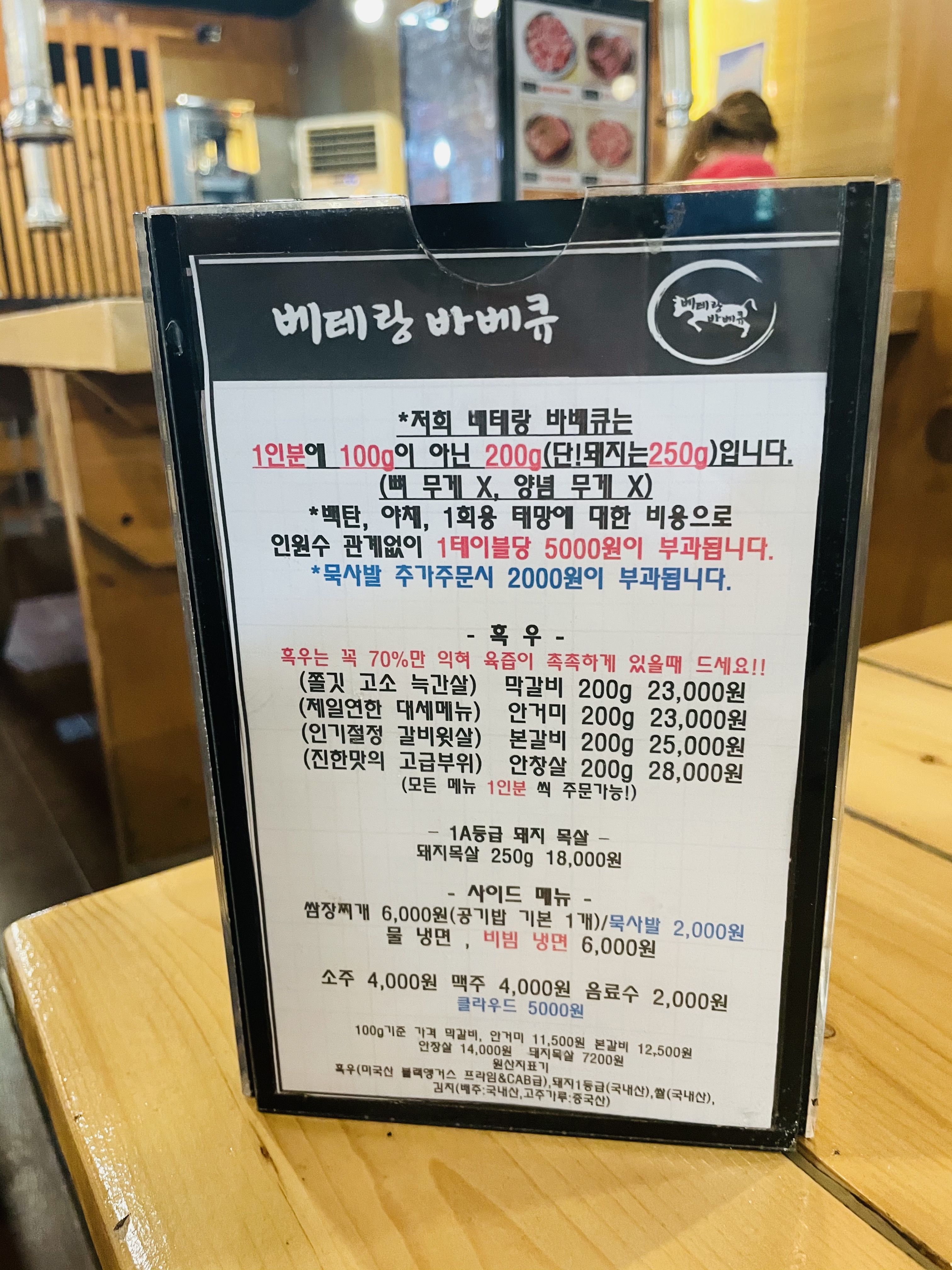 울산 맛집 베테랑 바베큐의 메뉴판 참고!