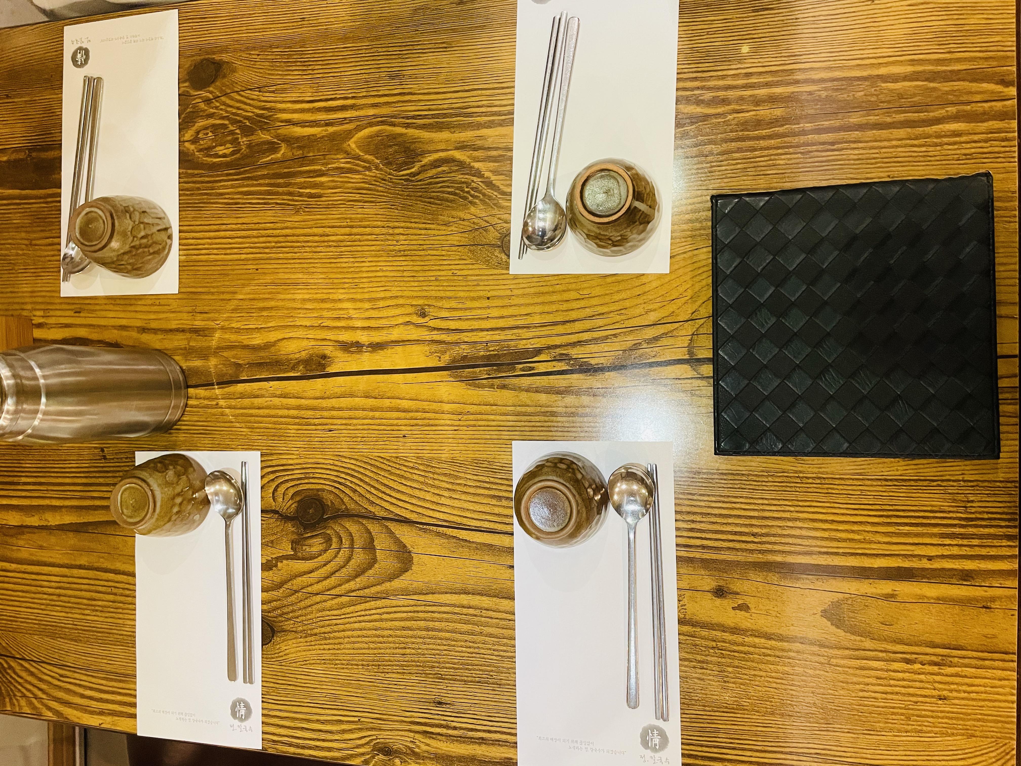 테이블 기본 셋팅을 해주는데, 묵사발, 김치, 야채, 무쌈과 기본 소스 등등 소고기와 잘 어울리는 한상치 차려졌다.