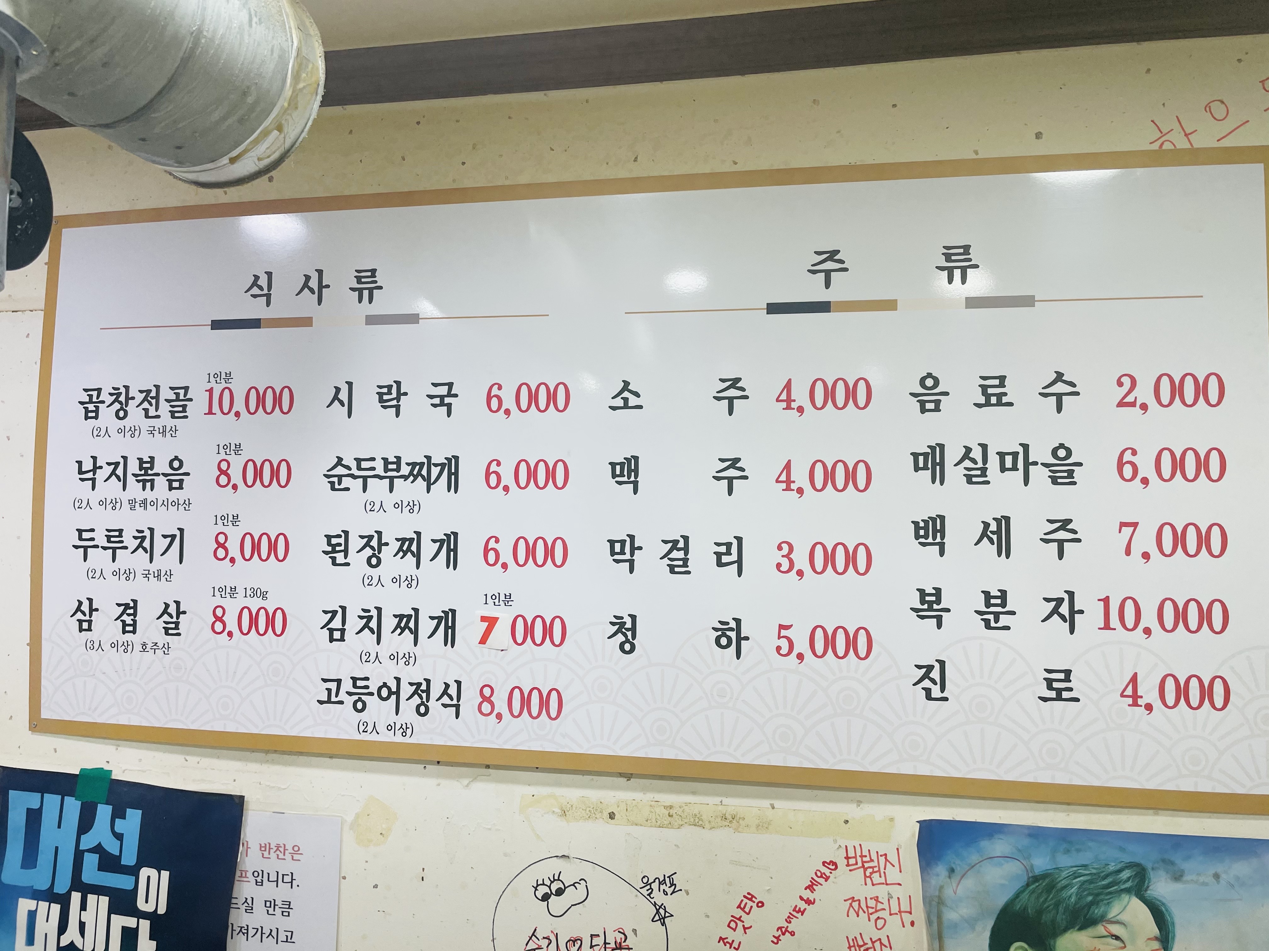 간판은 24시 해장국이지만 곱창전골, 두루치기, 다양한 찌개 등등 여러가지 메뉴가 있는 인기 좋은곳이다.