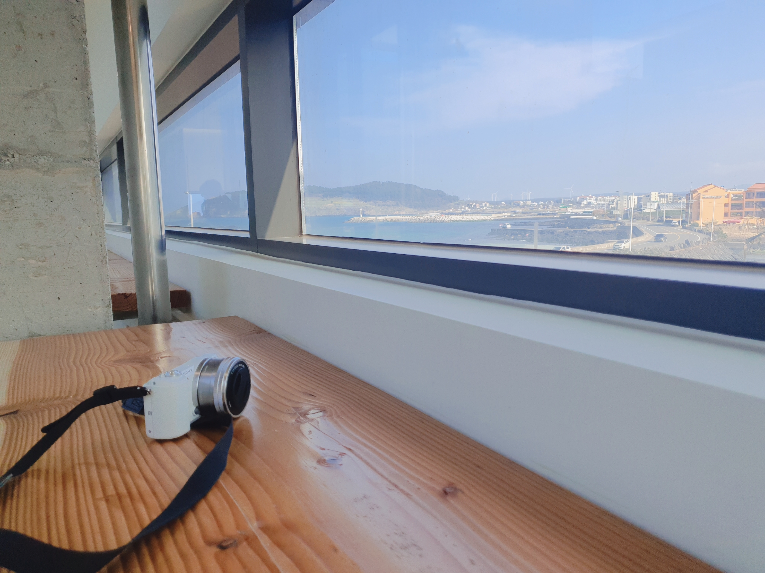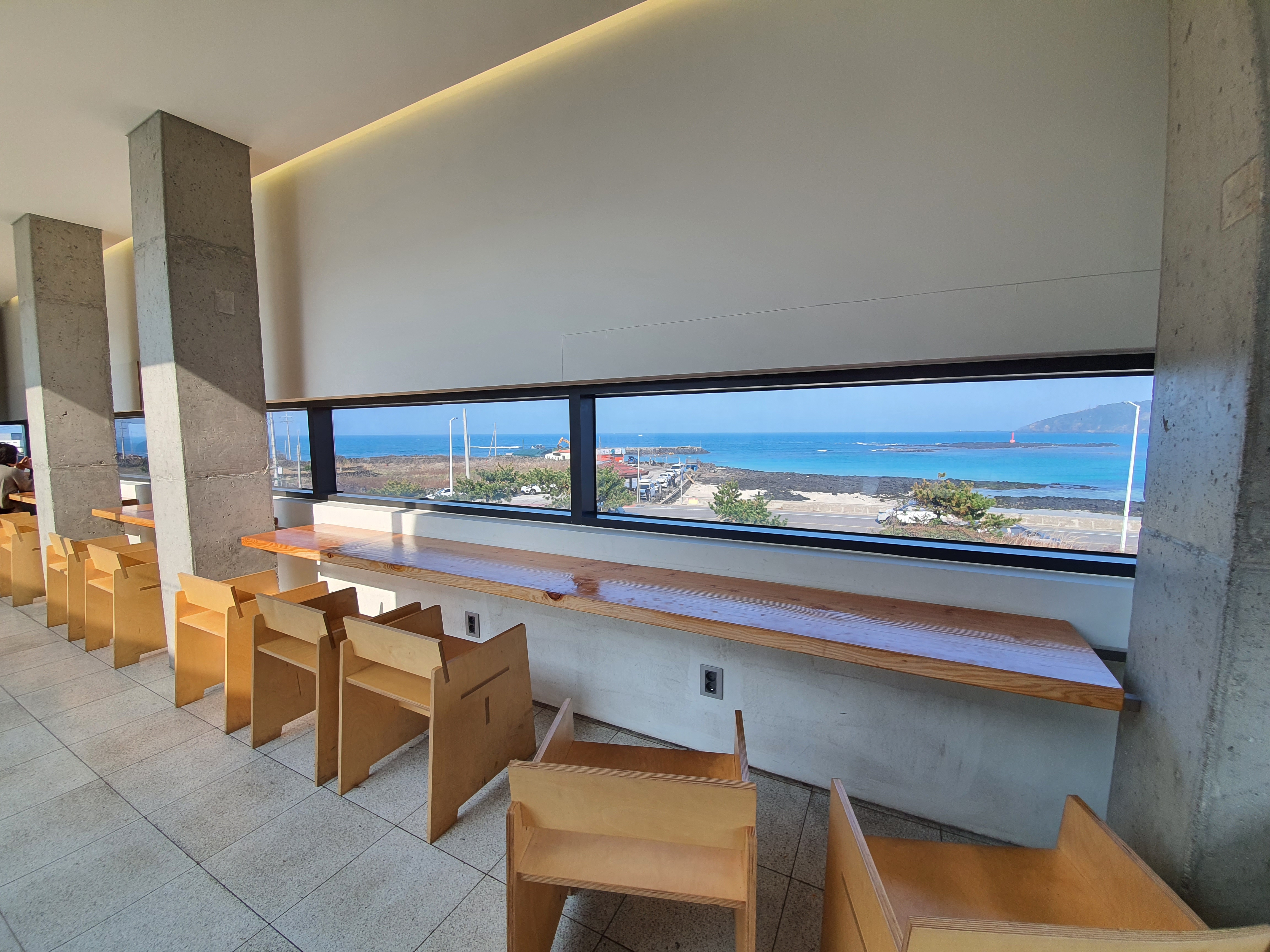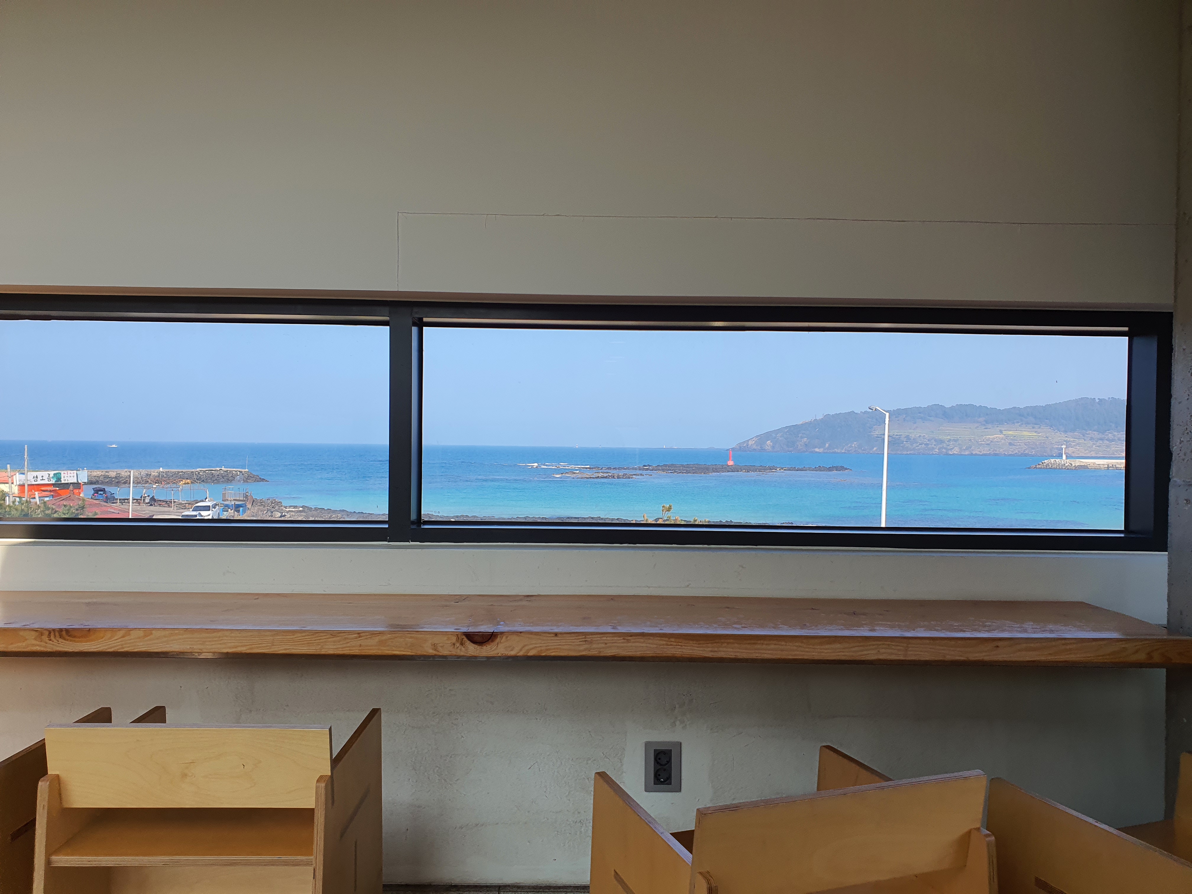 2층으로 올라오면 가장 인기 좋은 명당이 있는데, 바로 이렇게 바다가 보이는 해안도로 자리이다.