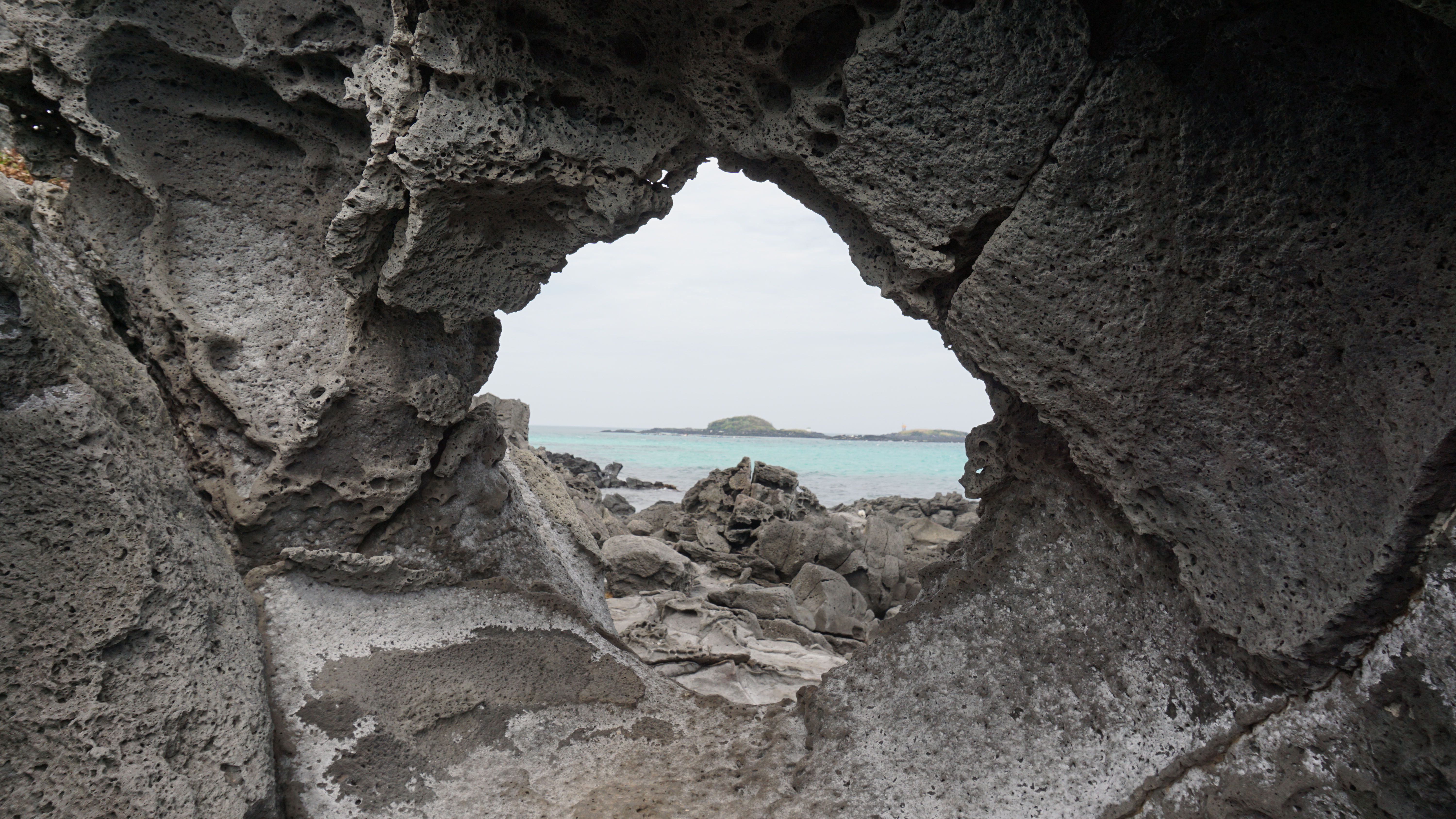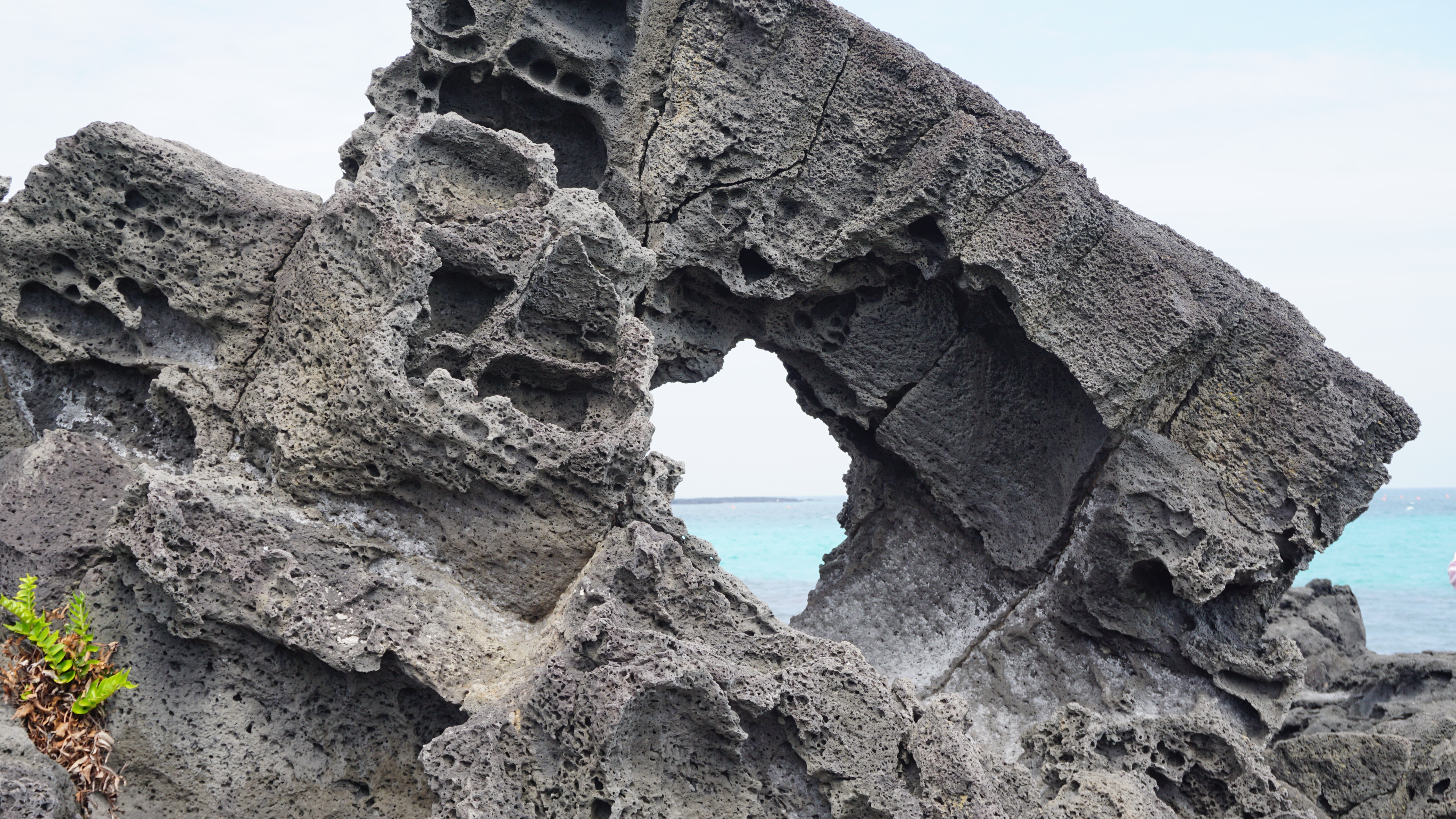 현무암 구멍 사이로 아름다운 사진을 담을 수 있는데, 이것이야 말로 자연이 주는 선물이다.