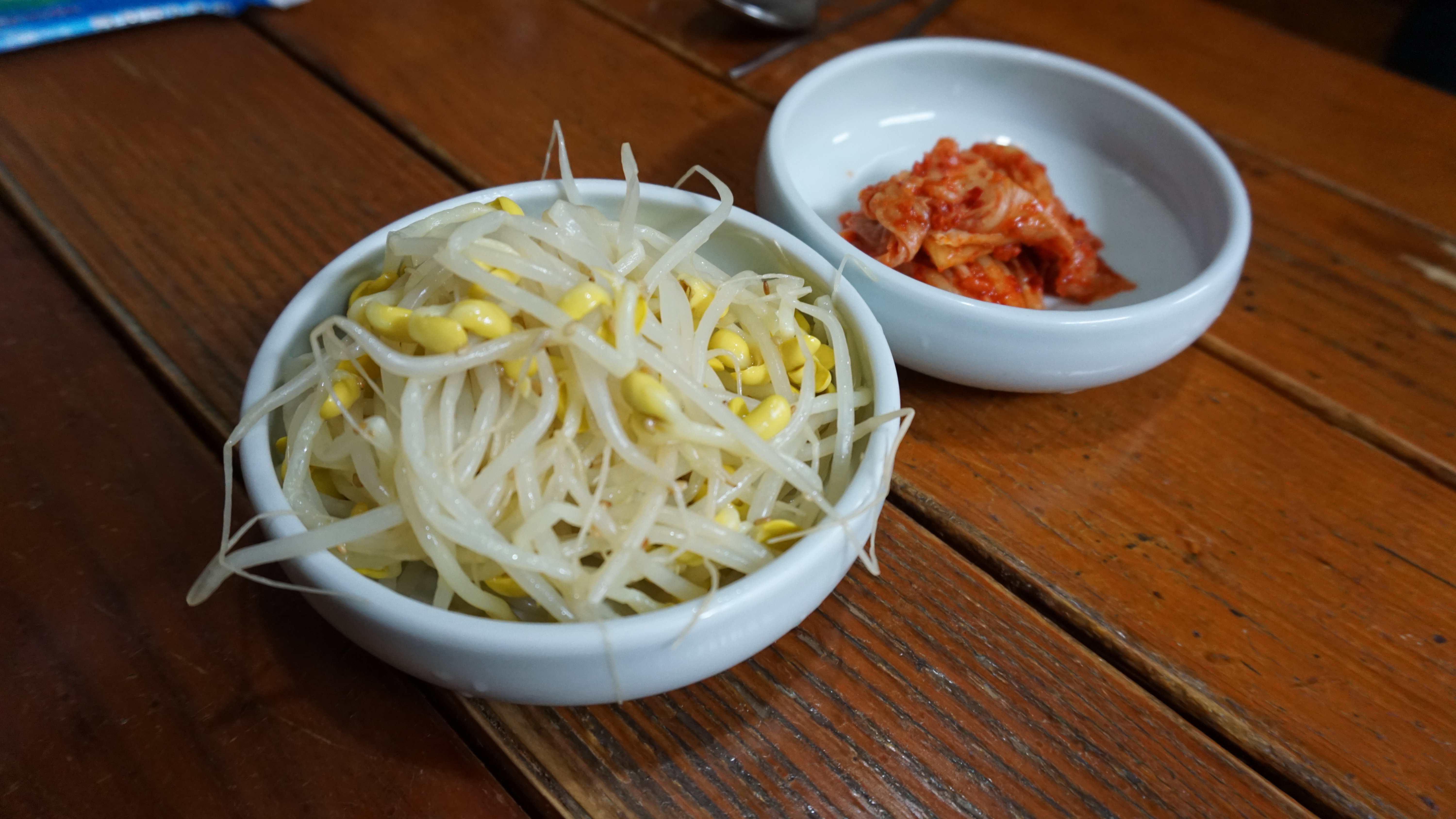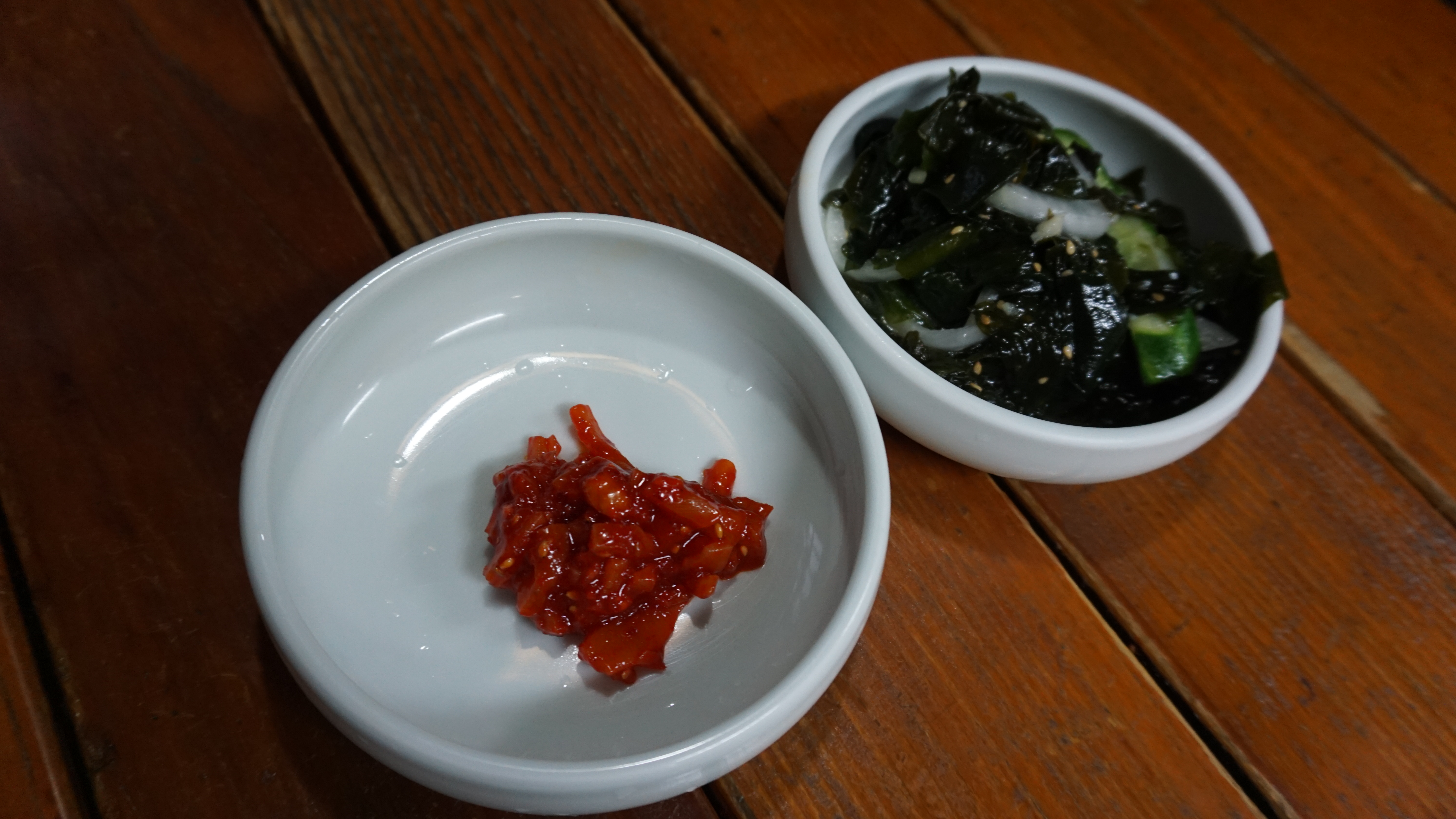 기본반찬은 젓갈, 김치, 미역초무침, 콩나물이 나온다.
