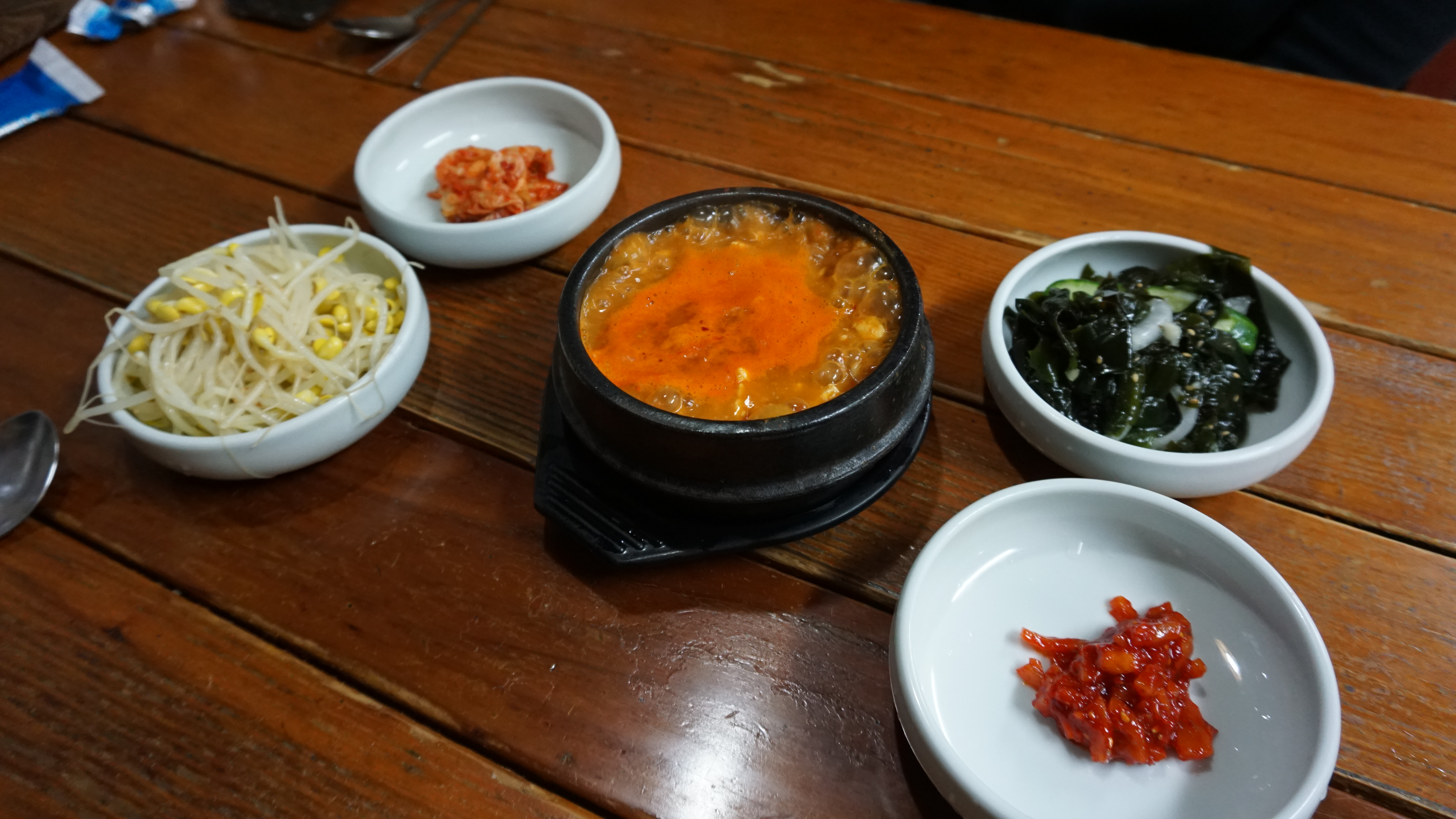 젓갈도 그냥 공기밥과 먹기 좋고, 반찬이 세팅된후 바로 청국장이 나온다.