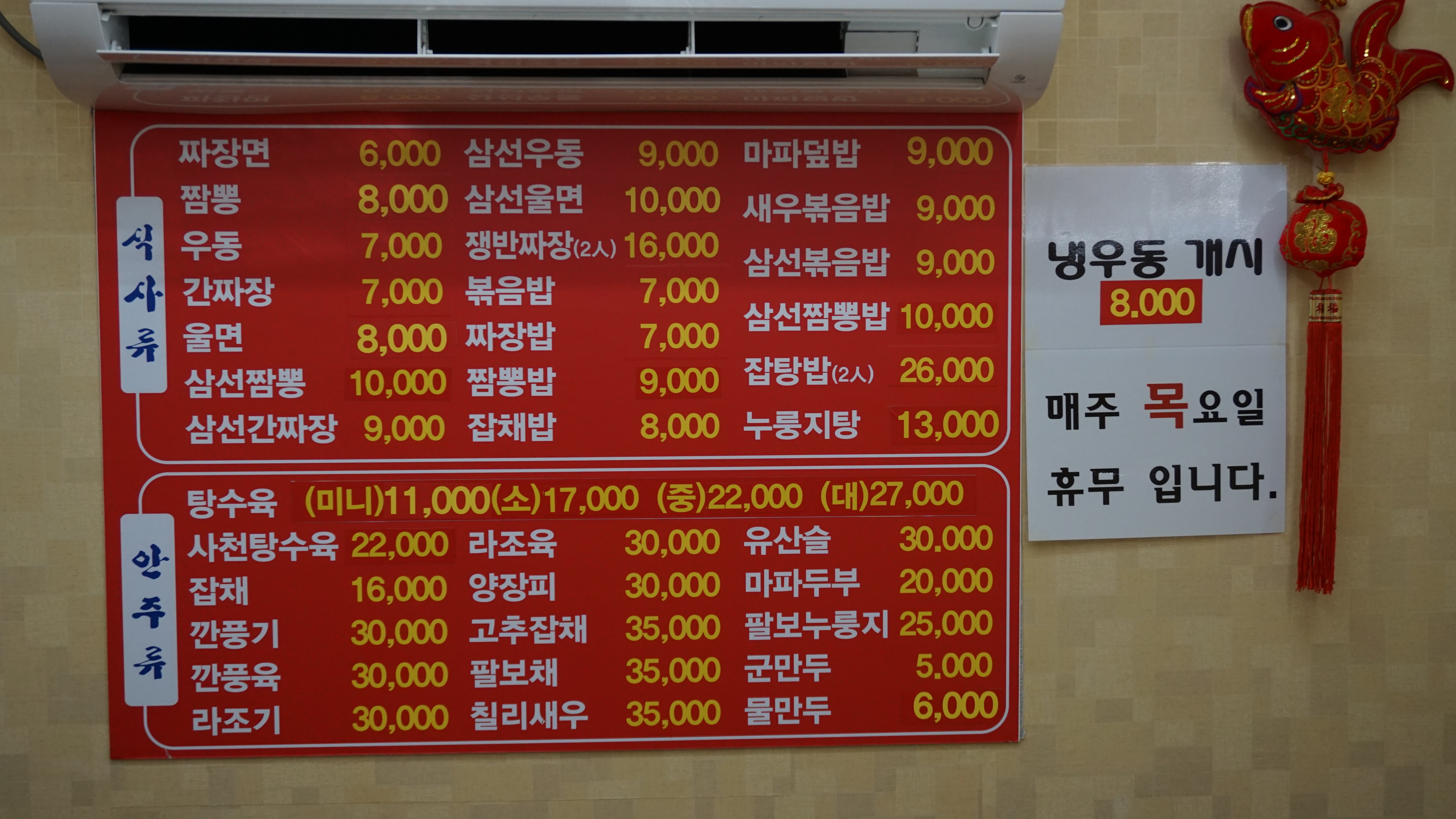 제주 중국집 맛집의 메뉴판 가격은 다른 중식집과 크게 차이가 나지는 않는다.