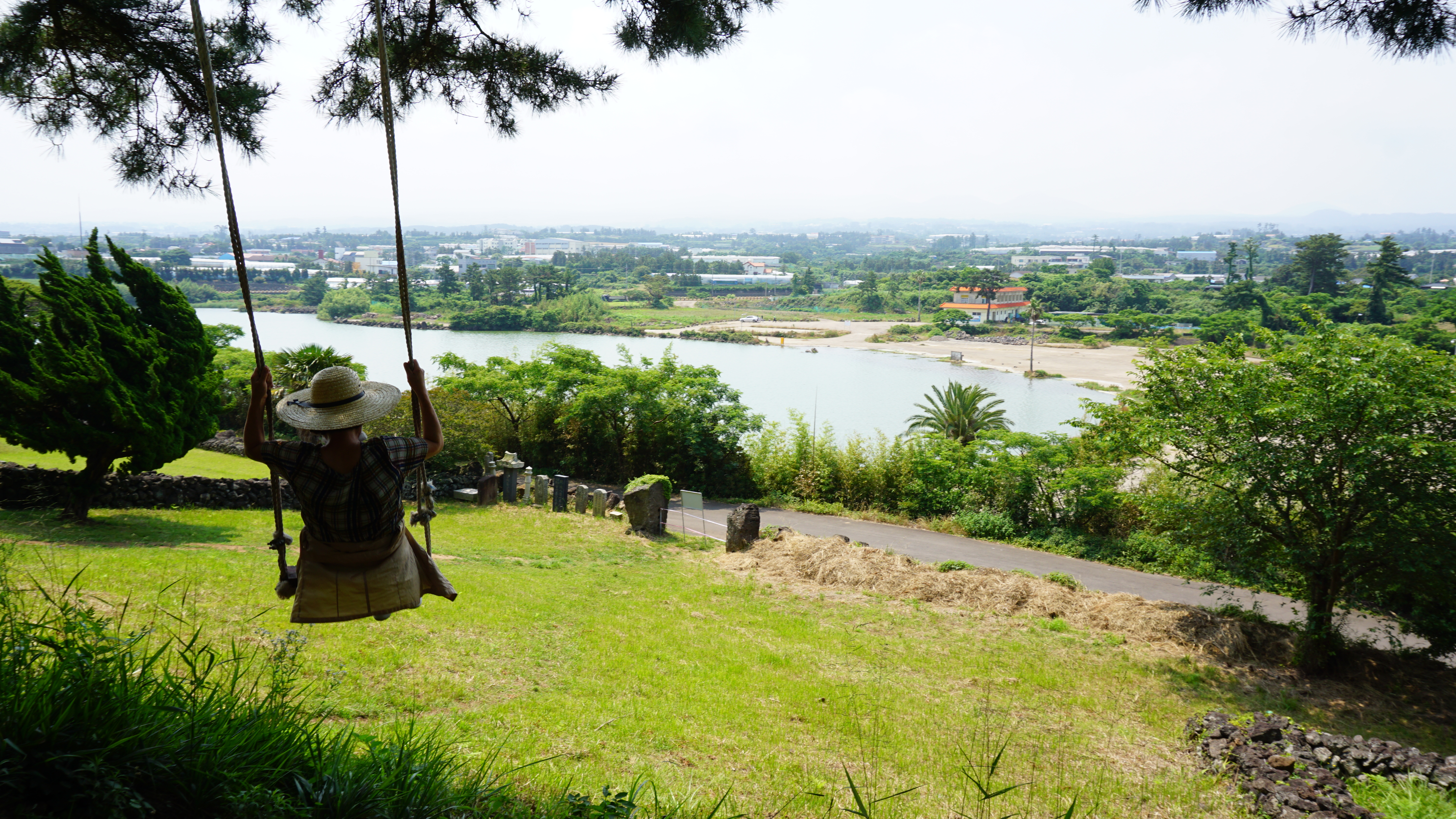제주 사진찍기 좋은 명소 수산봉 그네에서 흔들 흔들 타다보면 생각보다 무섭게 느껴진다.