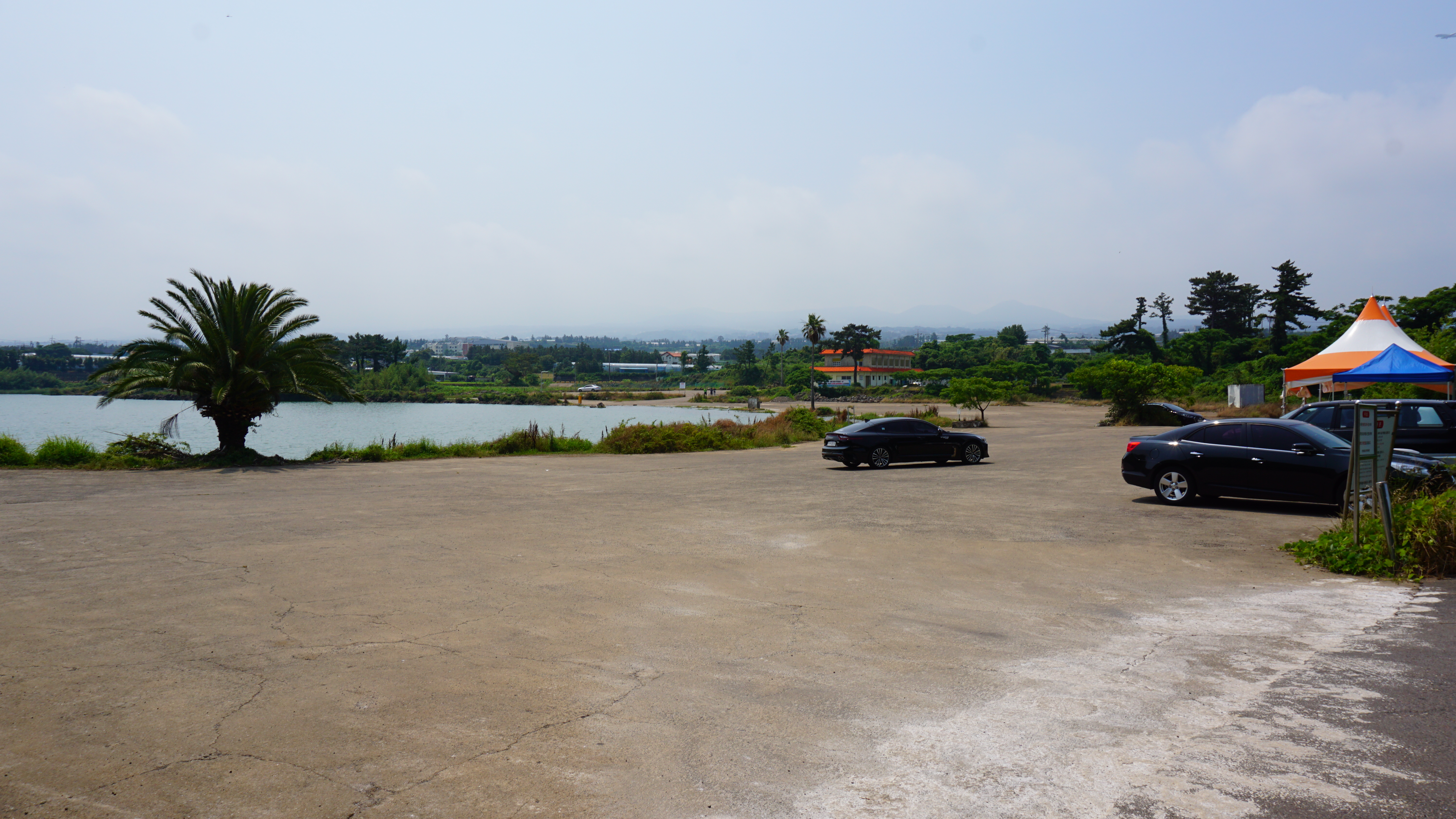 제주 사진찍기 좋은 명소 수산봉은 바로 앞에 수산저수지가 있는데 바로 이곳에 주차를 하면좋다.